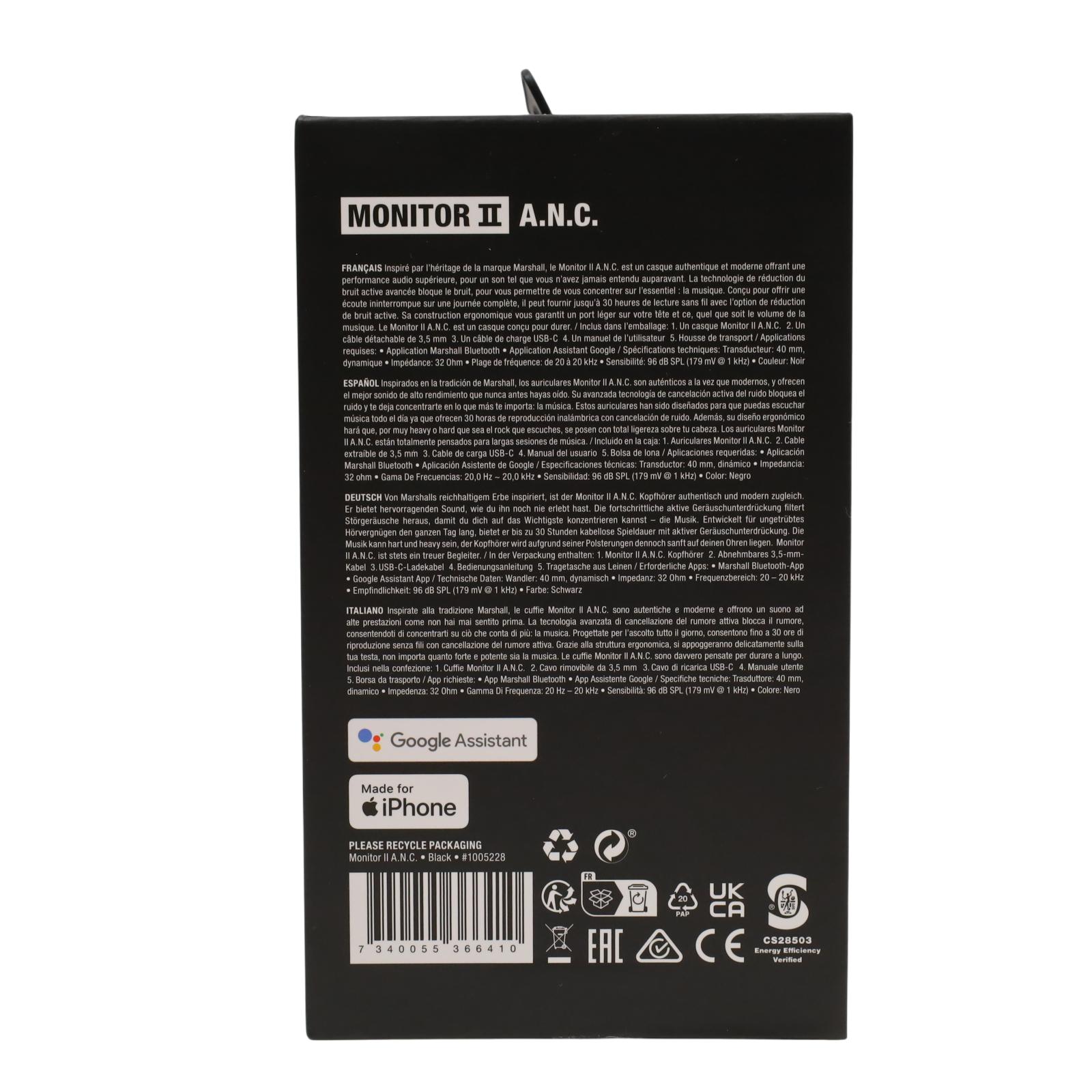 Combine premium audio performance with a classic Marshall design. Featuring 40mm dynamic drivers, these headphones deliver clear, balanced sound across bass, mids, and highs. Active noise cancellation can be adjusted through 10 levels using the Marshall Bluetooth app, while Monitoring Mode allows ambient sound when needed. Users can create or select up to three custom EQ profiles and control playback, volume, and calls with the on-ear multidirectional knob. Integrated Google Assistant support enables hands-free voice commands, notifications, and music control. The headphones also include a 3.5mm input for wired listening, a collapsible frame with metal swivel hinges, and soft cushioned earcups for comfort during extended use.