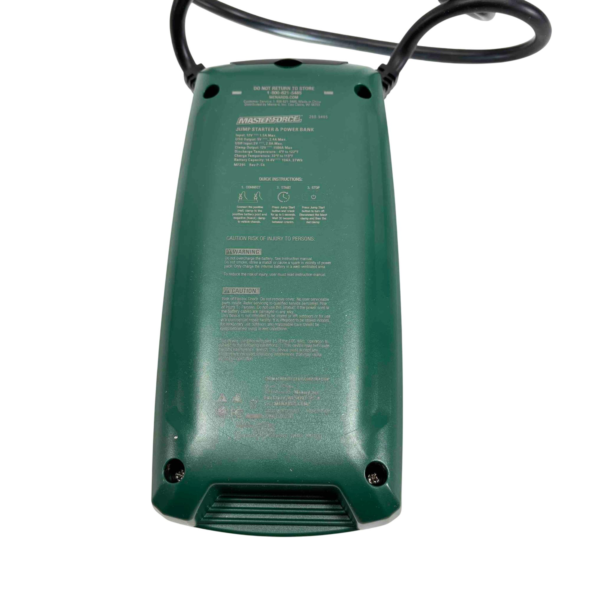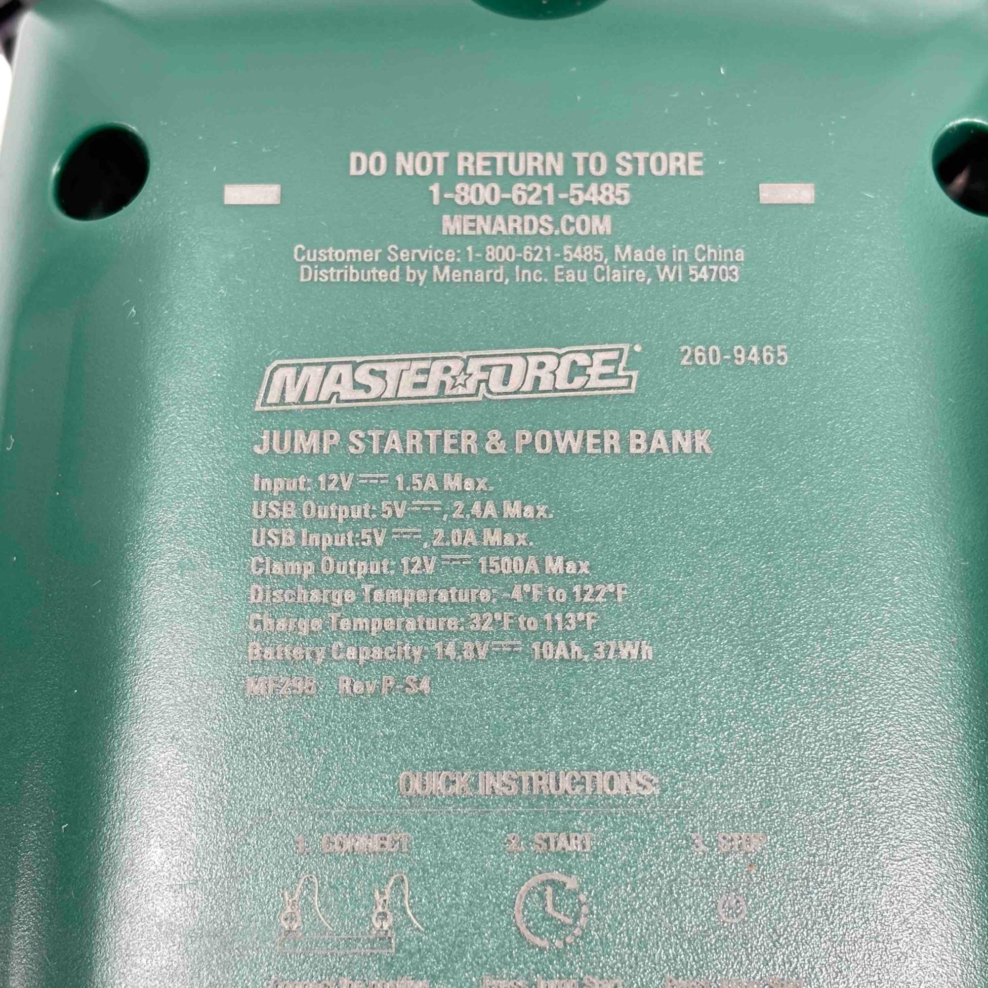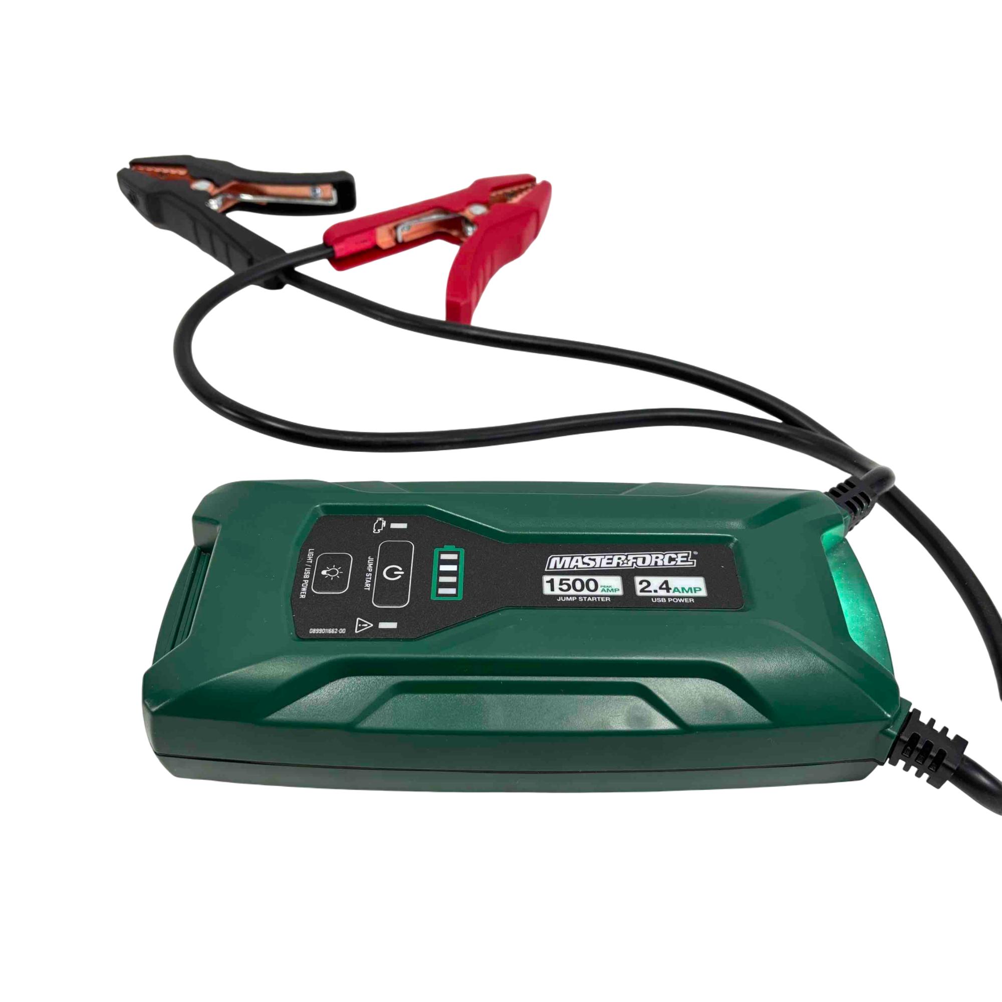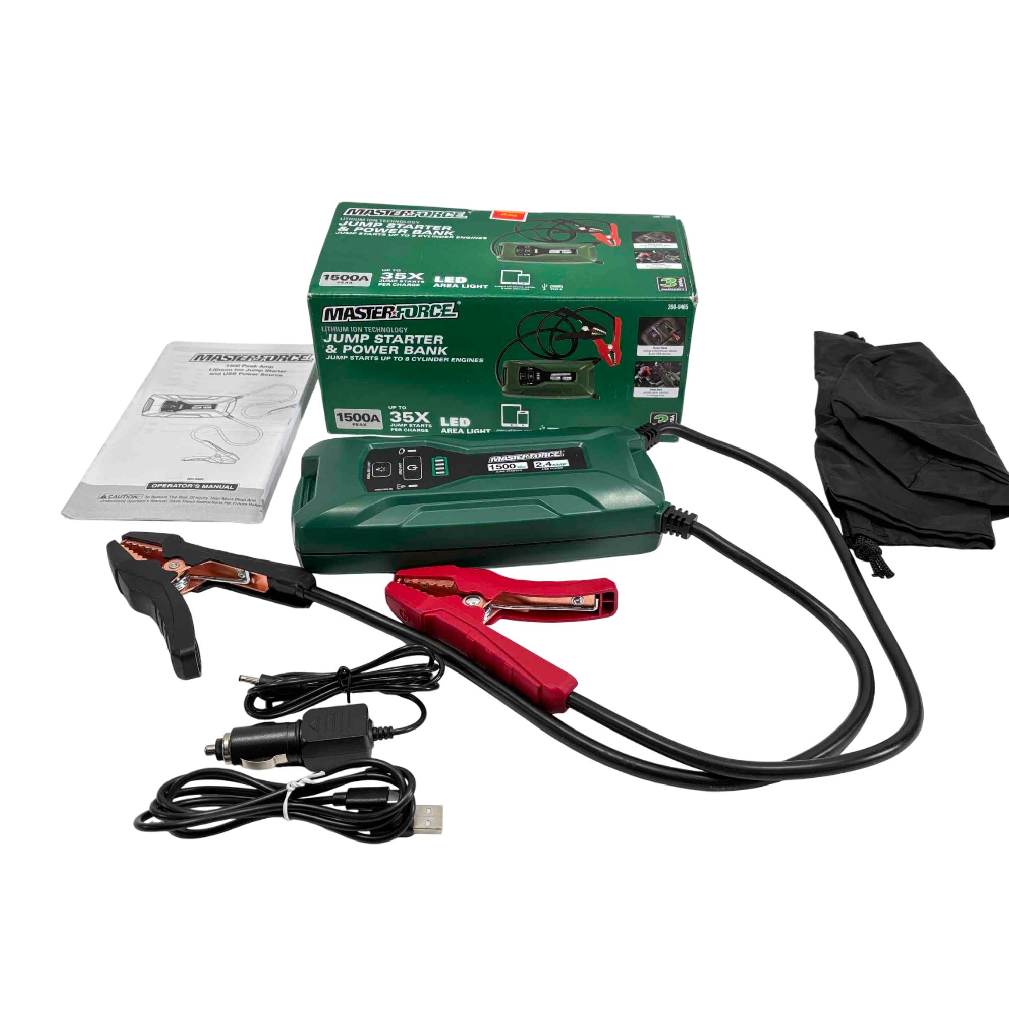 Get ready for any roadside emergency or power need with the Masterforce 2609465 Jump Starter and Power Bank. This compact, powerful device can jump-start up to 8-cylinder engines with its 1500A clamp output and doubles as a power bank to charge your electronics via USB. Equipped with an LED area light, its a versatile and essential addition to any vehicle or toolkit.