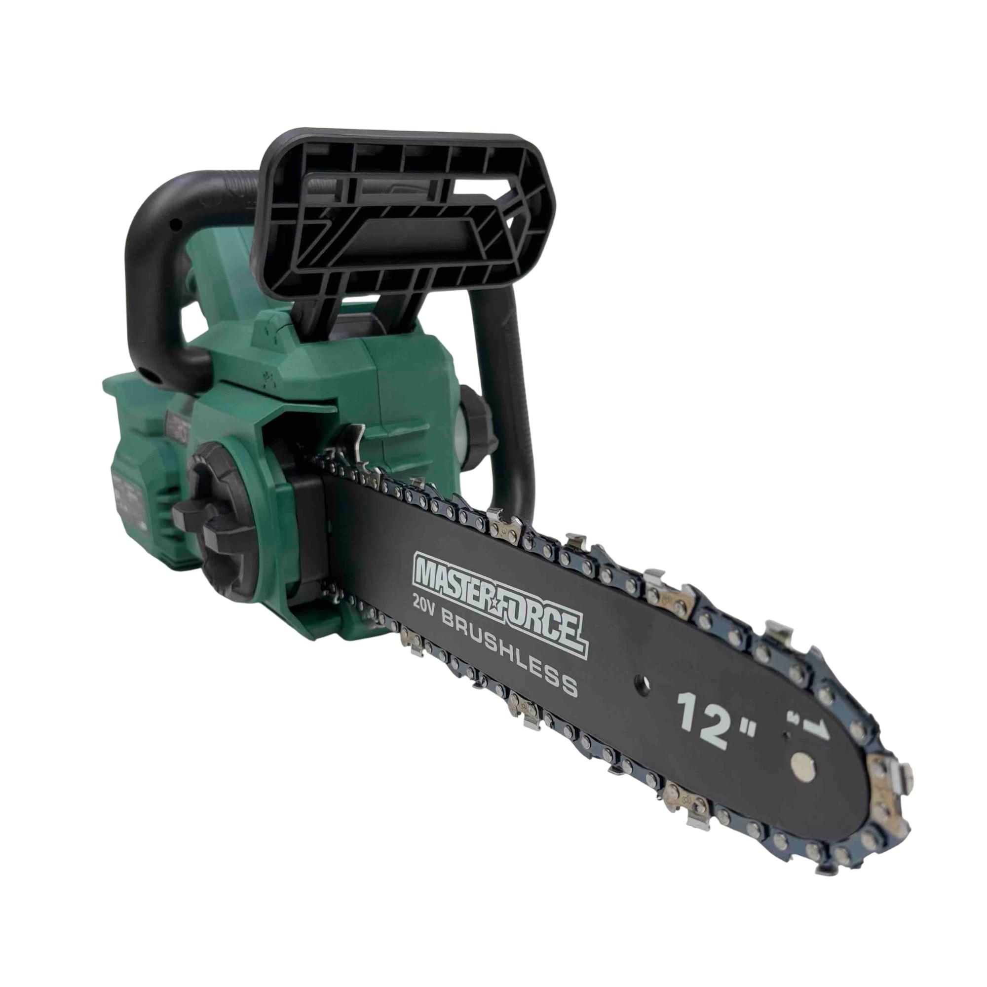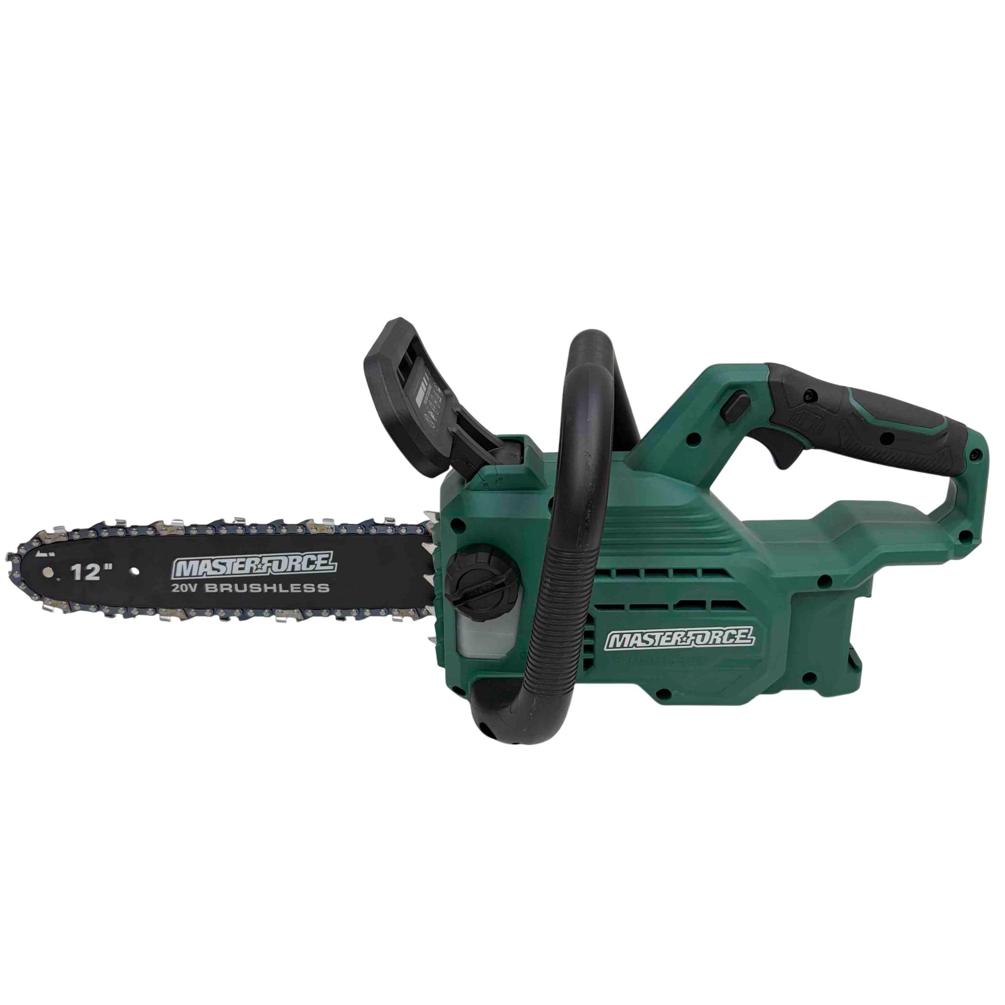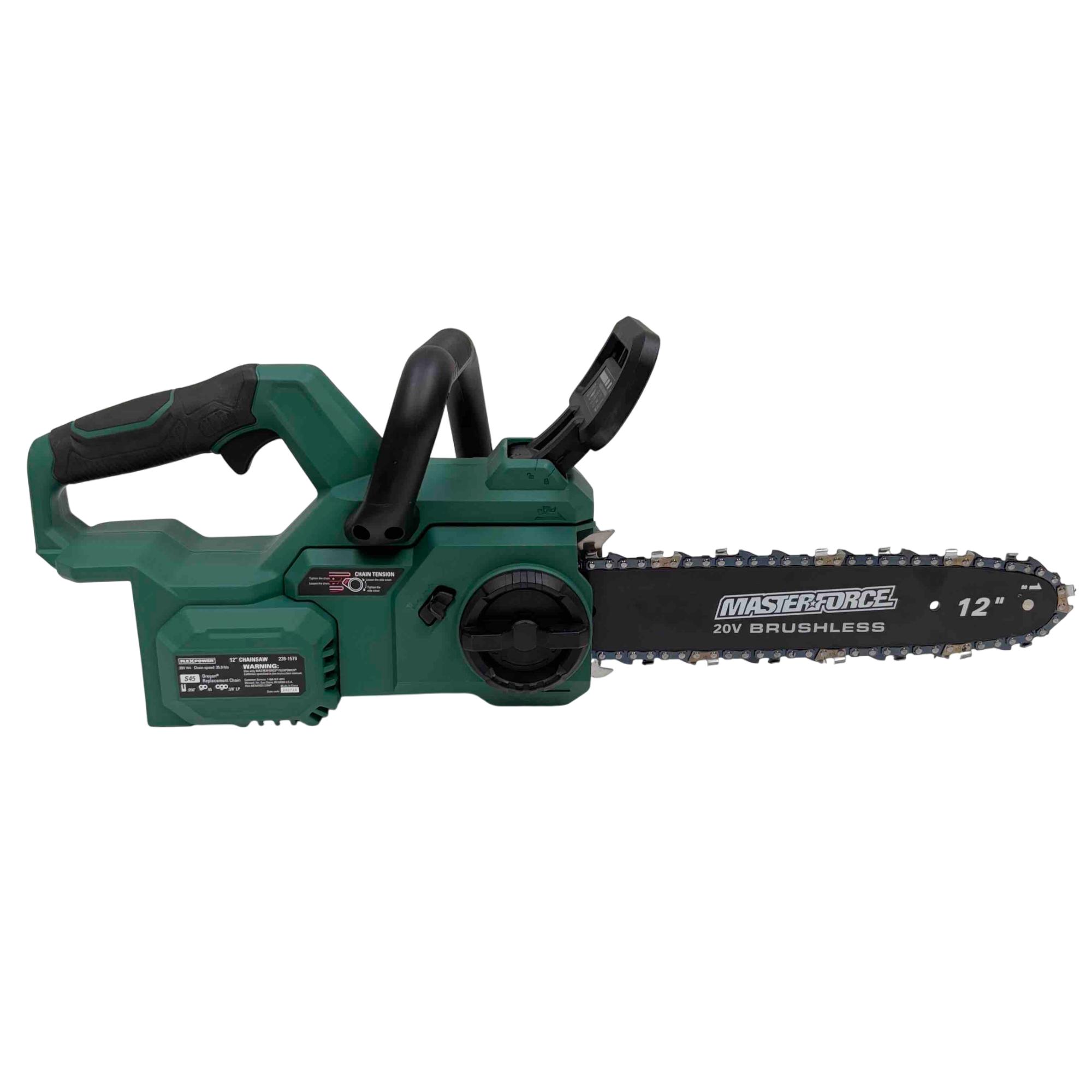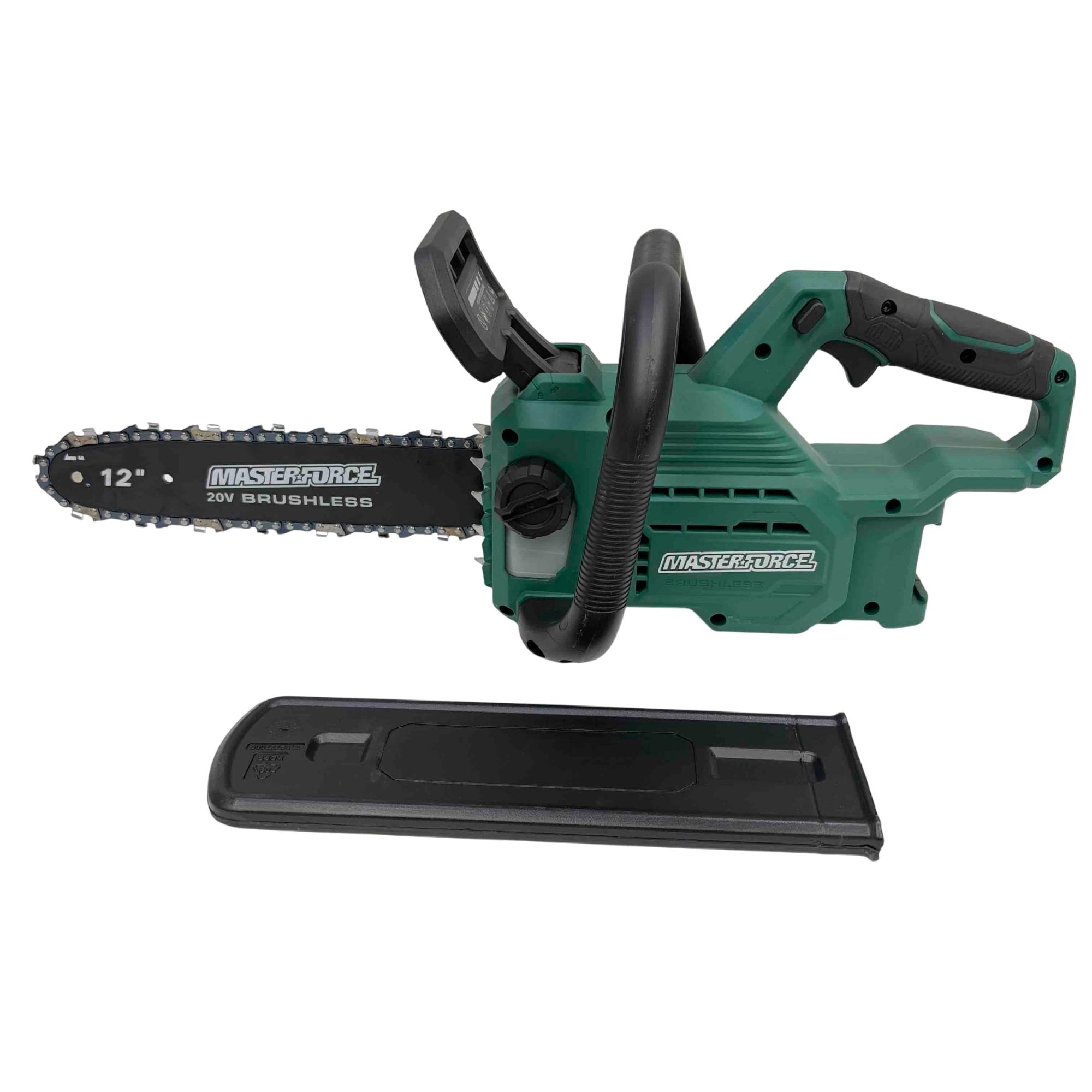 Experience the power and precision of the Masterforce 2391579 12" 20V Brushless Chainsaw, designed for enthusiasts and professionals alike. This high-performance chainsaw features a brushless motor for superior efficiency and a lightweight design for easy handling. With its 12-inch Oregon chain, you'll tackle yard work effortlessly. Note: This listing is for the tool only—batteries and chargers are sold separately.