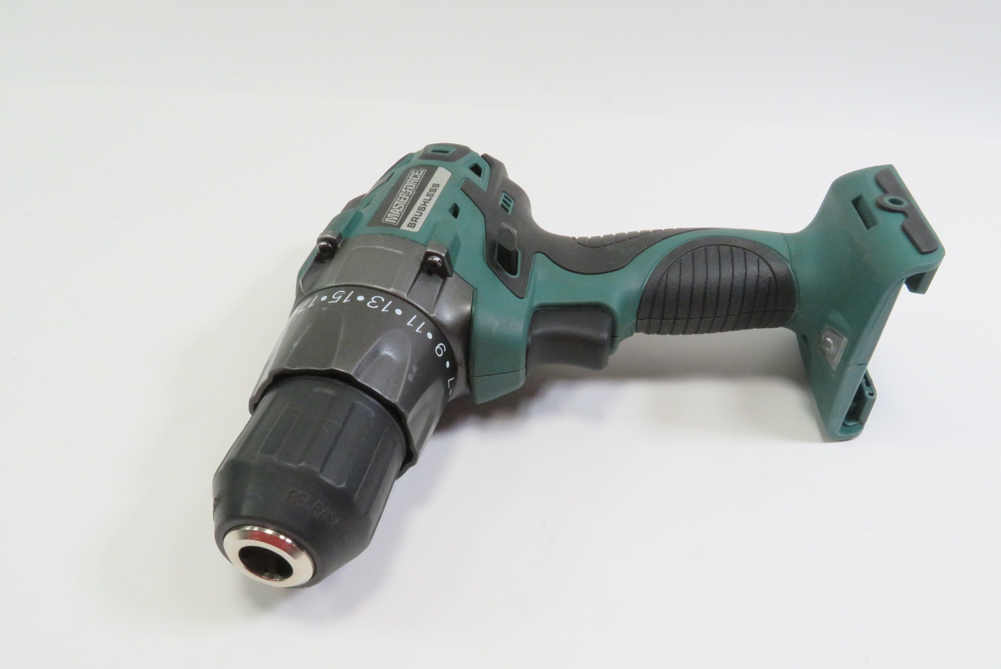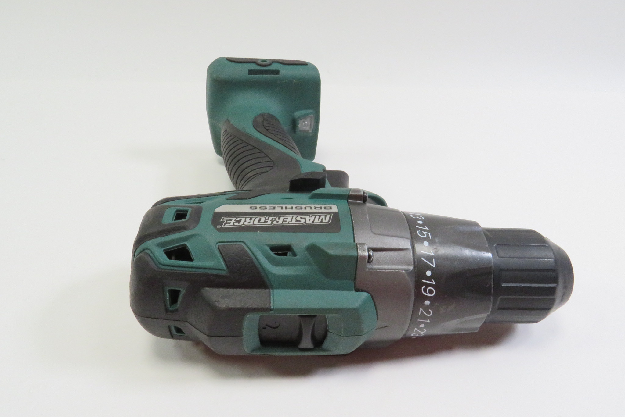 Compact brushless drill brings power and efficient performance to the Masterforce® cordless drill lineup. Brushless motor technology uses a microprocessor control in place of traditional carbon brushes to reduce friction and heat buildup. This brushless motor delivers up to 30 percent more power, up to one and a half times more runtime, and up to ten times longer motor life compared to a standard two-pole motor. This compact drill features a two-speed all-metal gearbox that allows for high-torque driving or high-speed drilling. It offers variable speeds from 0 to 450/0 to 1,750 RPM, 600 inch-pounds of torque, and 23 + 1 clutch settings.
