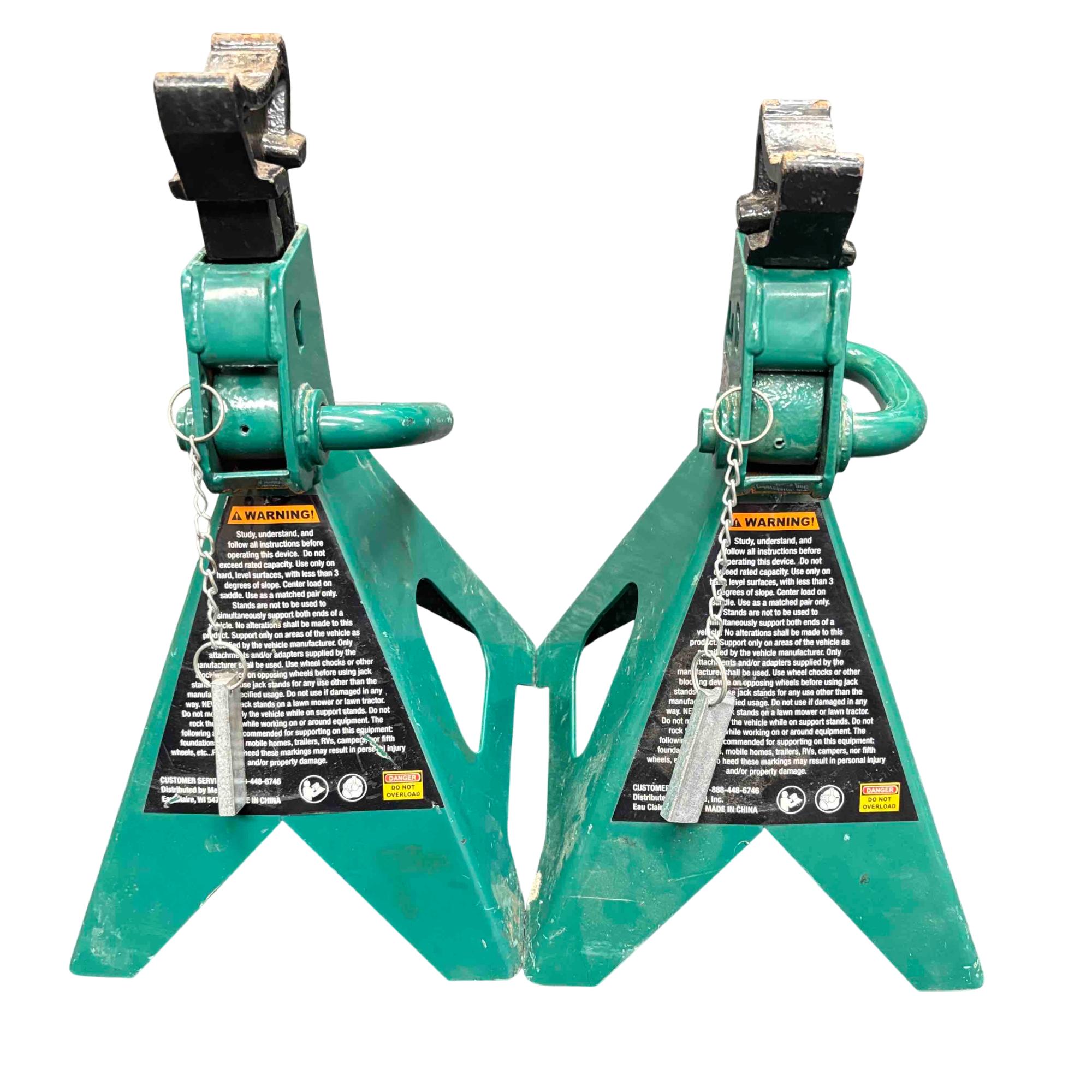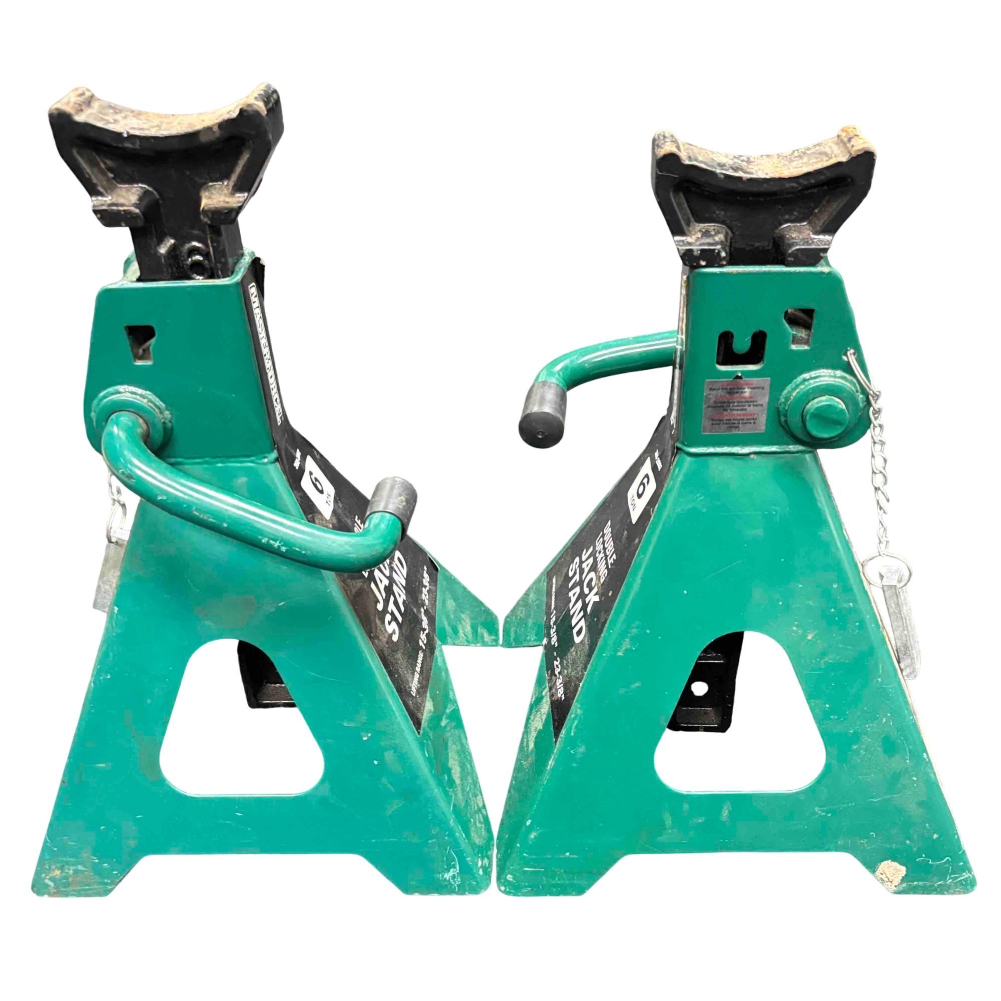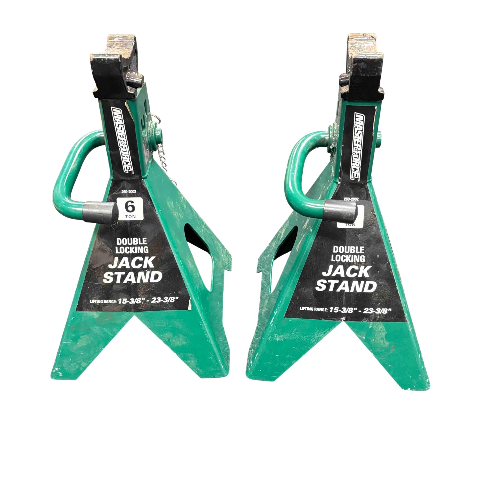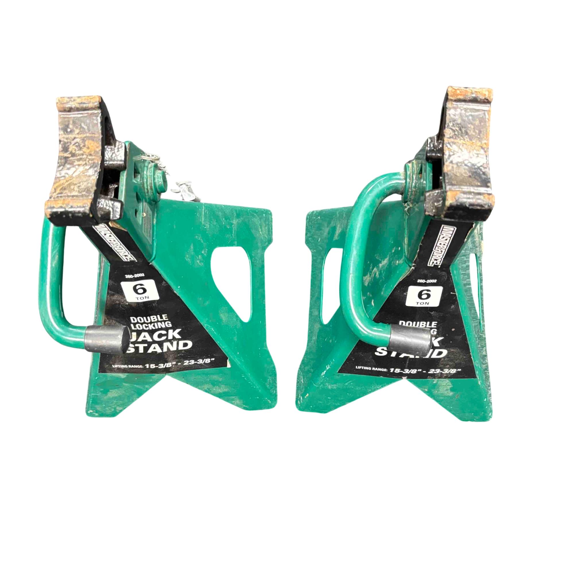 Introducing the Masterforce 260-2002 6 Ton Double Locking Jack Stands, the perfect solution for your vehicle lifting needs. This pair of robust, green jack stands offer a lifting range from 15-3/8" to 23-3/8", ensuring versatility and stability for your automotive projects. With double locking features for added safety, these stands are a reliable addition to any garage or workshop.