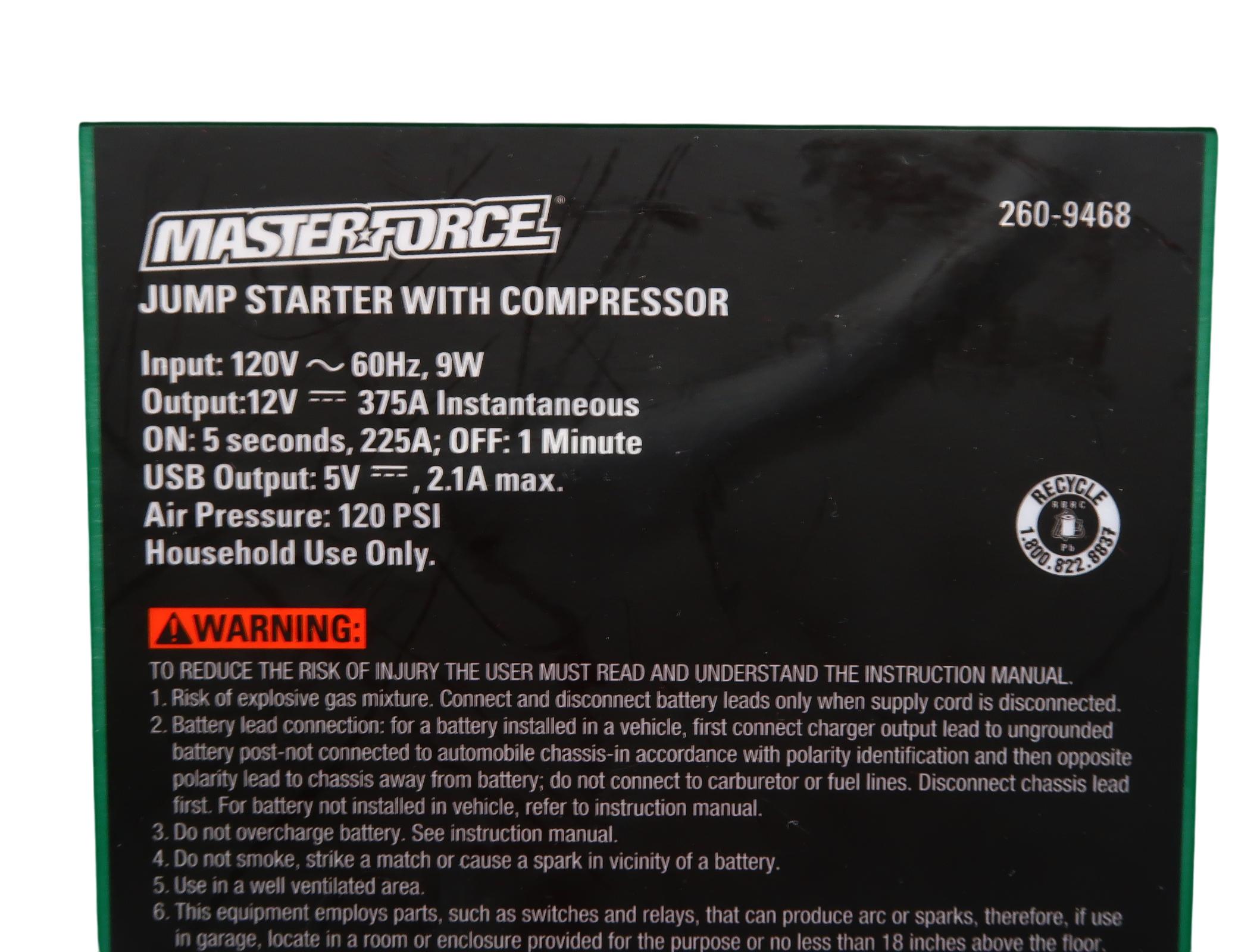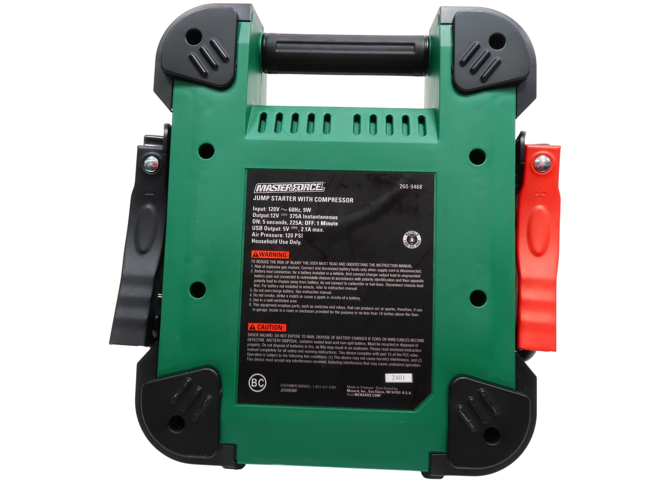 Jump starter + 12v/usb power supply + air compressor for camping and emergency power