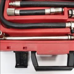 Master set contains a high quality gauge (0-300psi (0-2000 kPa)) with rubber boot, long 25" flex hose with quick release fittings, pressure relief valve, (4) 12" long hoses in 10mm, 12mm and 14mm plus adapters