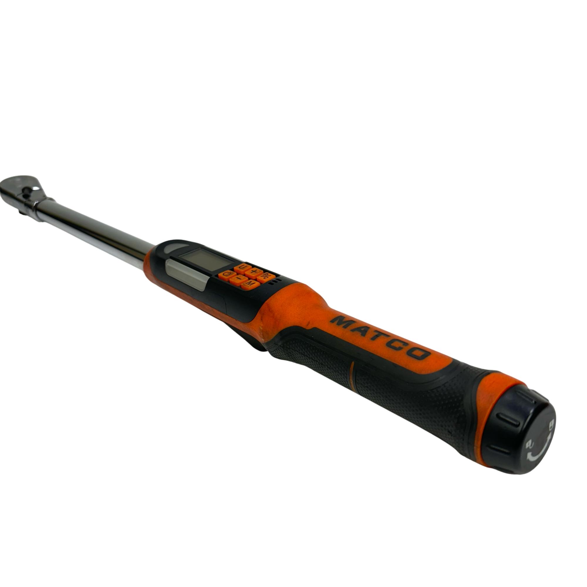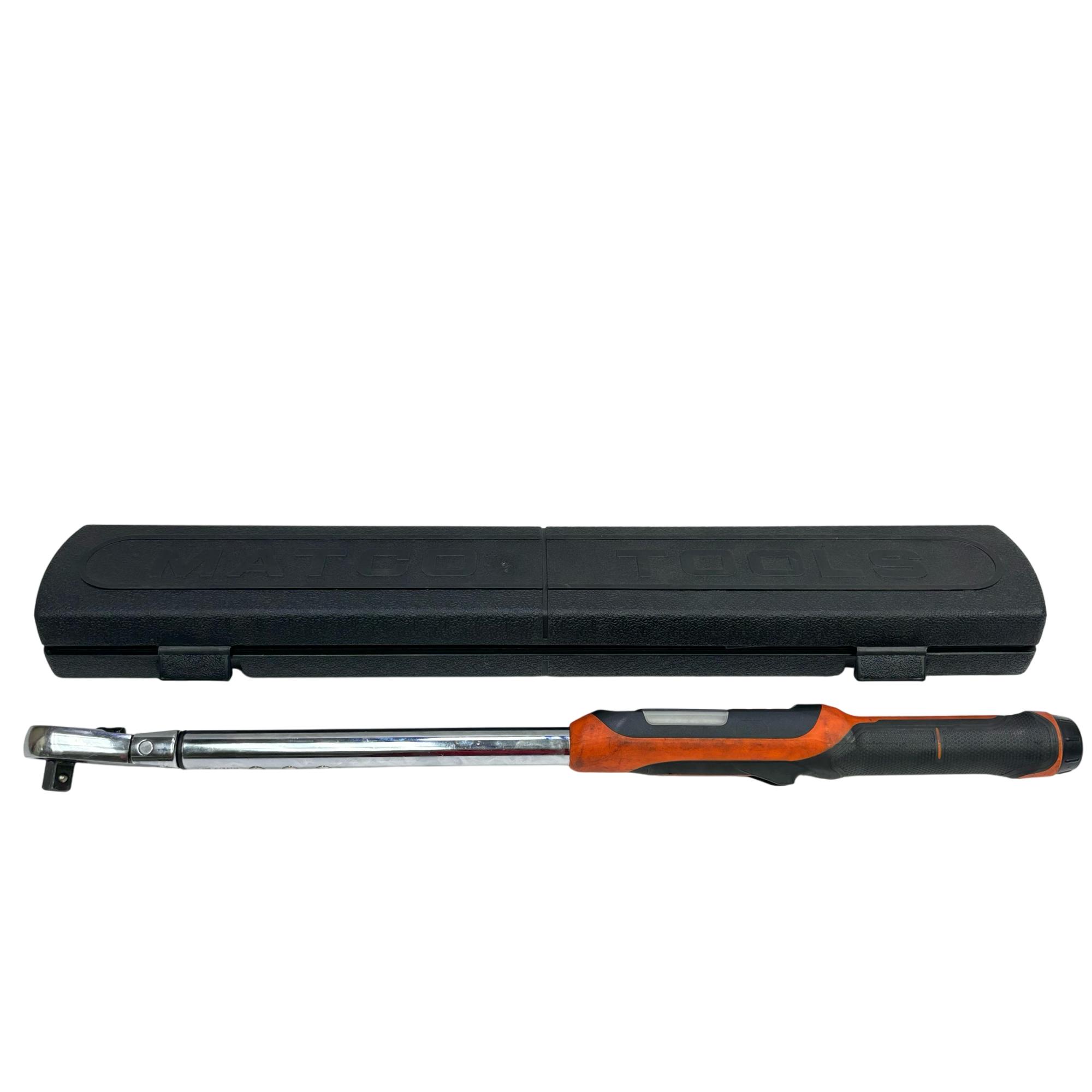 Upgrade your toolbox with the versatile Matco ETWC250FKBM 1/2" Digital Flex Head Electronic Torque Wrench. This precision tool features a flexible head for easy maneuvering in tight spaces and an intuitive digital display for accurate torque measurements. Ideal for both professionals and DIY enthusiasts, this torque wrench comes with a protective case to ensure durability and ease of transport.