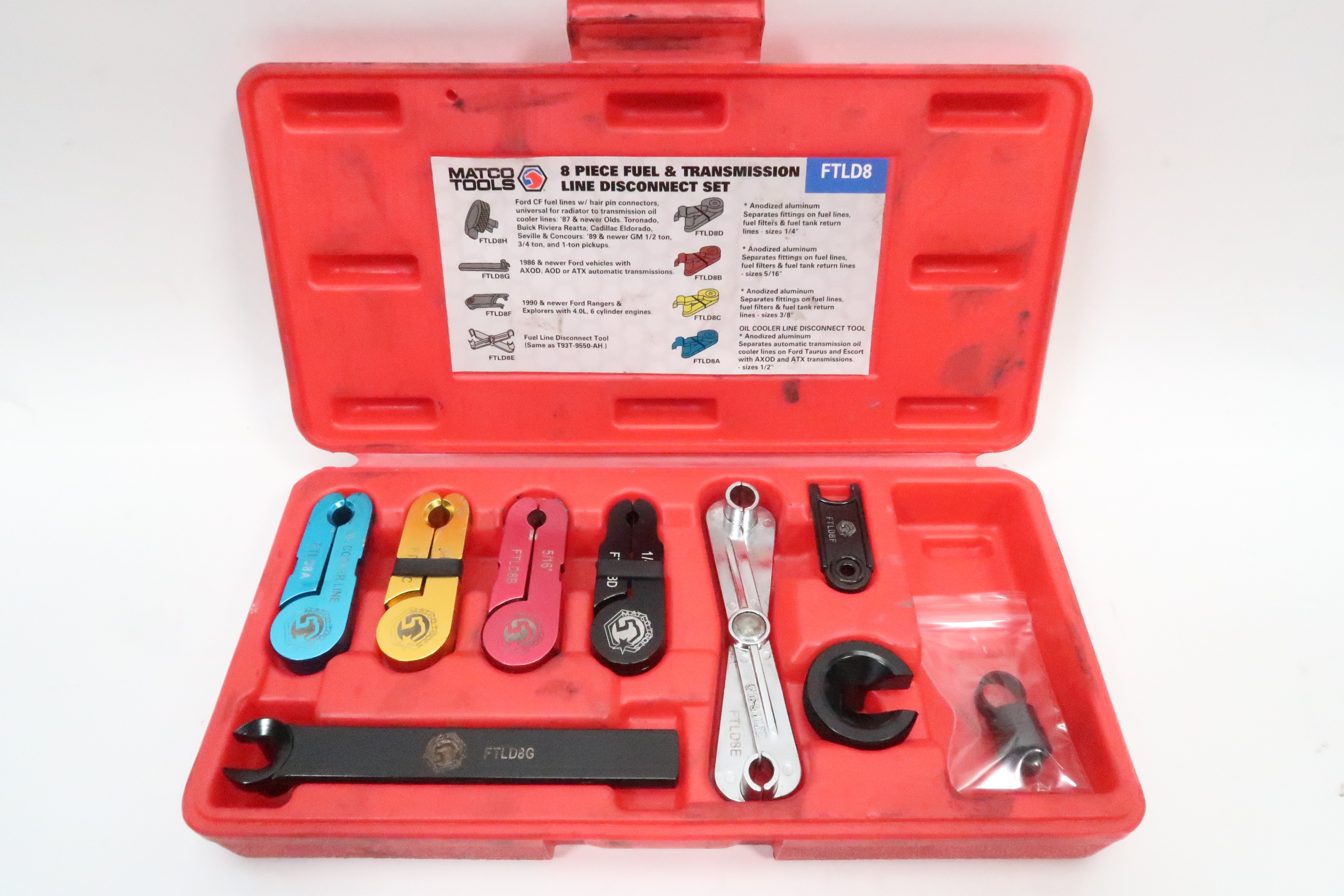 Fits any 5/16" or 3/8" fuel line found on GM, Ford or Chrysler cars