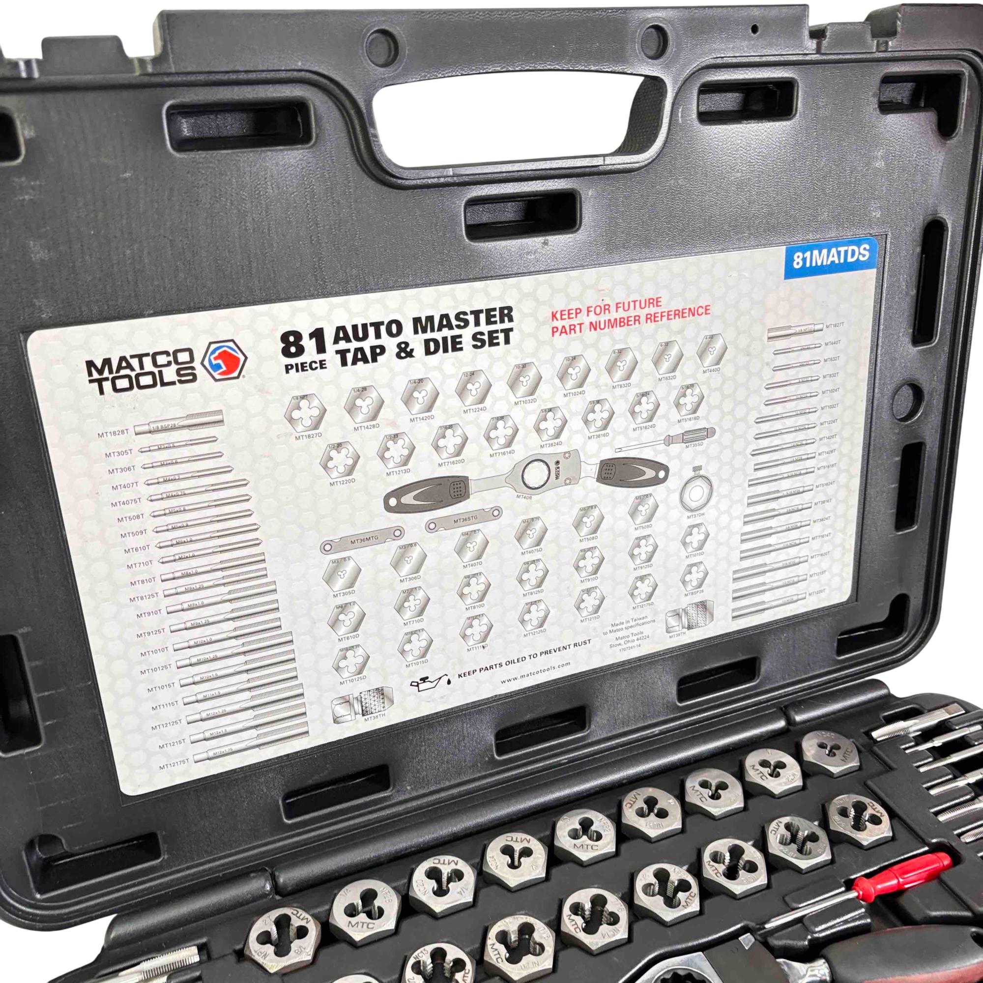Upgrade your workshop with the Matco Tools 81MATDS 81-Piece Auto Master Tap & Die Set, designed for precision threading and durability.