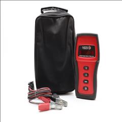 Designed to test most 12V lead-acid start batteries with a range of 125-1,400 CCA. It supports multiple international measurement units, including CCA, IEC, DIN, BCI, and EN, and displays results on a four-digit LED screen showing battery status, available CCAs, and voltage. The tester includes features such as temperature and low range compensation, detection of loose leads and bad cells, as well as a surface charge warning. Detachable cable leads allow for easy replacement, and it also analyzes starting and charging system voltages.