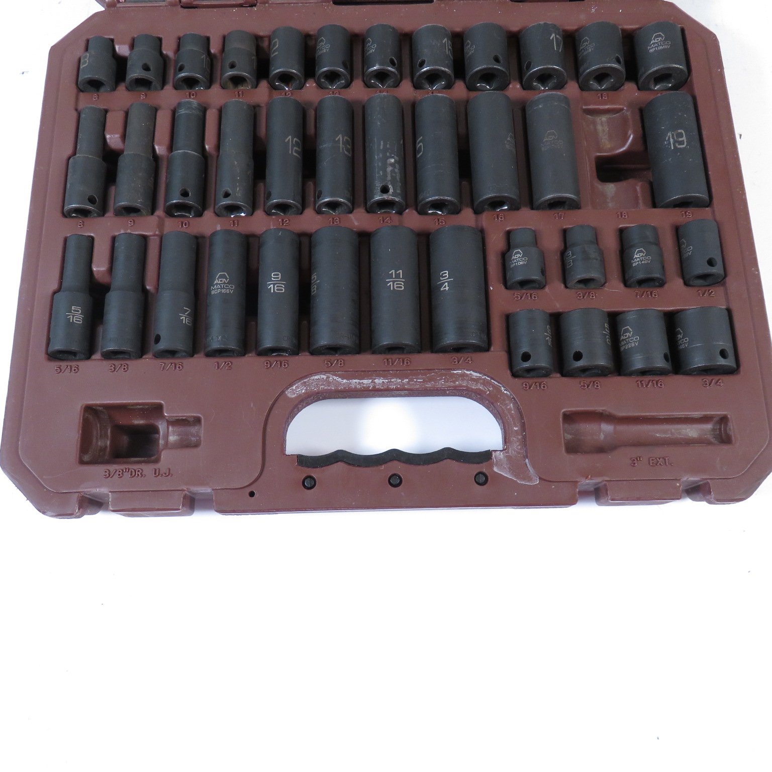 Quality 3/8" socket set to add to any tech’s automotive tools collection. Opti-Torque system applies torque to the fastener sides, reducing corner round off. 150° chamfer on the socket drive end for better grab, constant pressure and easier use.