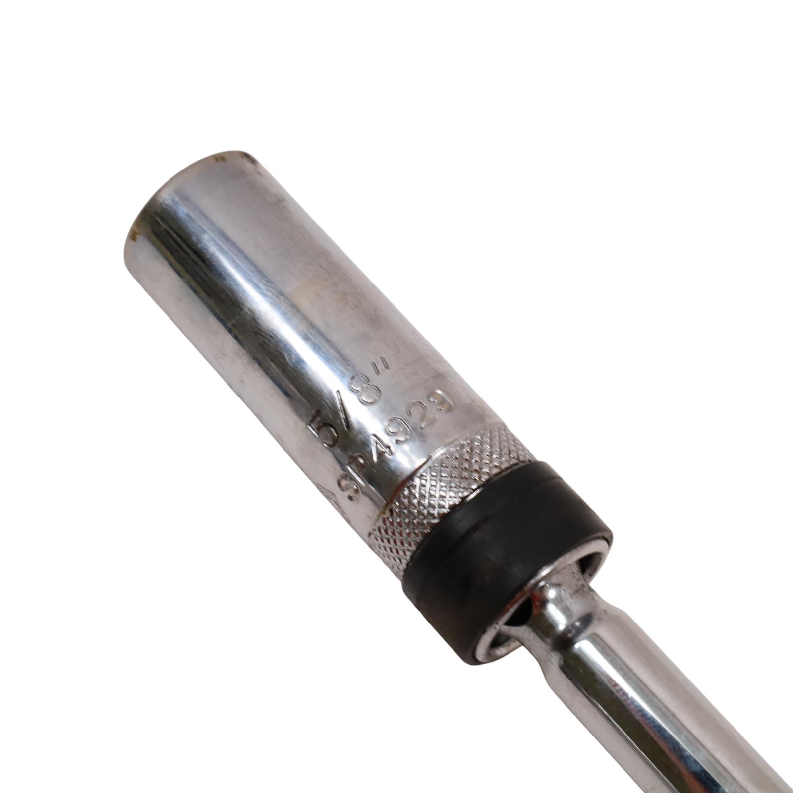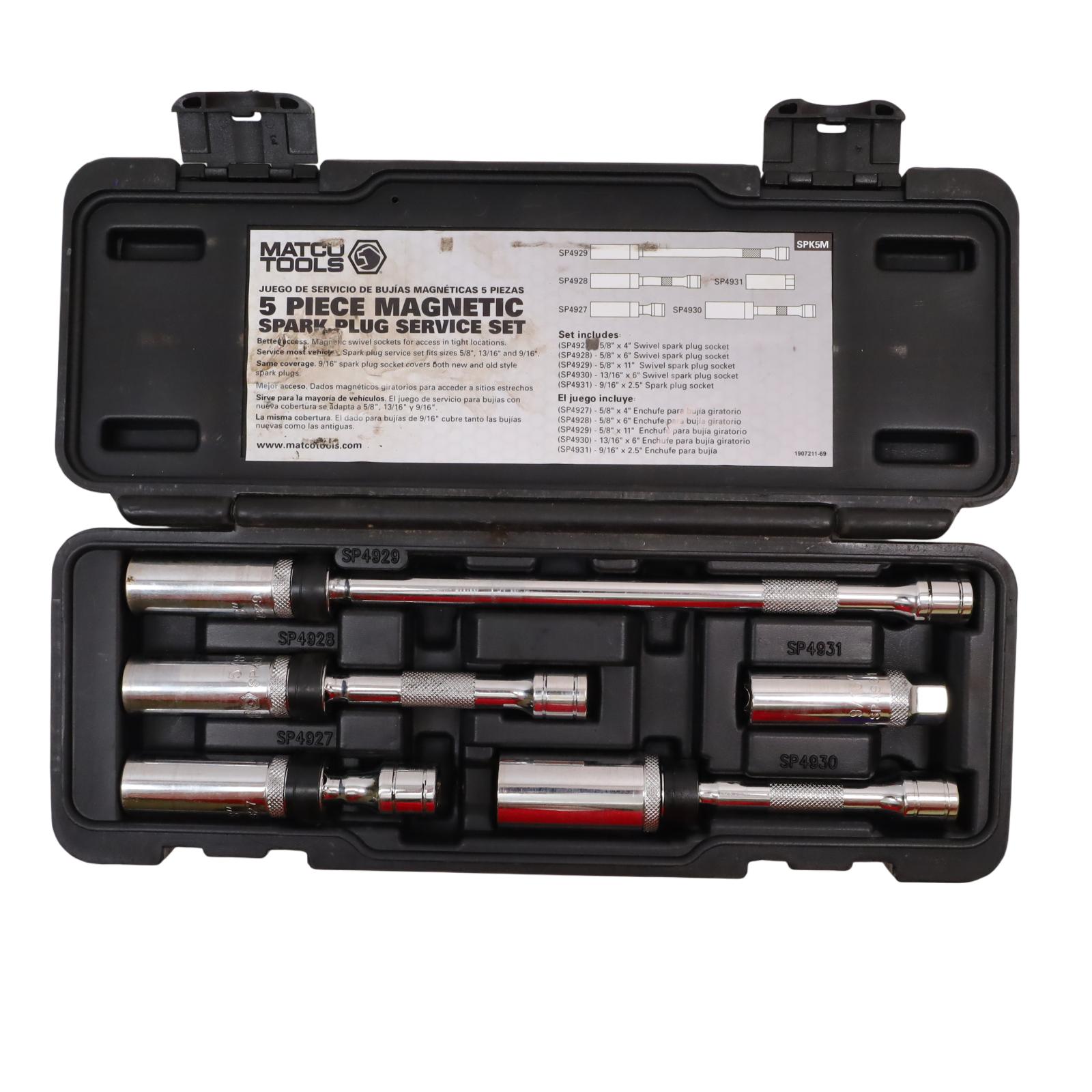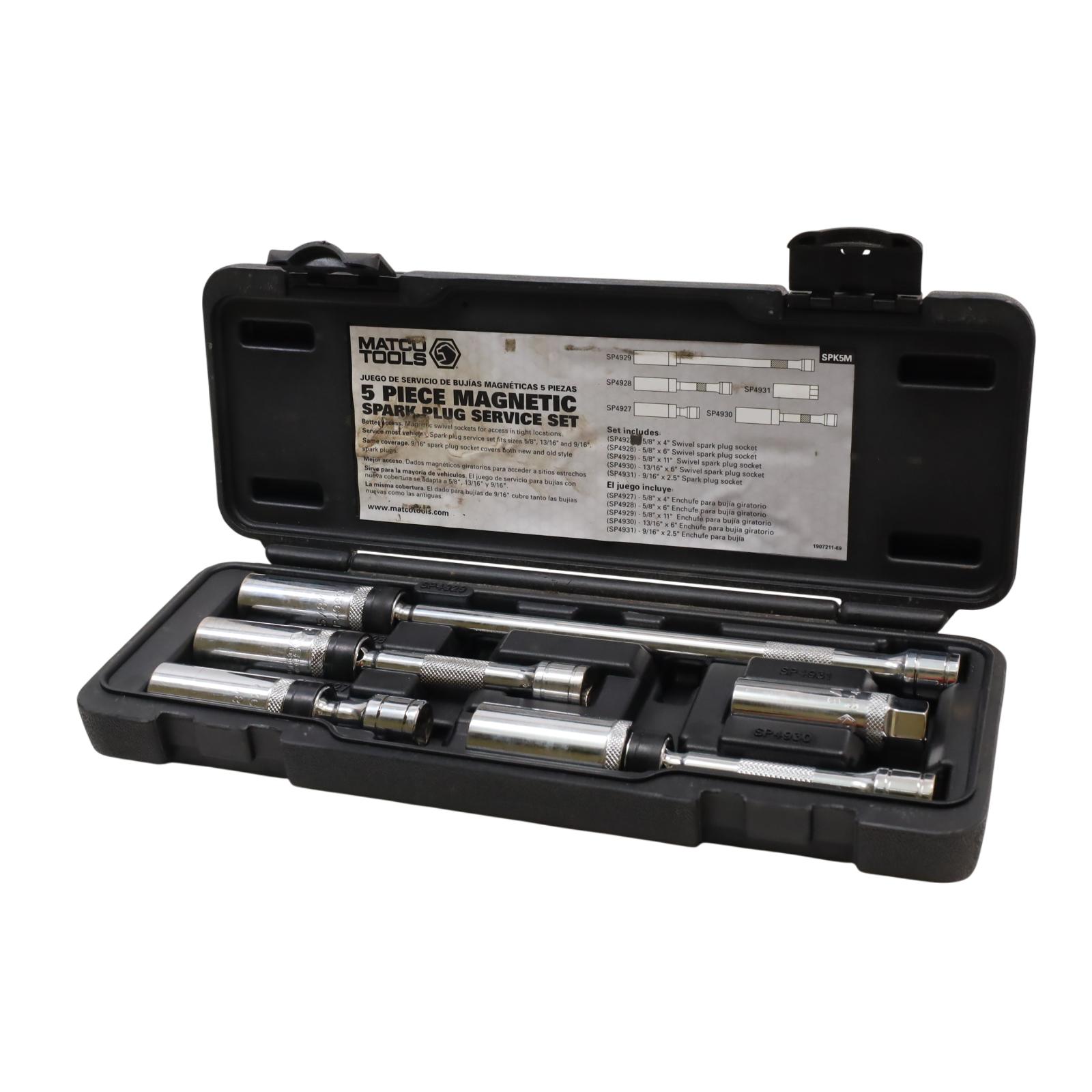 Includes magnetic swivel sockets designed to provide easy access in tight spaces. It covers common spark plug sizes of 5/8", 13/16", and 9/16", with the 9/16" socket accommodating both new and old style spark plugs. Built with a 3/8" drive size, these chrome 6-point sockets offer secure engagement and reliable durability, while the magnetic feature helps hold plugs firmly in place during installation or removal. This set is SAE measured and well-suited for efficient spark plug service.