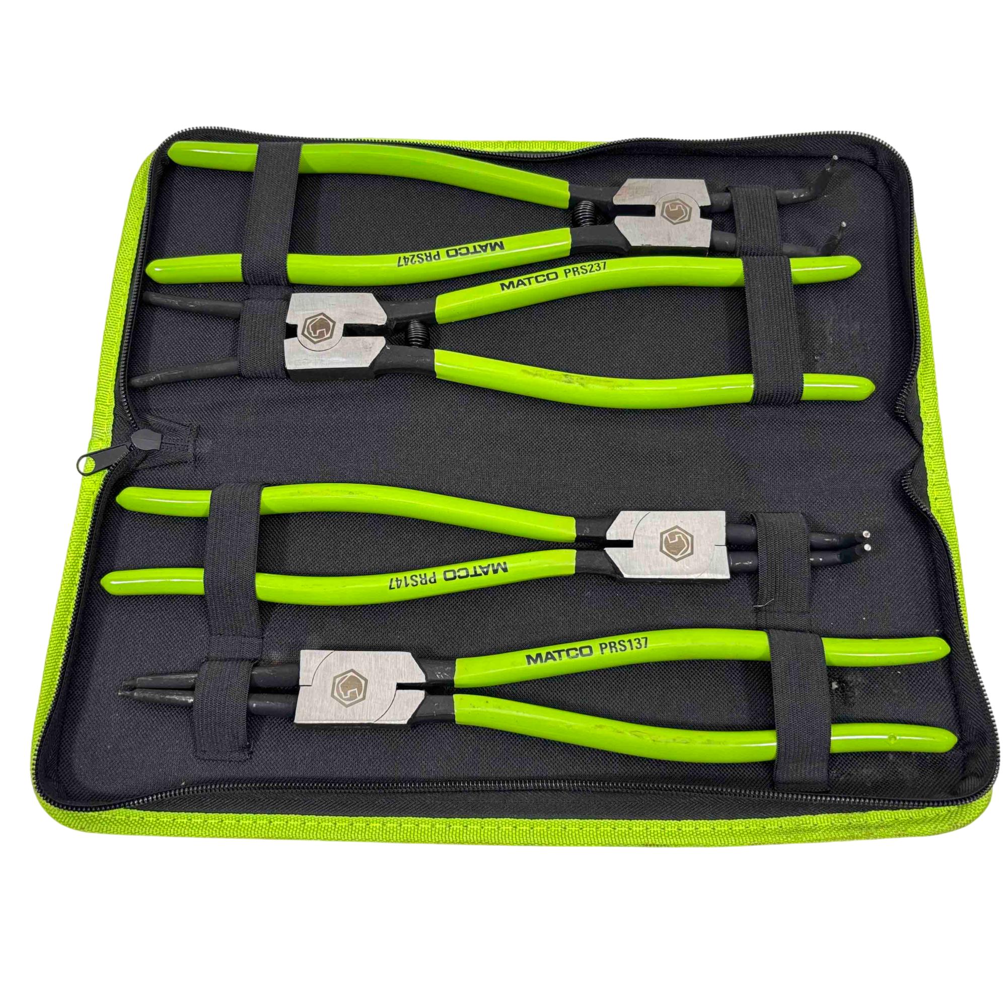Elevate your toolkit with the Matco Tools PRS Series 4-piece Snap Ring Plier Set, featuring ergonomic green and black handles for enhanced grip and comfort. Ideal for precision work, this set is perfect for professionals and DIY enthusiasts alike, providing reliability and durability for all your snap ring needs.