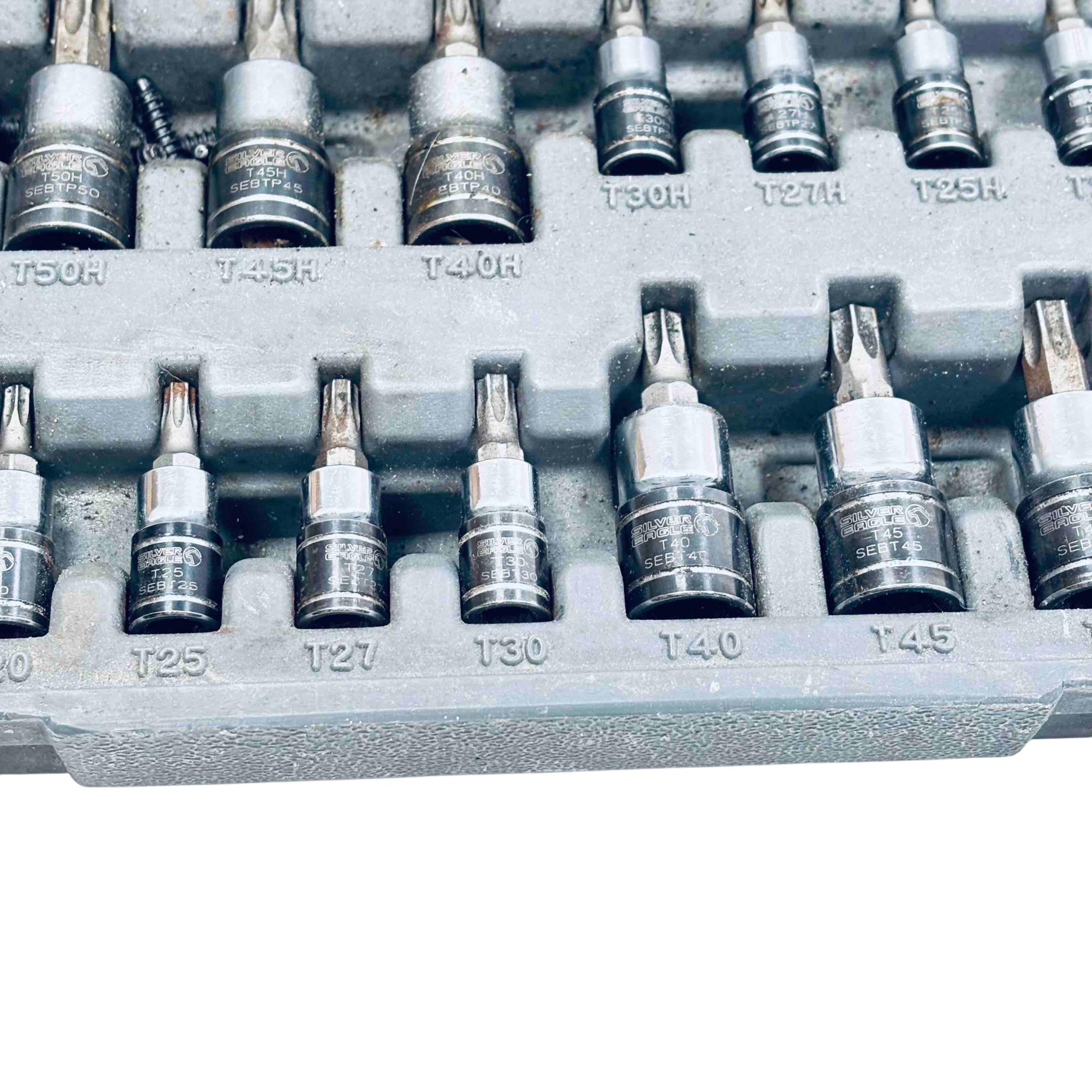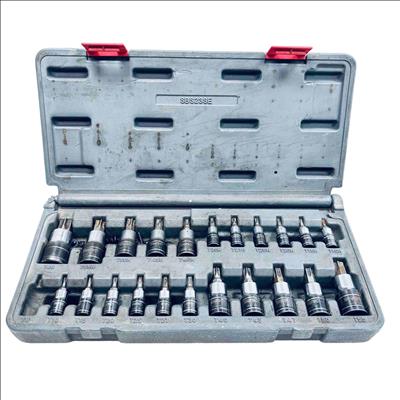 Upgrade your toolkit with the Matco Tools Silver Eagle SBS23SE 23-piece Torx Bit Socket Set. Designed for professionals and enthusiasts alike, this set includes a wide range of Torx sizes in a durable, organized plastic case—though it is missing the T8 bit. Renowned for its reliability and robust build, its perfect for both automotive and mechanical tasks.