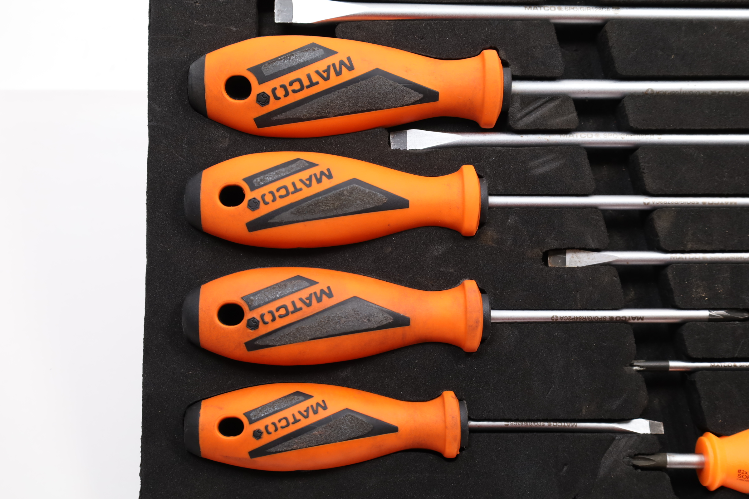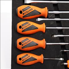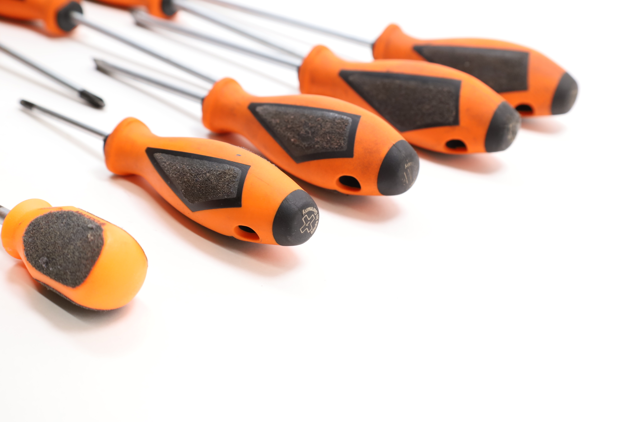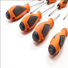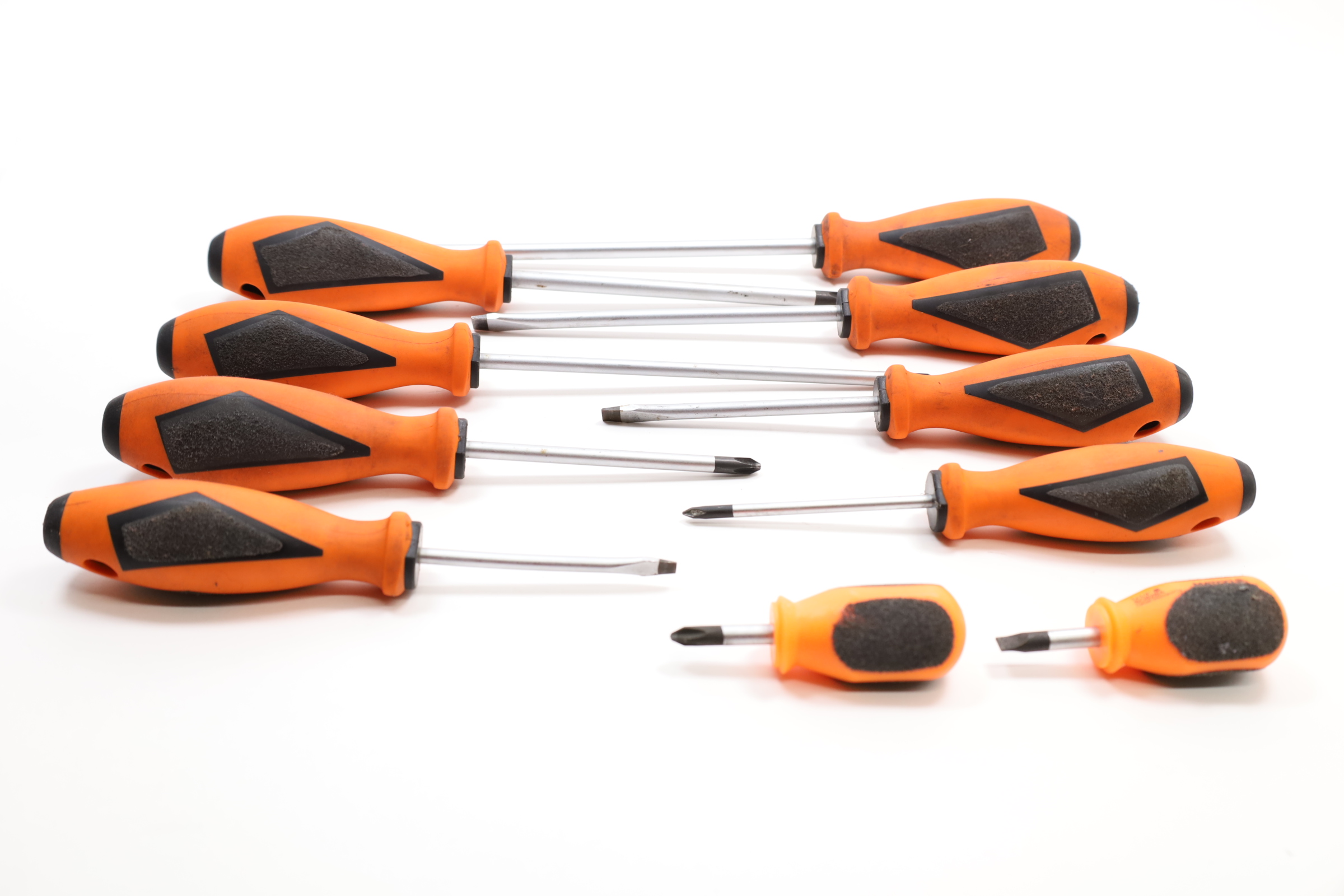 The set includes a variety of screwdrivers, including Phillips and slotted screwdrivers in a variety of sizes. The screwdrivers are made with high-alloy German steel and have black phosphate tips that will not chip off. The handles have a microfiber coating that provides a great grip, even when your hands are slippery. The screwdrivers also have 3-sided ergonomic handles that provide optimum turning power and torque.