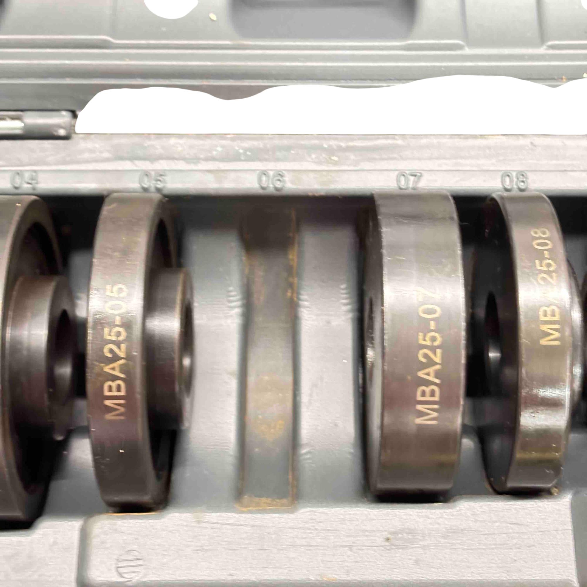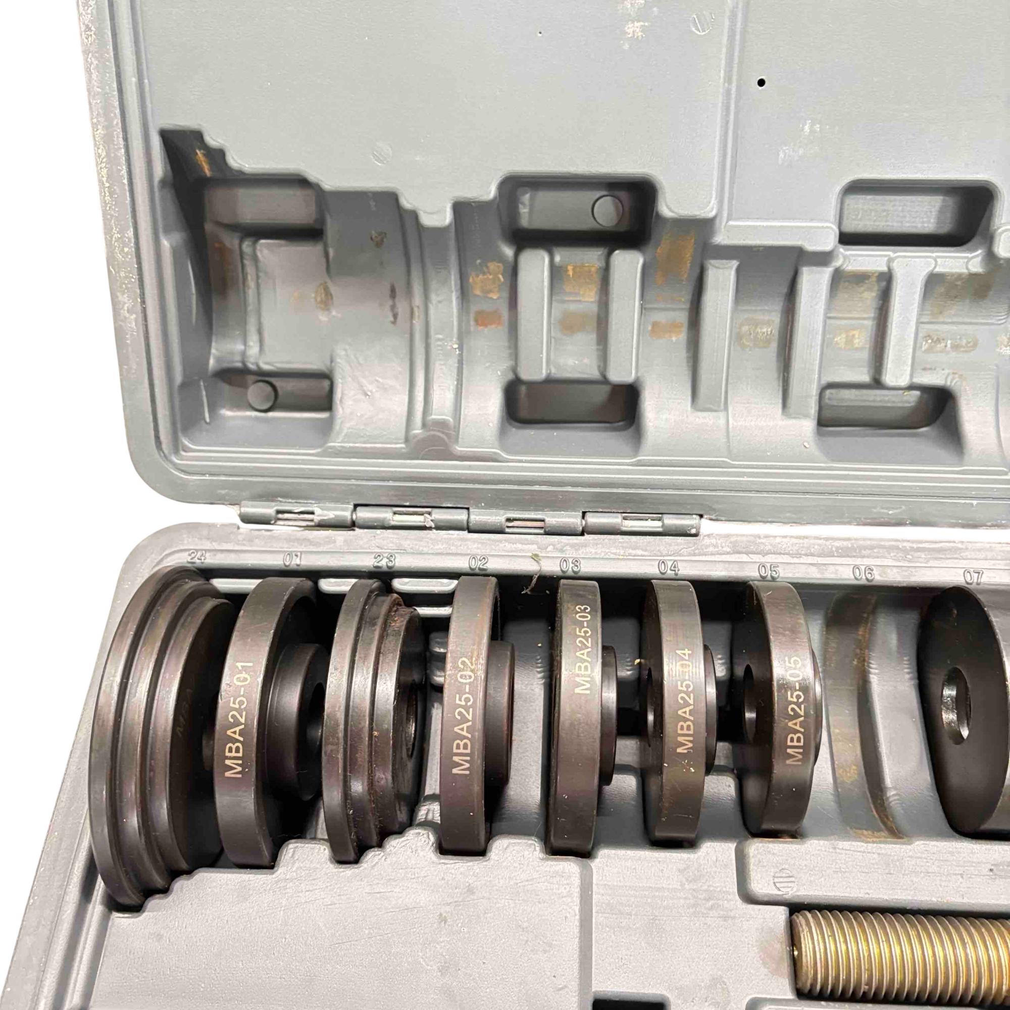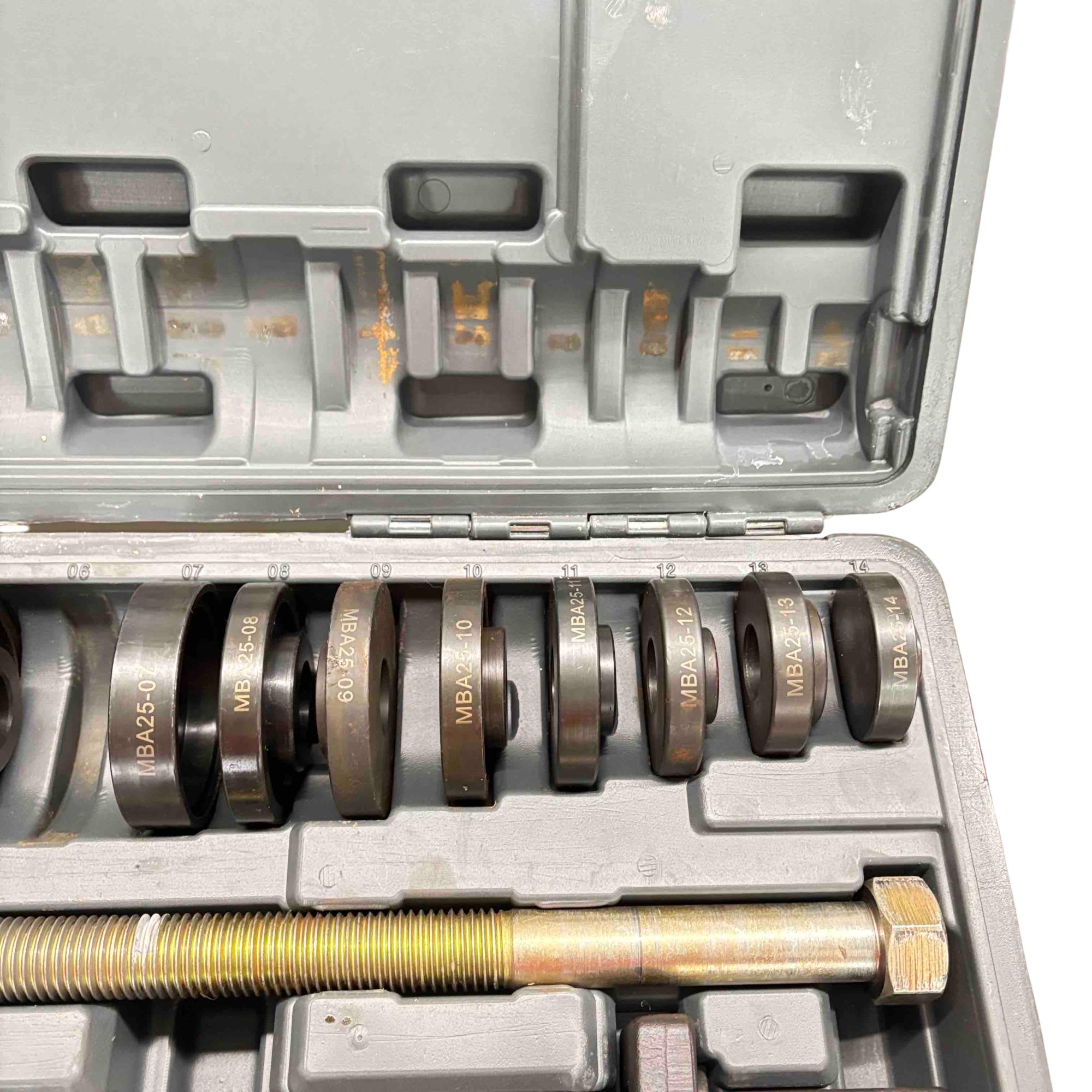 Upgrade your automotive toolkit with the Matco WBSS75 Wheel Bearing Tool Set, a must-have for any car enthusiast or professional mechanic. This comprehensive set includes durable metal discs and bolts, all neatly organized in a sturdy plastic case. It's designed for ease of use and ensures precision and efficiency when working on wheel bearings. In great condition, this tool set offers both quality and reliability for all your mechanical needs.
