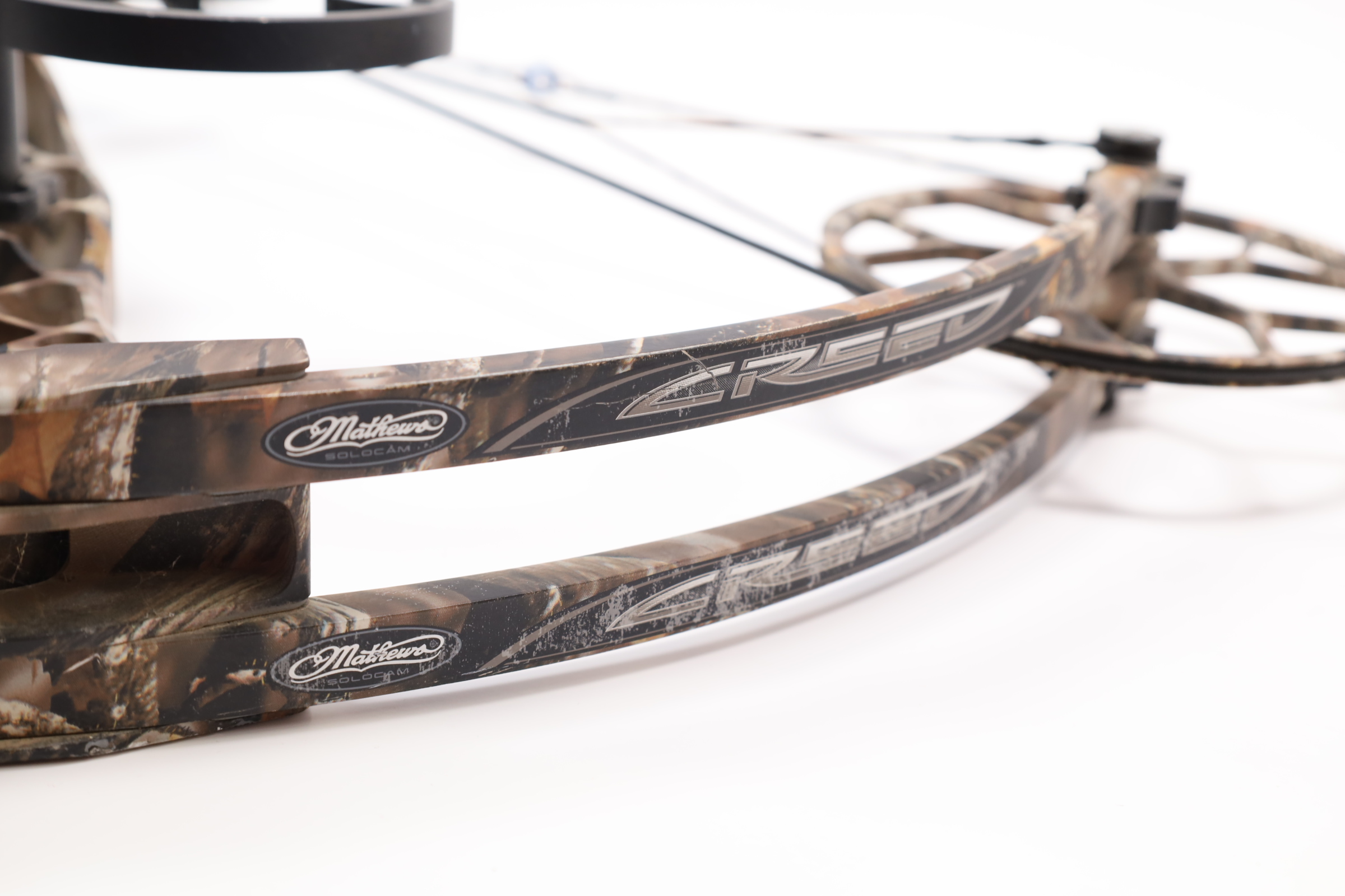 The Creed has an overall riser length of 26 ½ inches, which contributes to its accuracy. It features the lightweight, rigid GeoGrid Lock Riser design, which boosts the overall strength-to-weight ratio of the riser and resists torsion and flex, making it more accurate. The Creed is equipped with the new SimPlex Cam, which ensures a smooth draw and offers a buttery smooth draw cycle and all the speed you need to take down any North American big-game animal. The Creed is the first bow in Mathews history to carry split-limbs in conjunction with the company's famous Parallel Limb Design. It also includes the Reverse Assist Technology, which diminishes friction, making the bow more comfortable and easier to draw. The Creed has a mass weight of 3.85 lbs, an axle-to-axle length of 30 inches, a brace height of 7 inches, and can reach IBO speeds of up to 328 fps. It is available in draw lengths from 26.5 to 29.5 inches and draw weights of 50, 60, and 70 lbs.