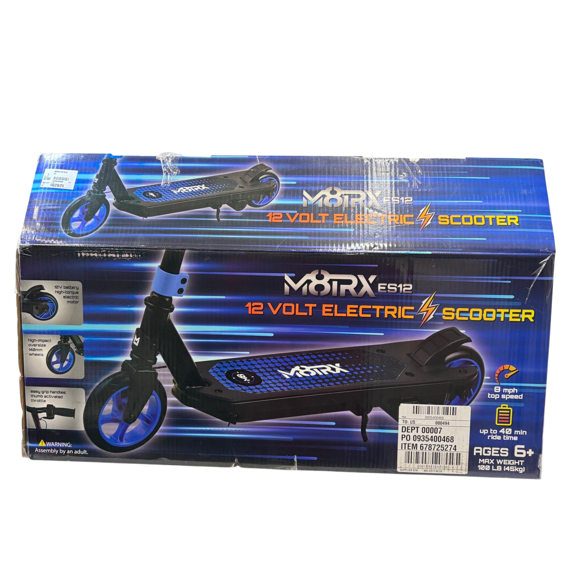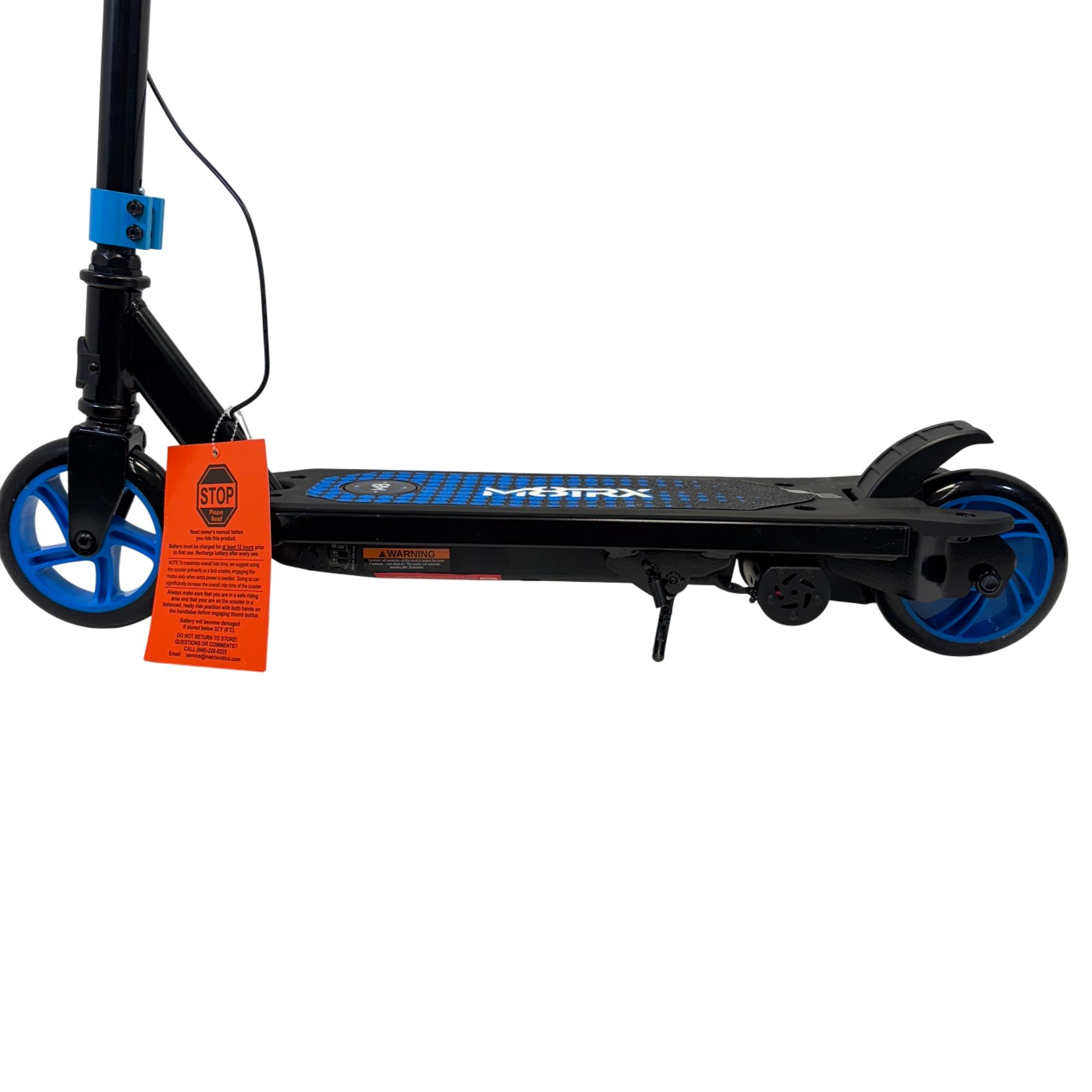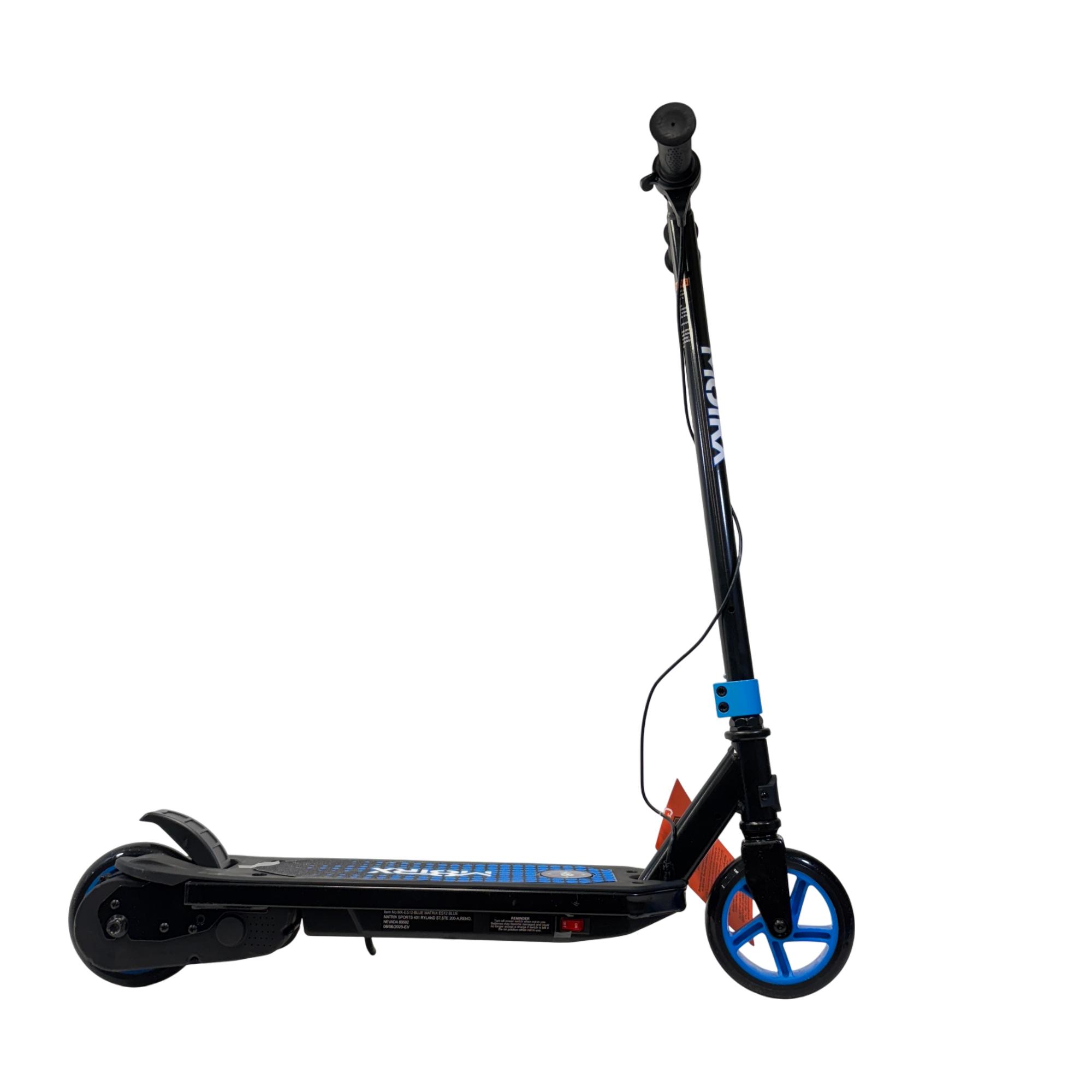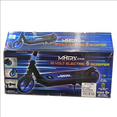 The Matrix 12 Volt Electric Scooter features a sturdy black and blue design with adjustable handlebars, making it suitable for both adults and teens. This electric scooter is equipped with durable wheels and a reliable 12-volt motor to provide an efficient and smooth ride, ideal for urban transportation and outdoor activities.