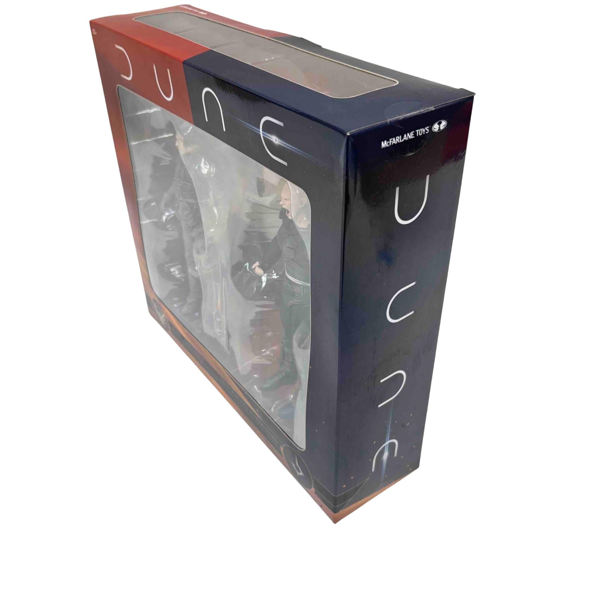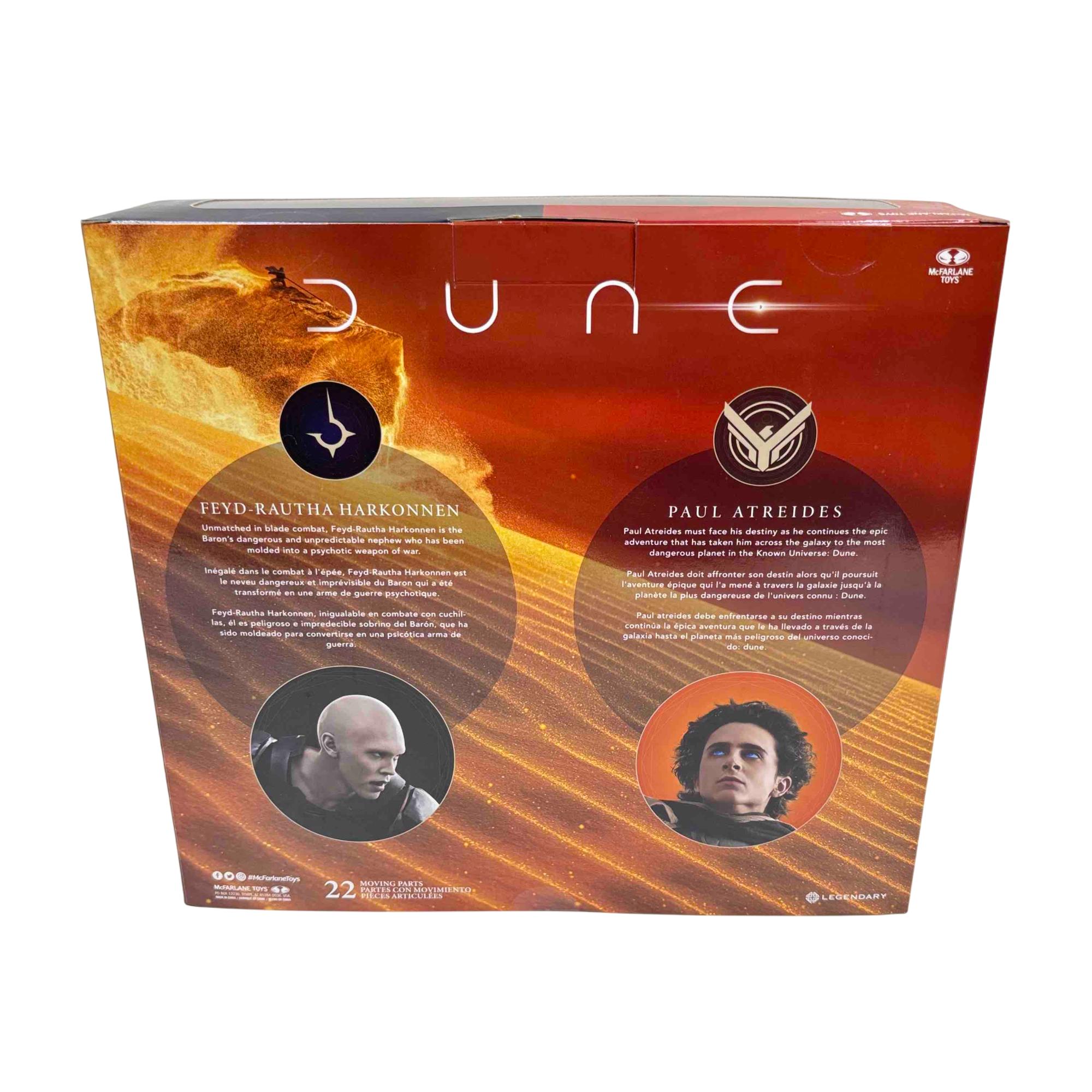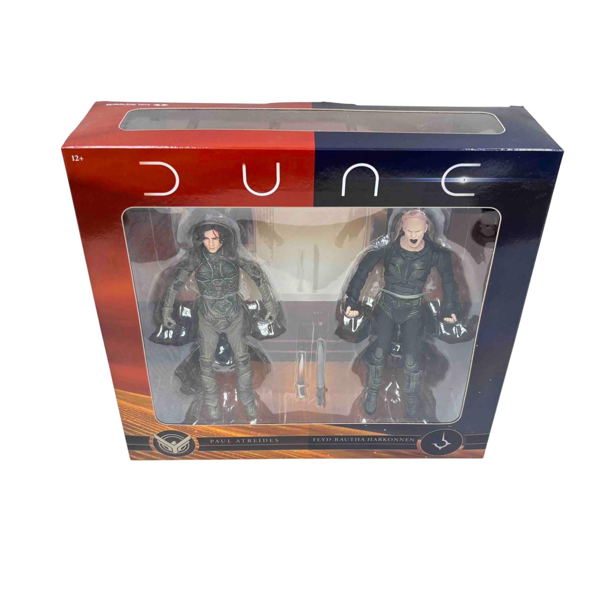 Bring the epic battle of Arrakis to your collection with this McFarlane Toys Dune: Part Two action figure 2-pack, starring Paul Atreides and Feyd-Rautha Harkonnen. These highly detailed 7-inch figures come with authentic accessories and premium window-box packaging, making them a must-have for fans of the Dune franchise. Add a piece of cinematic history to your shelf and relive the showdown from the acclaimed sequel!