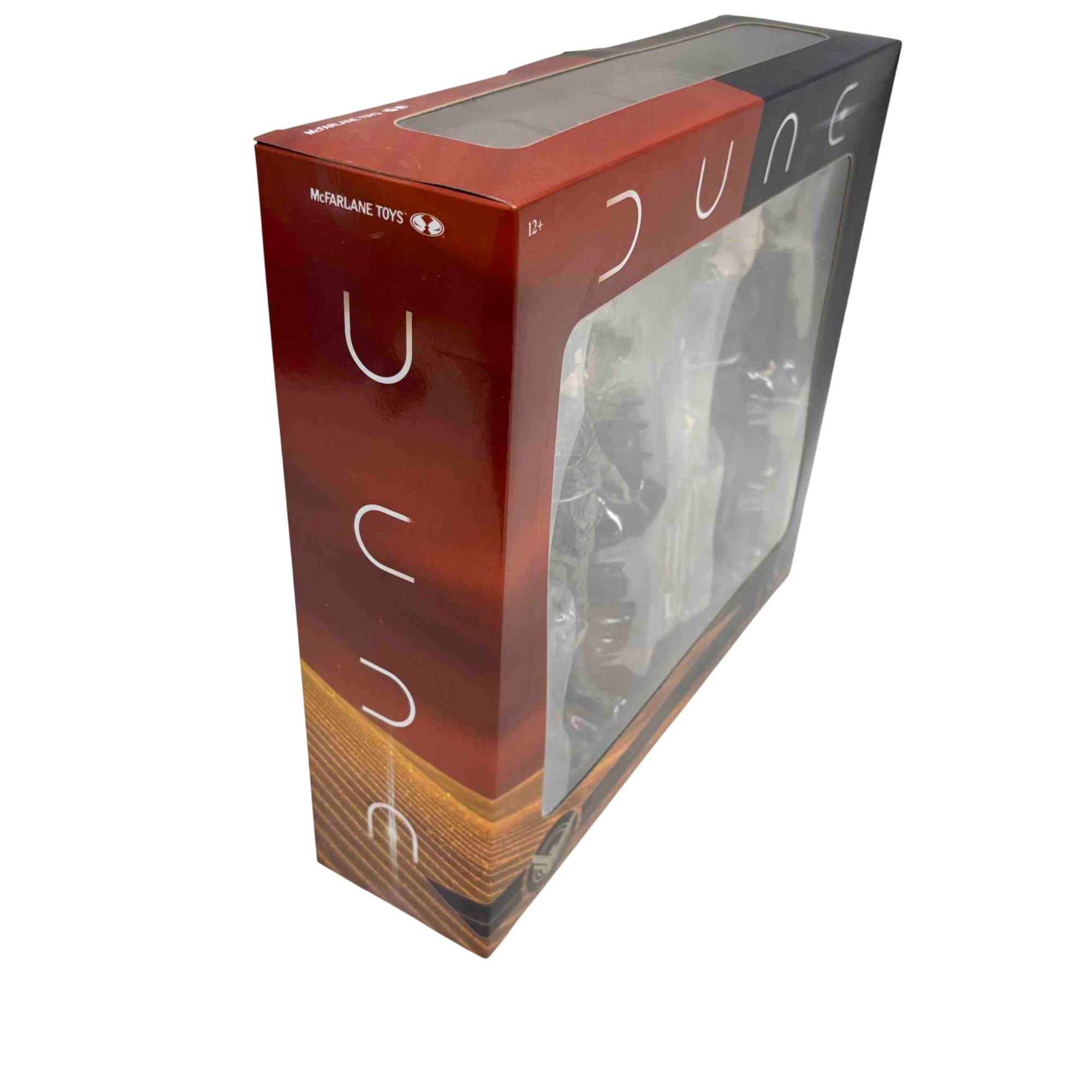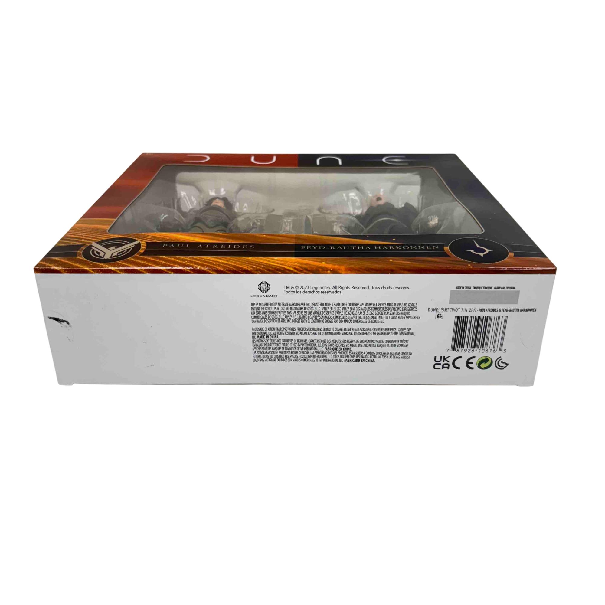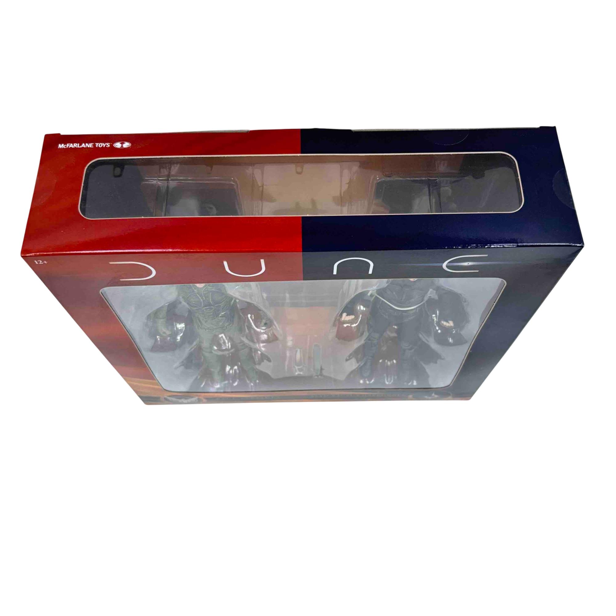 Bring the epic battle of Arrakis to your collection with this McFarlane Toys Dune: Part Two action figure 2-pack, starring Paul Atreides and Feyd-Rautha Harkonnen. These highly detailed 7-inch figures come with authentic accessories and premium window-box packaging, making them a must-have for fans of the Dune franchise. Add a piece of cinematic history to your shelf and relive the showdown from the acclaimed sequel!