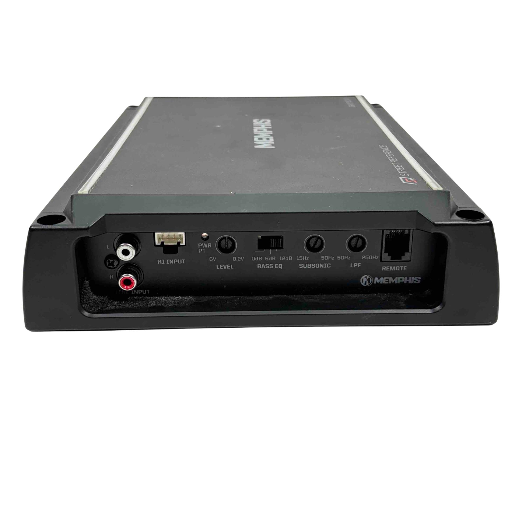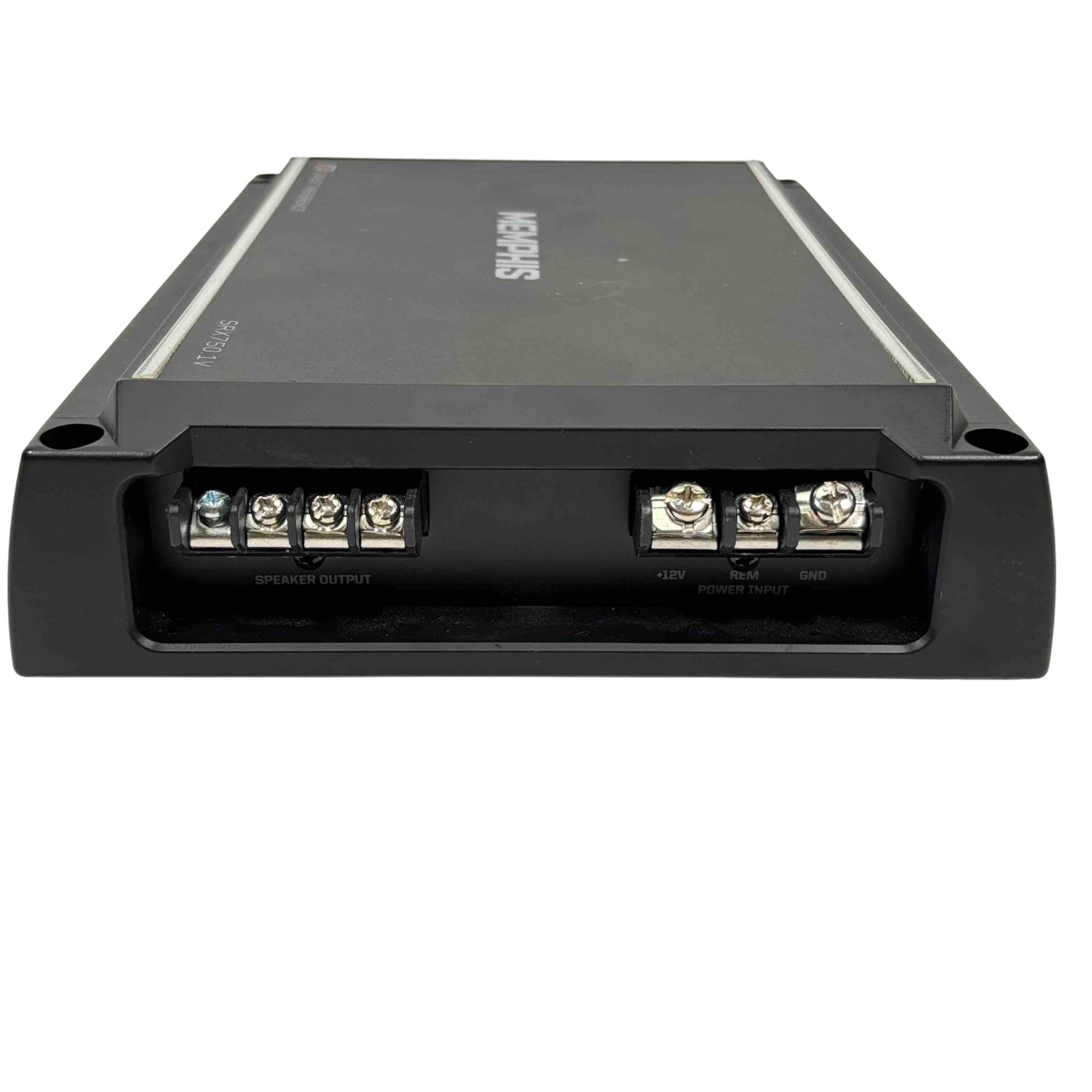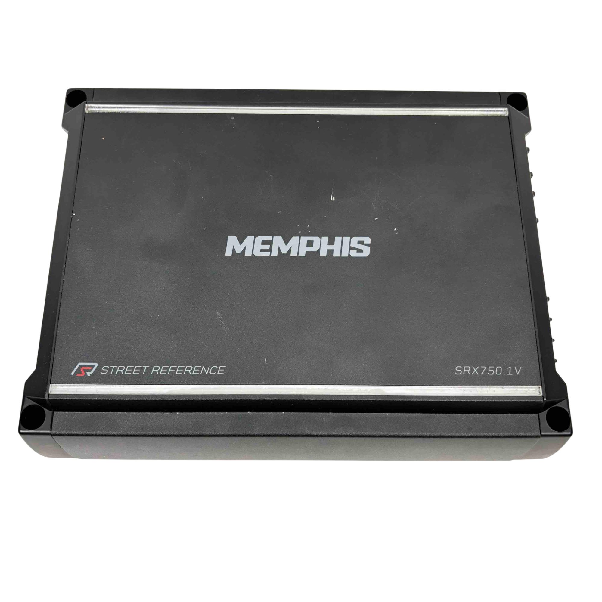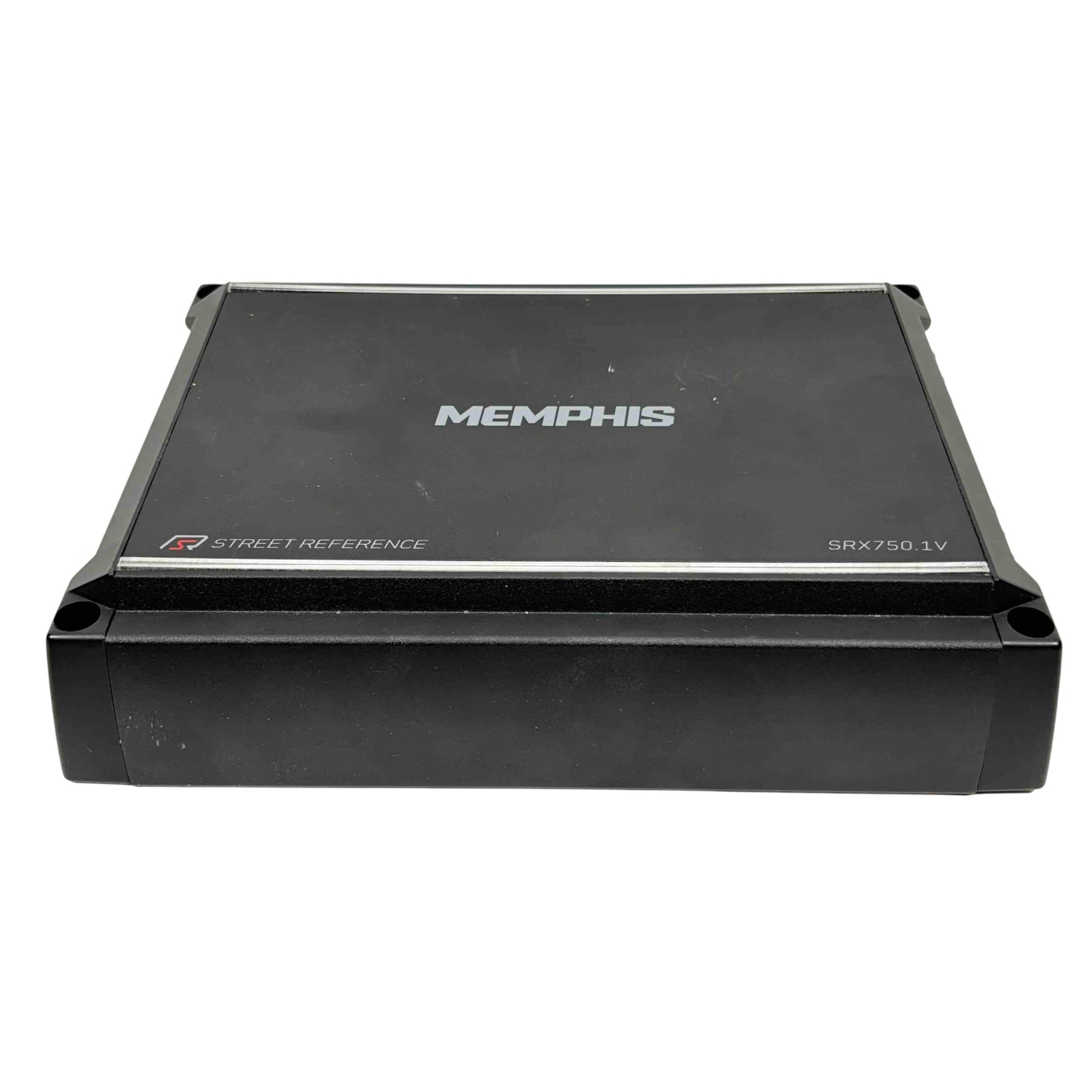 Memphis Audio SRX750.1V Street Reference Monoblock Amplifier delivers 750 watts RMS power at 2 ohms, featuring Class A/B amplification for clear, powerful car audio performance. This sleek black amplifier is designed for high-quality bass and overall sound enhancement in automotive audio systems.
