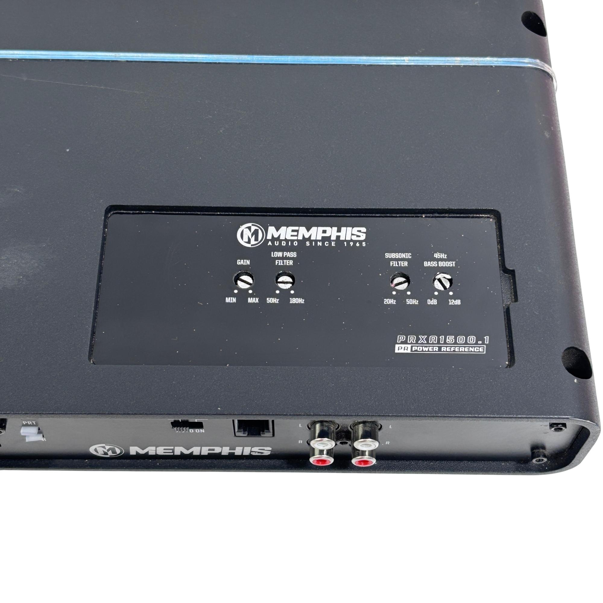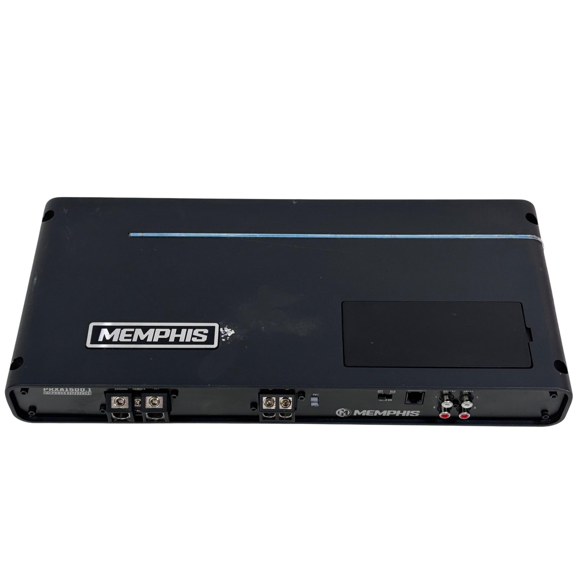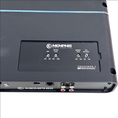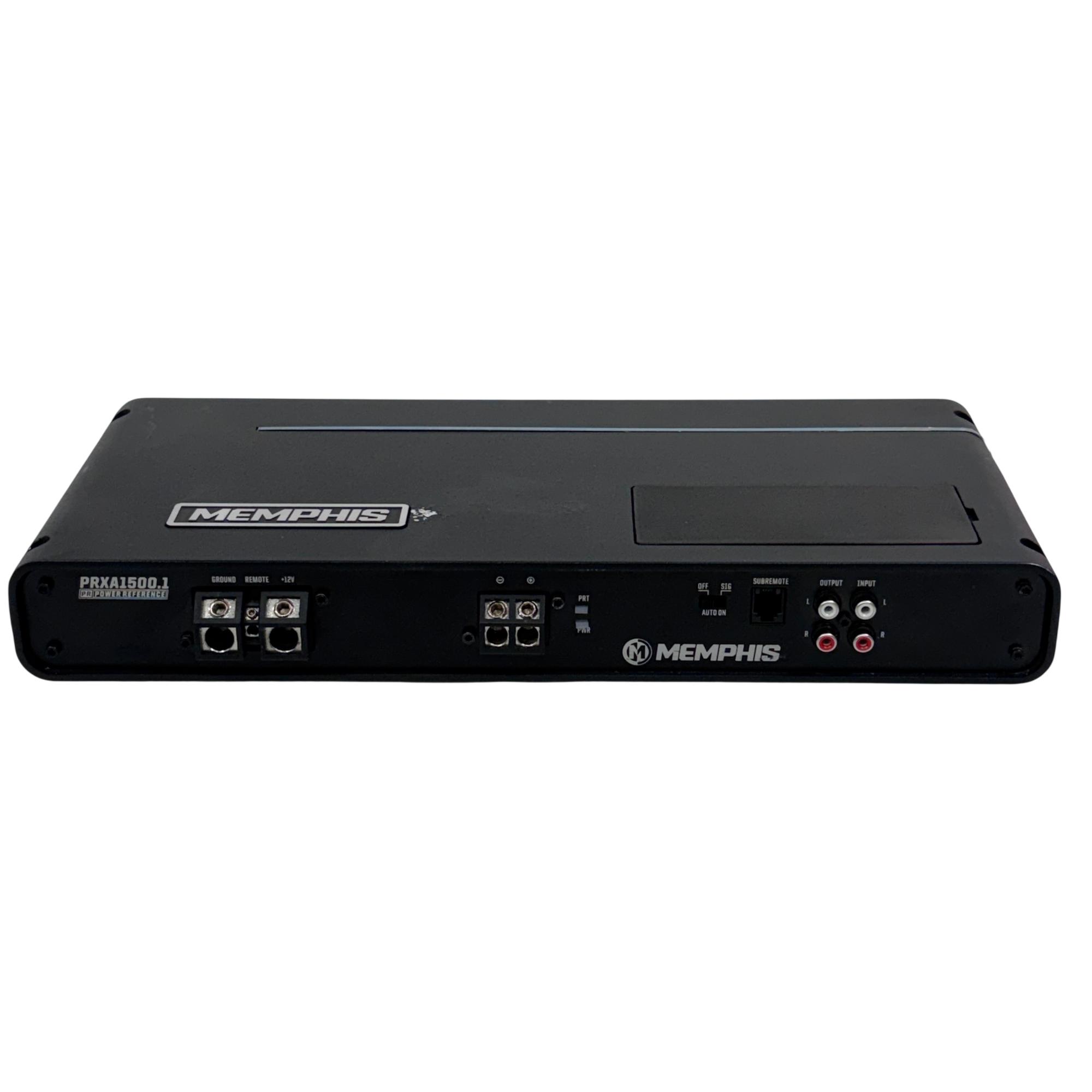 Memphis PRXA1500.1 Power Reference Series 1500-Watt Mono Car Amplifier delivers high-performance audio amplification designed for car audio systems. This black rectangular amplifier features a robust design with multiple ports and controls, ensuring powerful and clear sound output ideal for subwoofer integration and enhanced in-vehicle audio experiences.