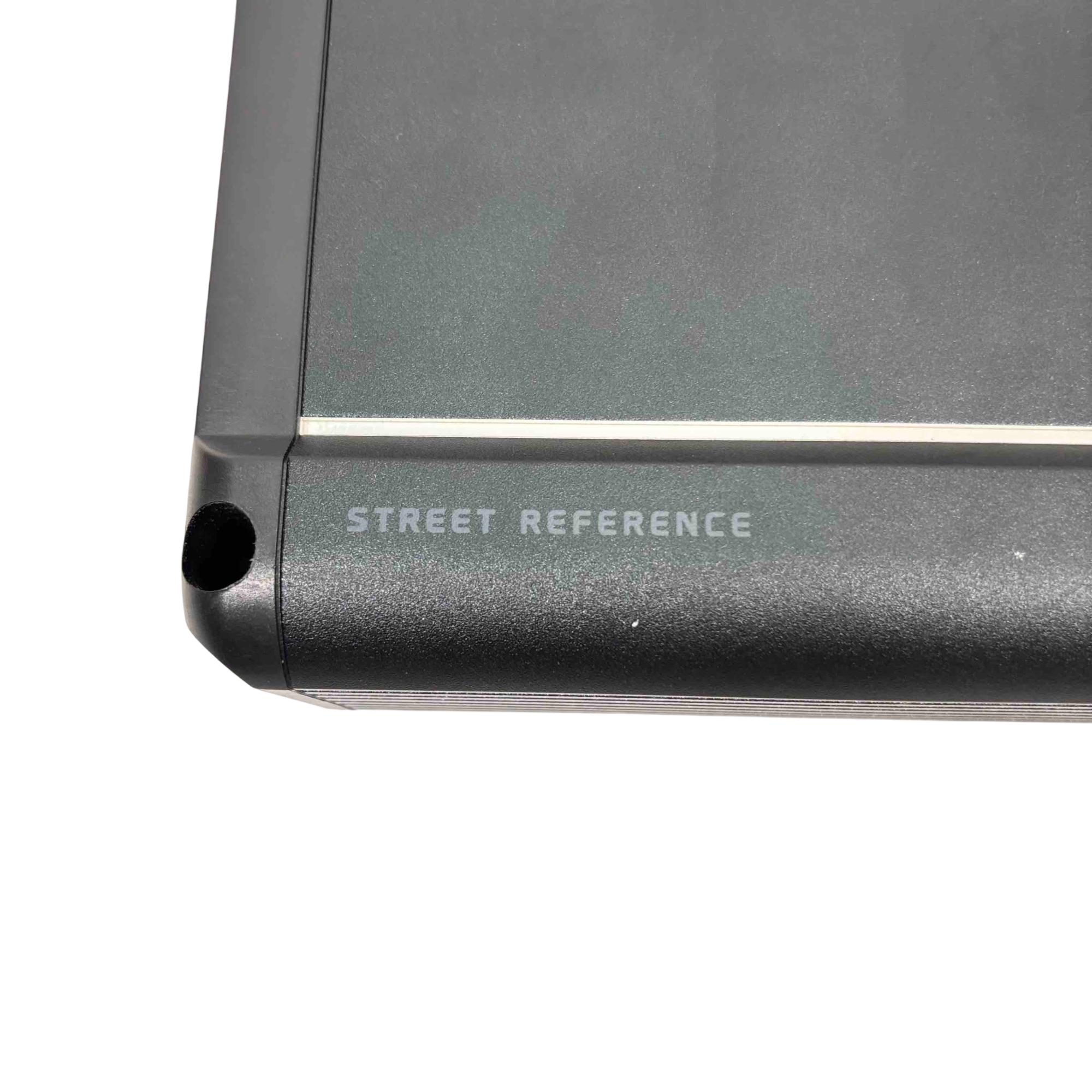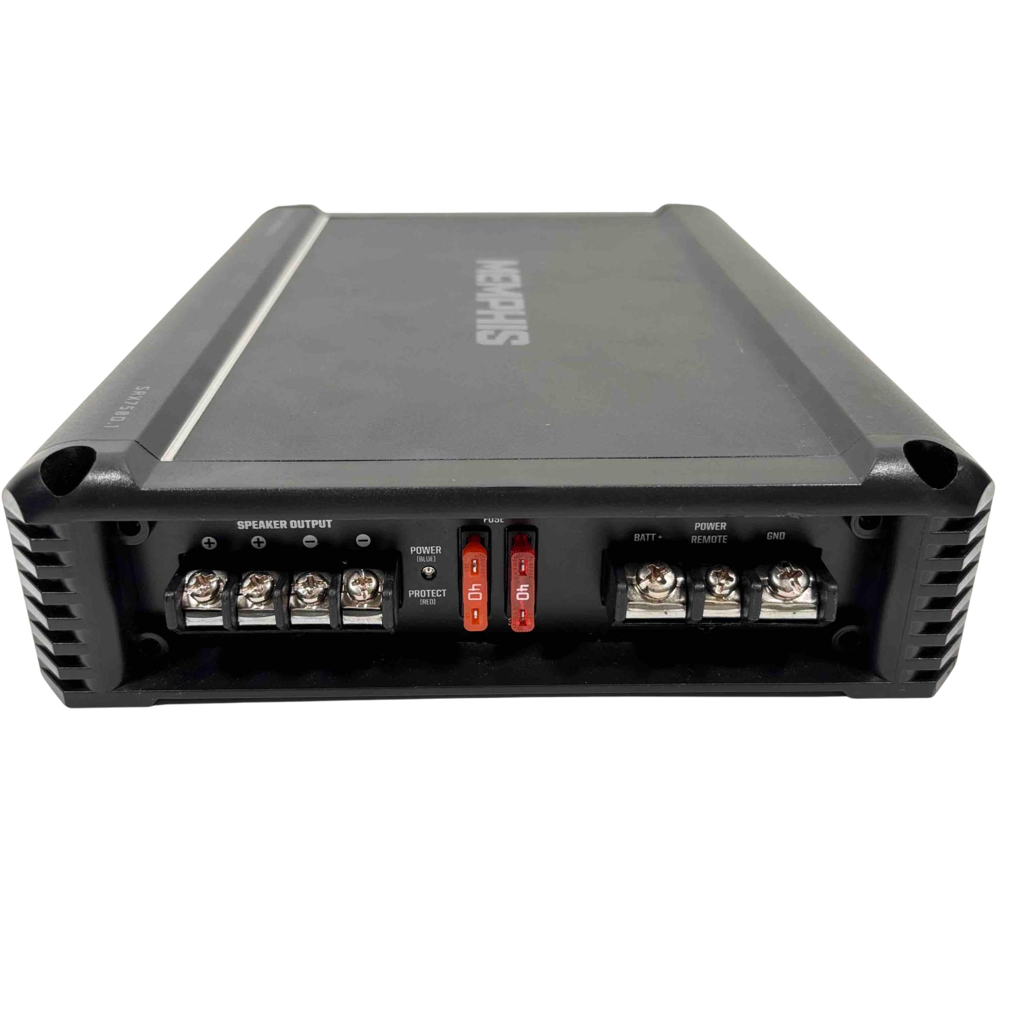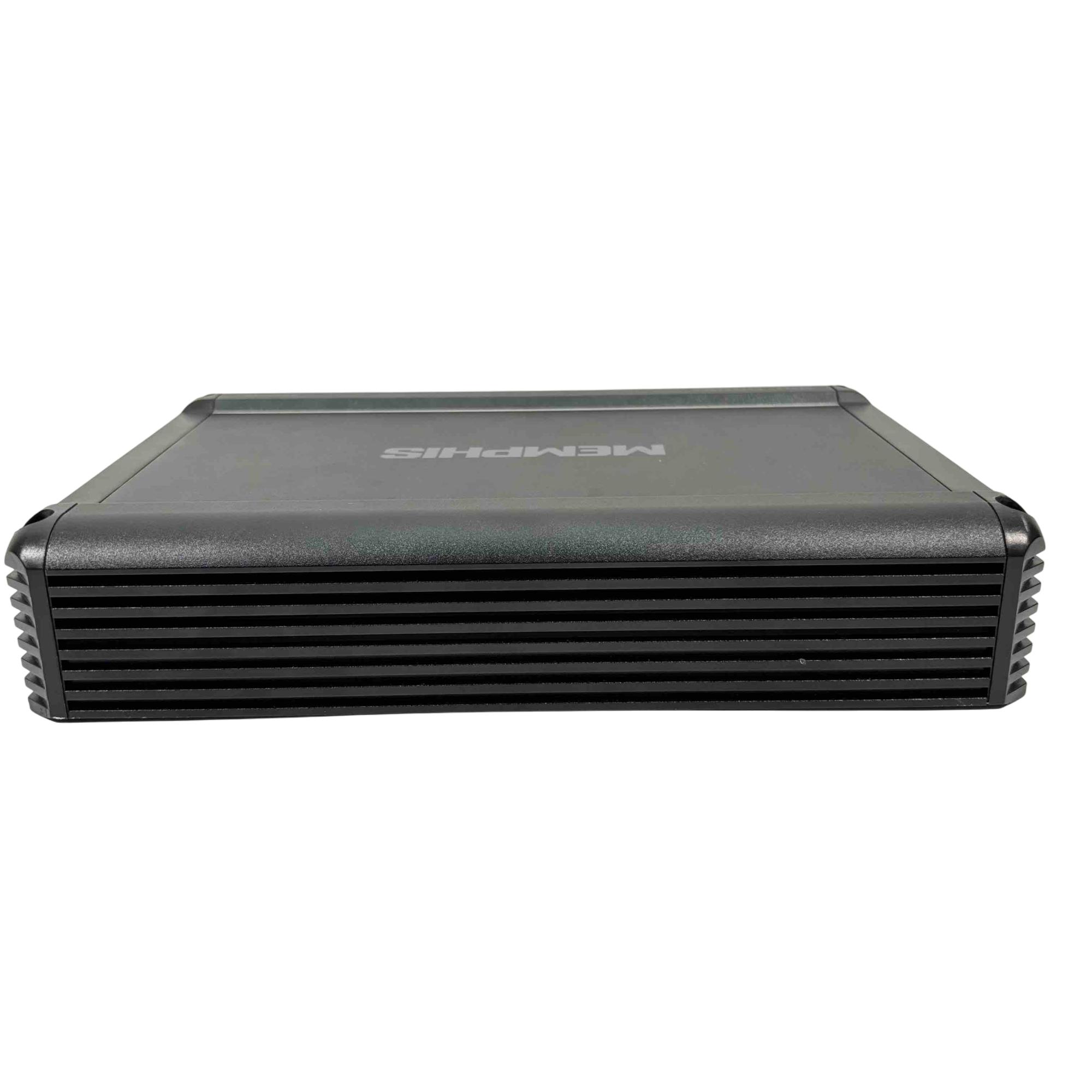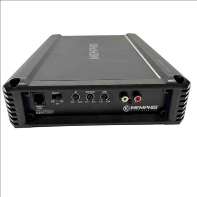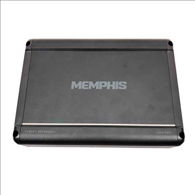 Memphis Street Reference SRX750D.1 Mono Car Amplifier delivers 750 watts of power with a sleek black rectangular design featuring a white border and clear branding. This high-performance amplifier is designed for car audio enthusiasts seeking robust, mono-channel amplification with precise sound quality and durable construction.