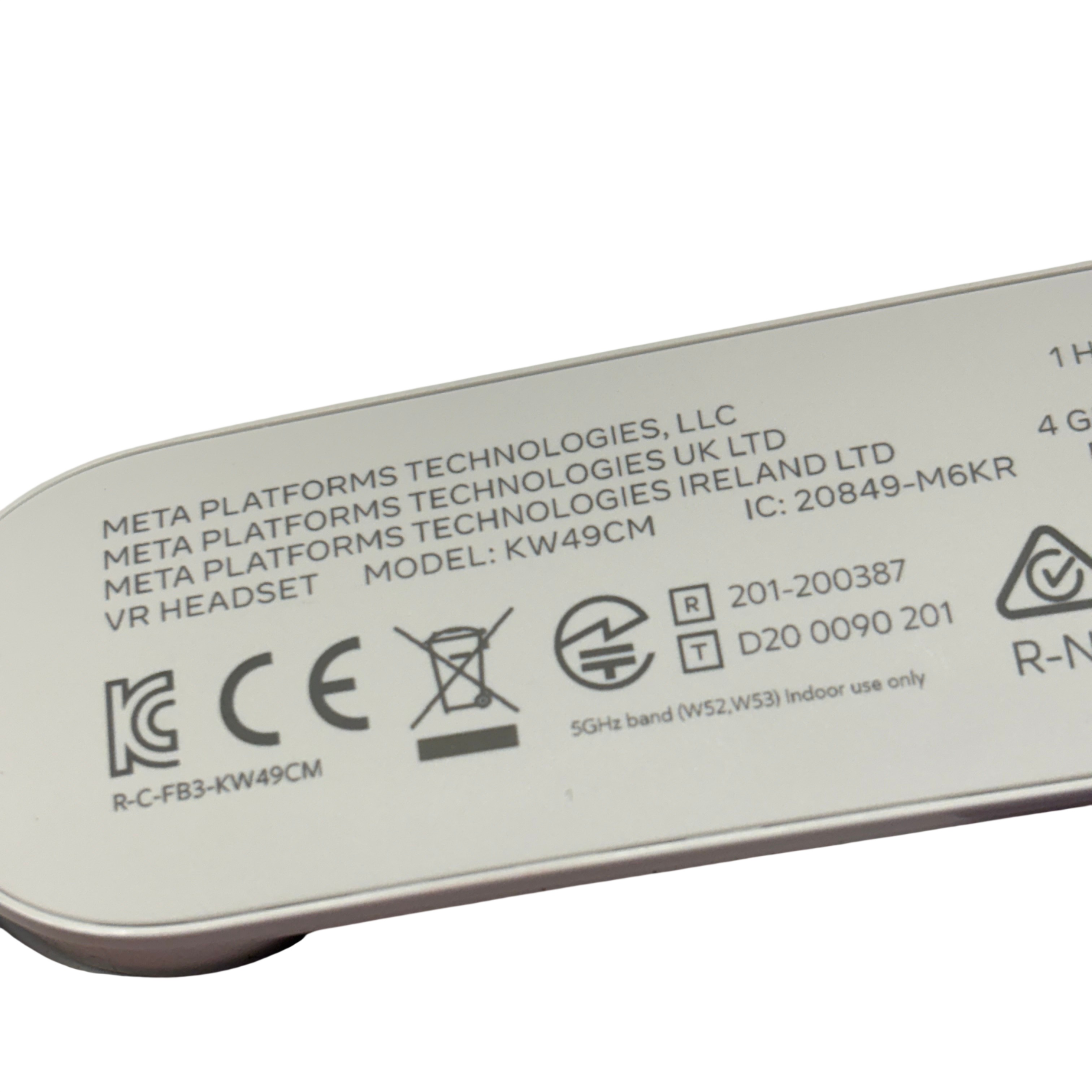 The Meta KW49CM VR Headset offers an immersive virtual reality experience with wireless connectivity operating on the 5GHz band. This lightweight headset features an adjustable head strap for comfort during extended use and comes with two ergonomic wireless controllers for intuitive interaction. Designed by Meta Platforms Technologies LLC, this VR headset is ideal for indoor use and provides a seamless, untethered VR experience for gaming and virtual applications.