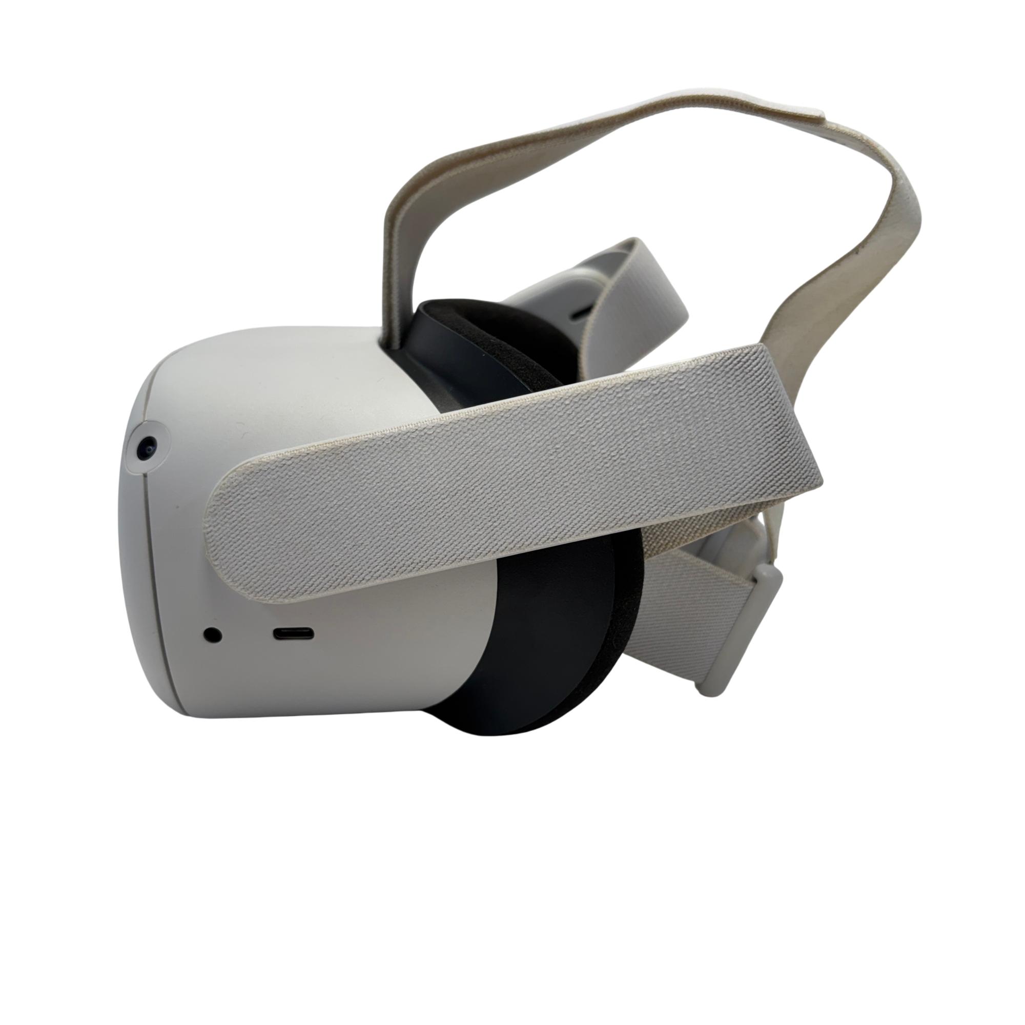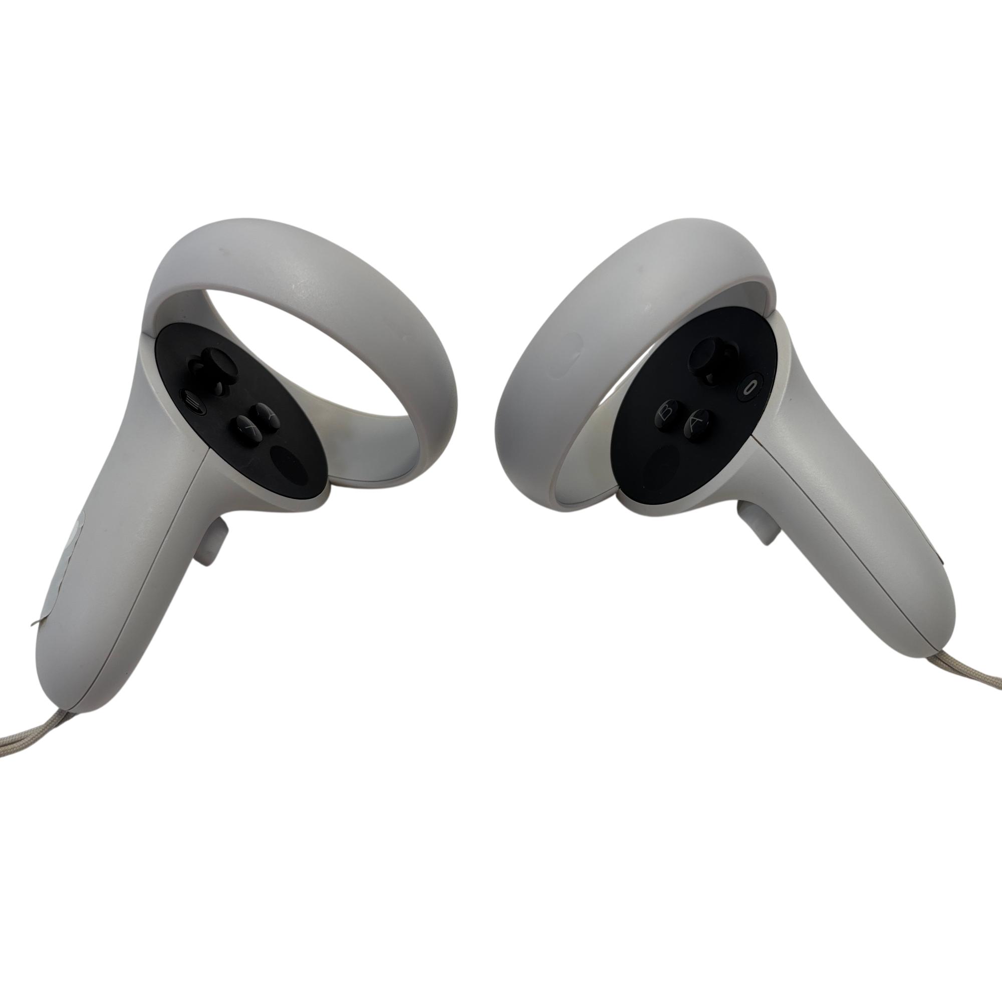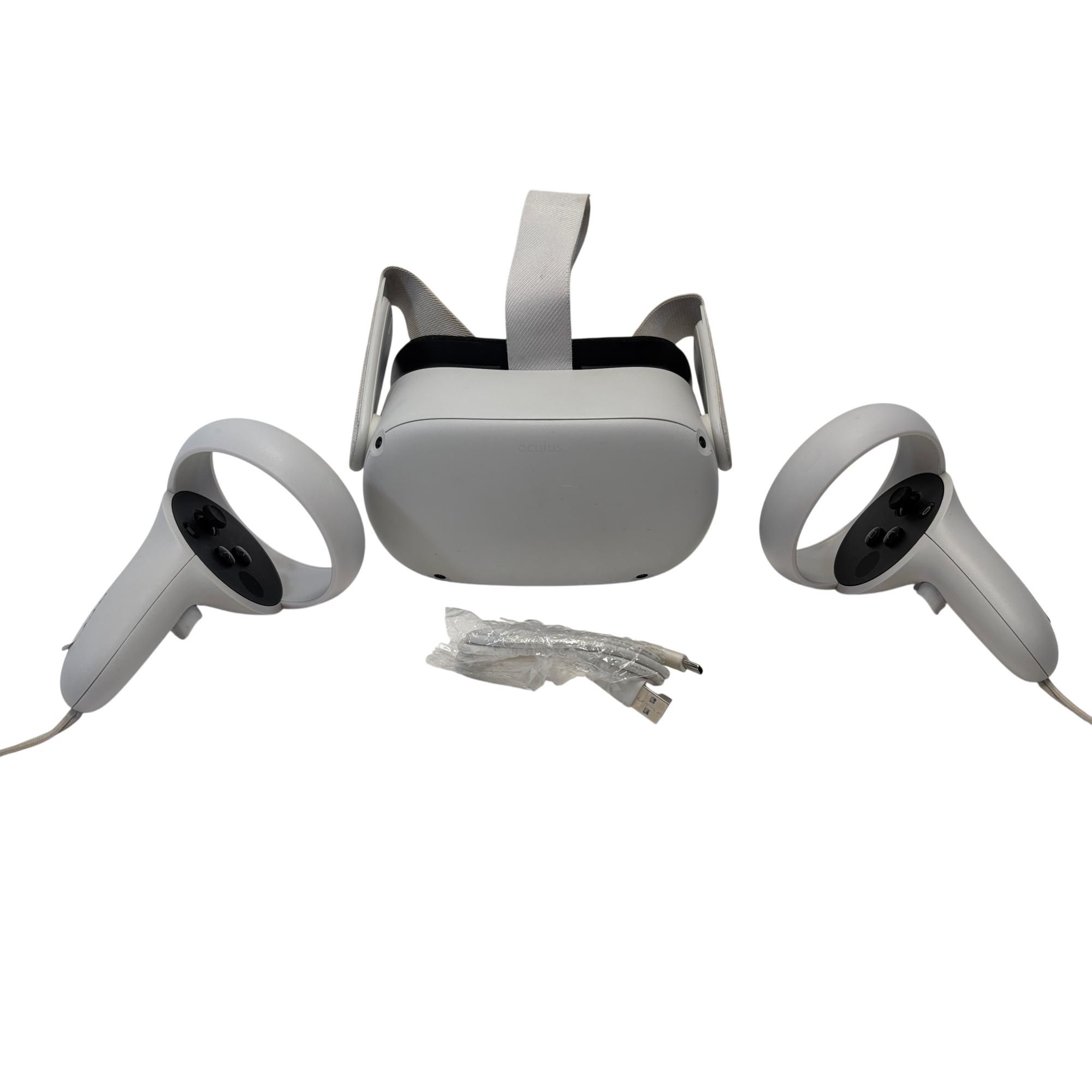The Meta Oculus Quest 2 All-in-One Virtual Reality Headset with Controllers offers an immersive VR experience featuring high-resolution displays and a comfortable white and black design. This standalone headset provides advanced tracking technology and intuitive controls for seamless gameplay and interactive virtual environments.