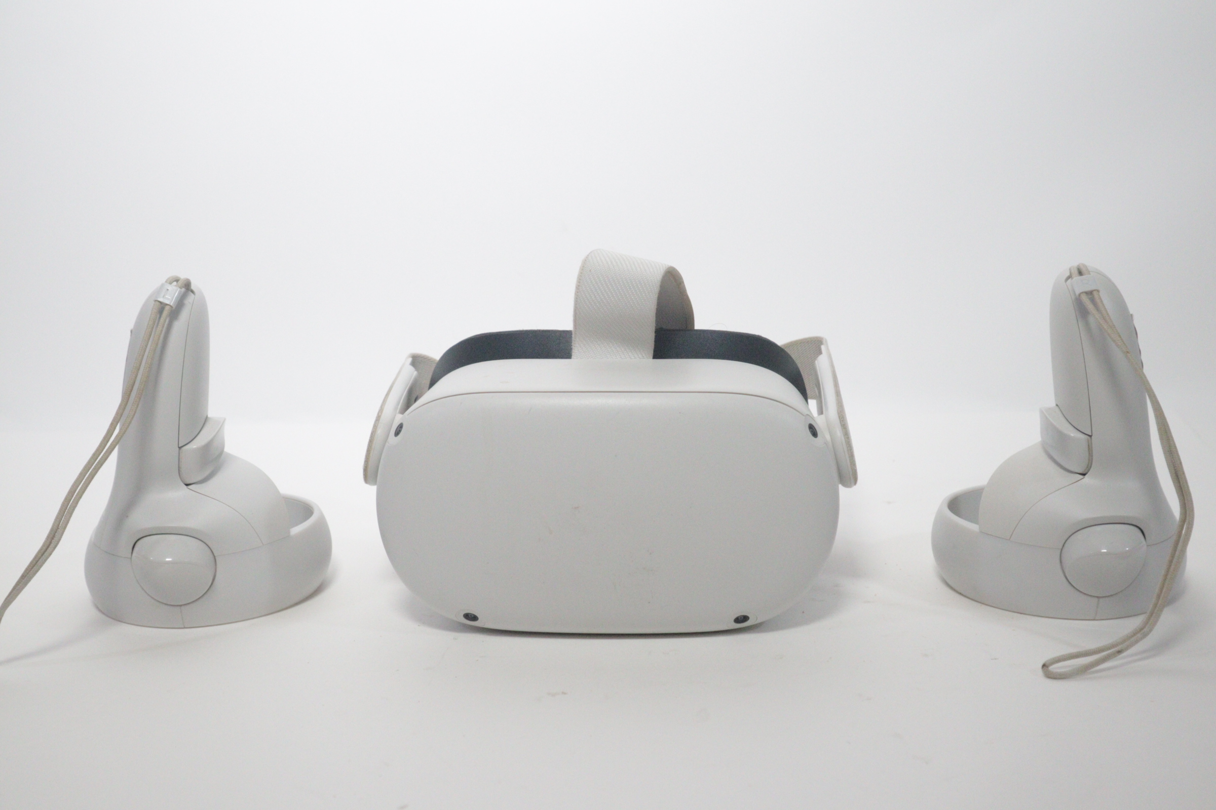 Meta Quest 2 is the all-in-one system that truly sets you free to roam in VR with no wires or cables to limit your experience. A super-fast processor and high-resolution display help to keep your experience smooth and seamless, even as high speed action unfolds around you. 3D positional audio, hand tracking and haptic feedback make virtual worlds feel real. A built-in battery lets you explore further for longer as you discover a growing library of over 350 titles across gaming, social/multiplayer, fitness and entertainment. Incredible social spaces and multiplayer arenas let you meet, play and build communities with people from all over the world. Travel universes in blockbuster fantasies, scare yourself witless in horror adventures or collaborate with colleagues in innovative workspaces. Sit front row with friends and family at movies and live events, find your new workout crew or join quests with fellow adventurers.