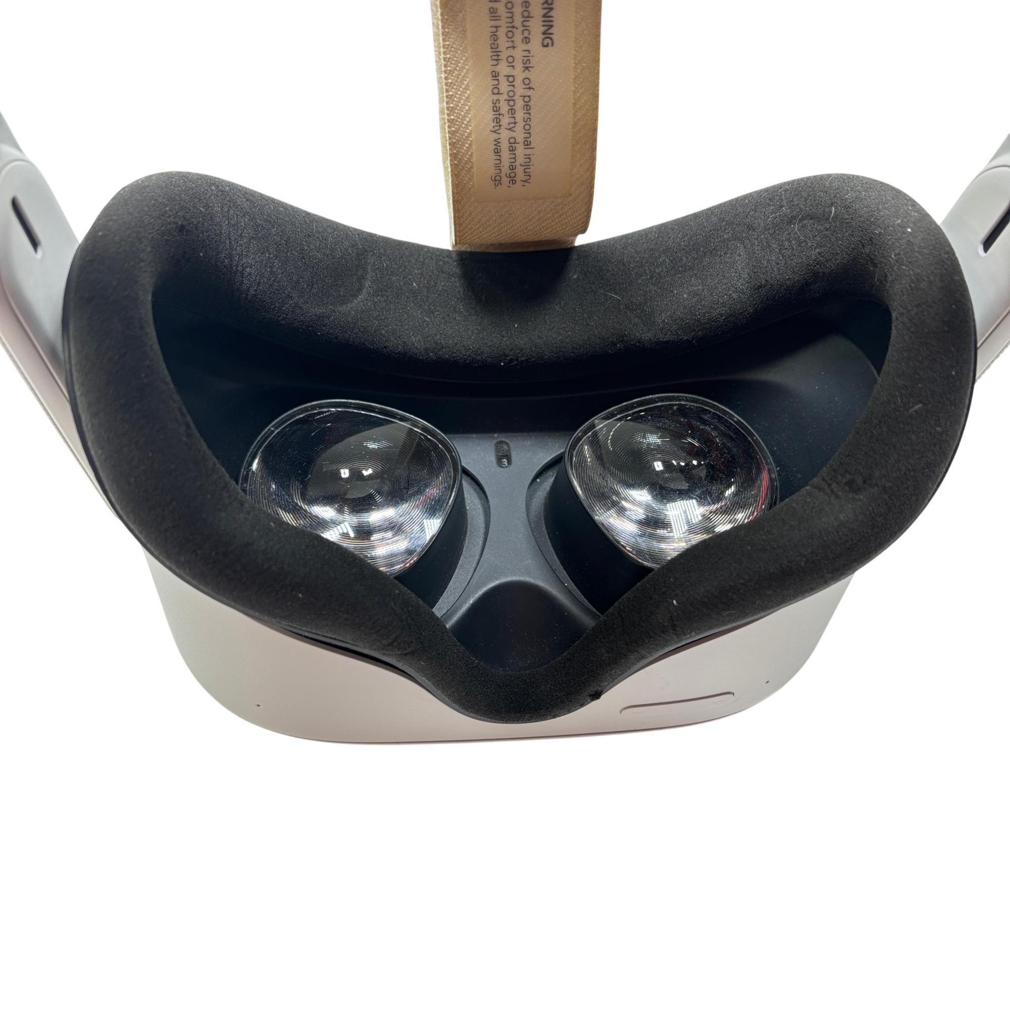 Meta Quest 2 128GB Virtual Reality Headset delivers an immersive all-in-one VR experience with high-resolution display and fast processing power. This sleek white model features an ergonomic design and built-in spatial audio for realistic sound, enhancing interactive gaming and virtual exploration. Equipped with intuitive controllers, it provides precise tracking and seamless user interaction in a wide variety of virtual environments.