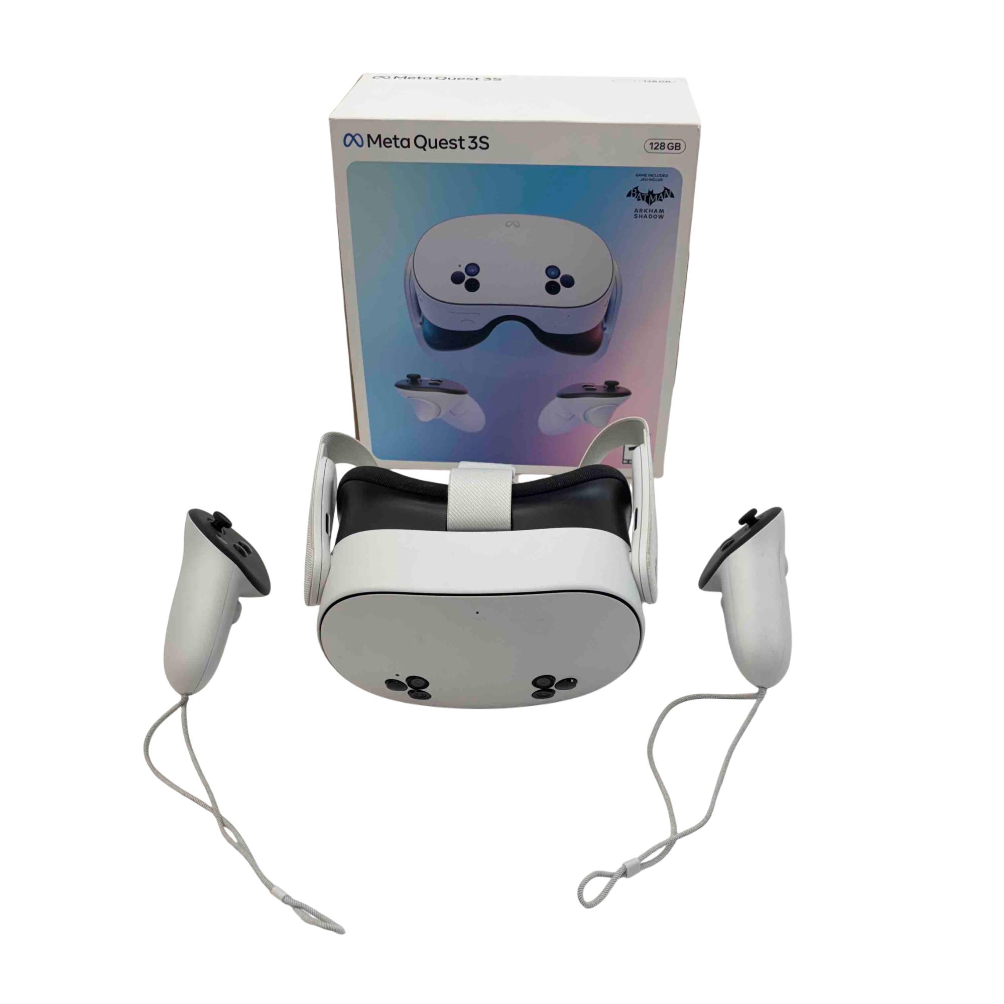 Immerse yourself in a new reality with the Meta Quest 3S 128 GB Virtual Reality Headset. This sleek, white and black device offers cutting-edge virtual reality experiences, enhanced by its 128 GB storage for all your games and apps. The special Batman Arkham Edition comes with game controllers, allowing you to dive into thrilling adventures right out of the box.