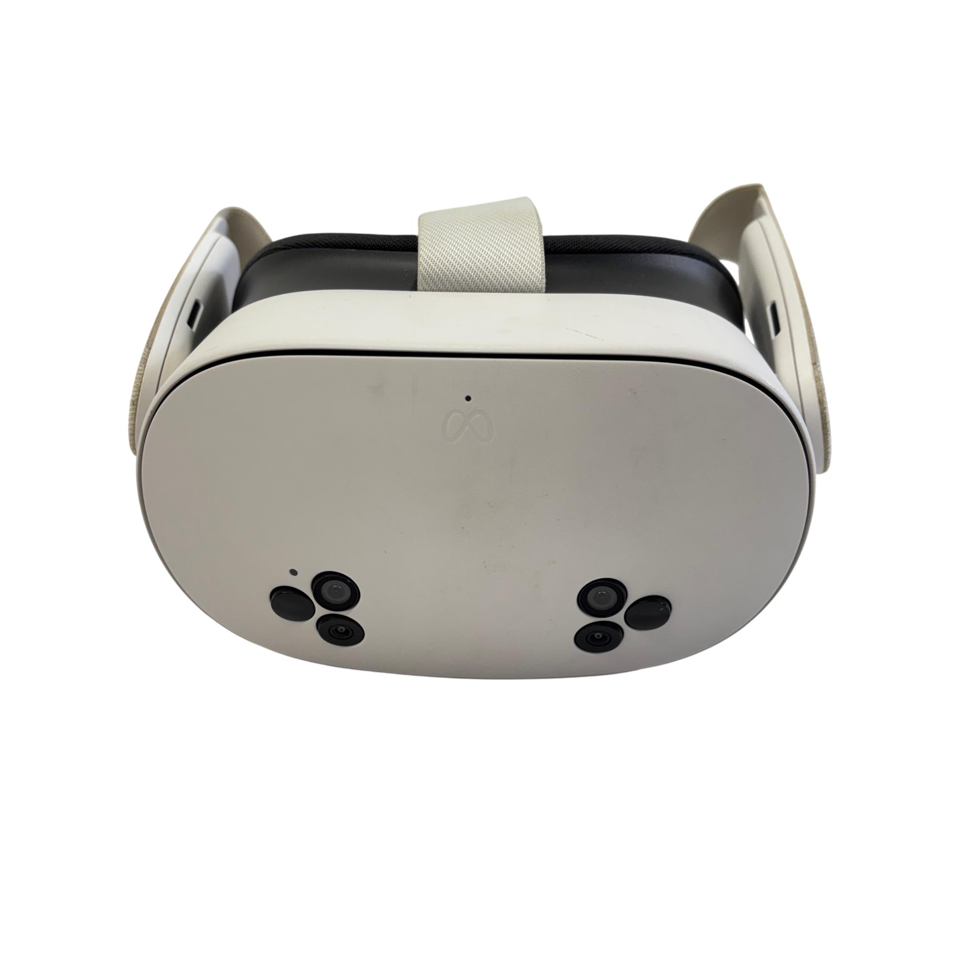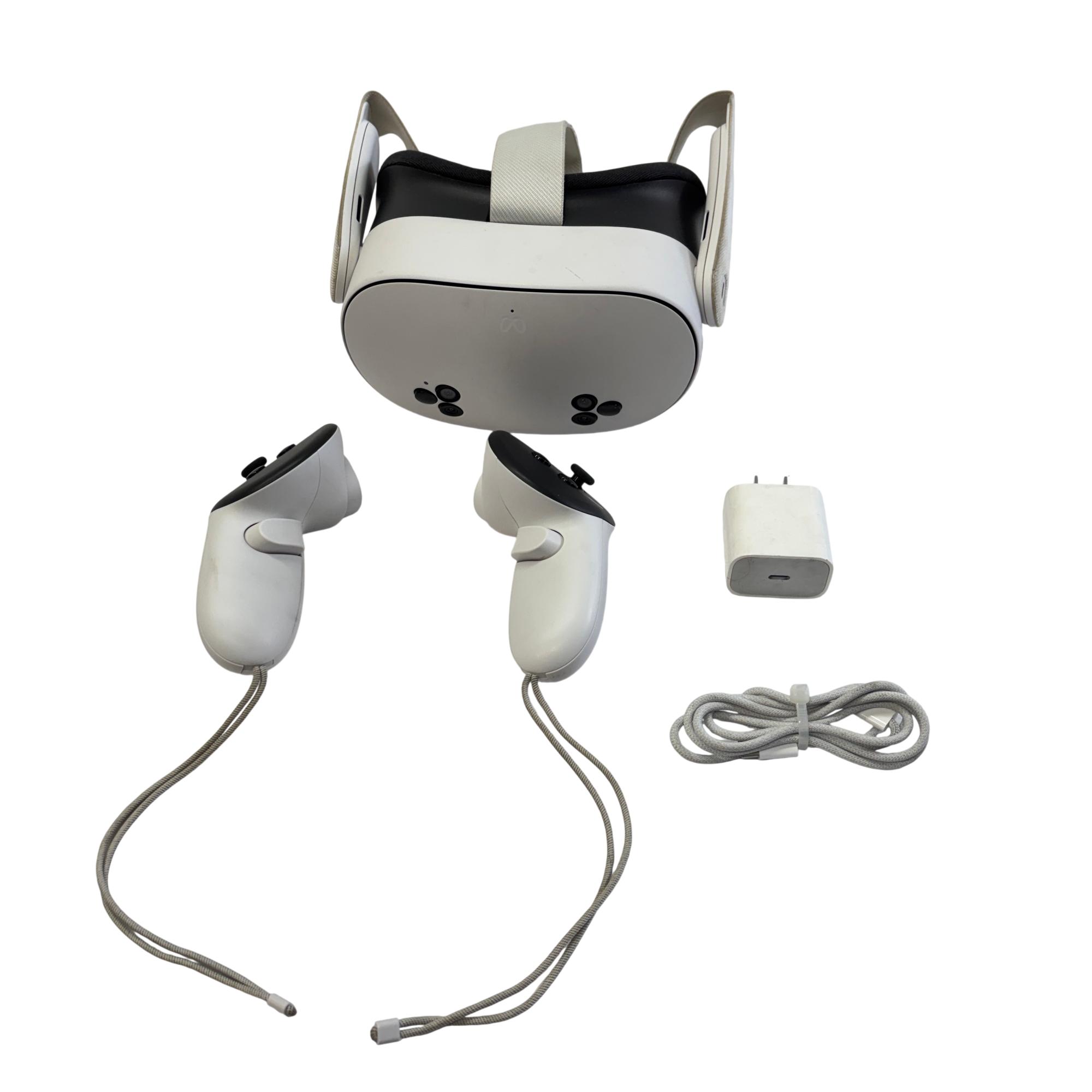 Meta Quest 3S All-In-One VR Headset 128GB (Model P97) delivers an immersive virtual reality experience with a sleek white and black design. This advanced headset features a high-resolution display and ergonomic straps for comfortable extended use. Equipped with intuitive controllers, it enables seamless interaction in a wide range of VR applications and games.