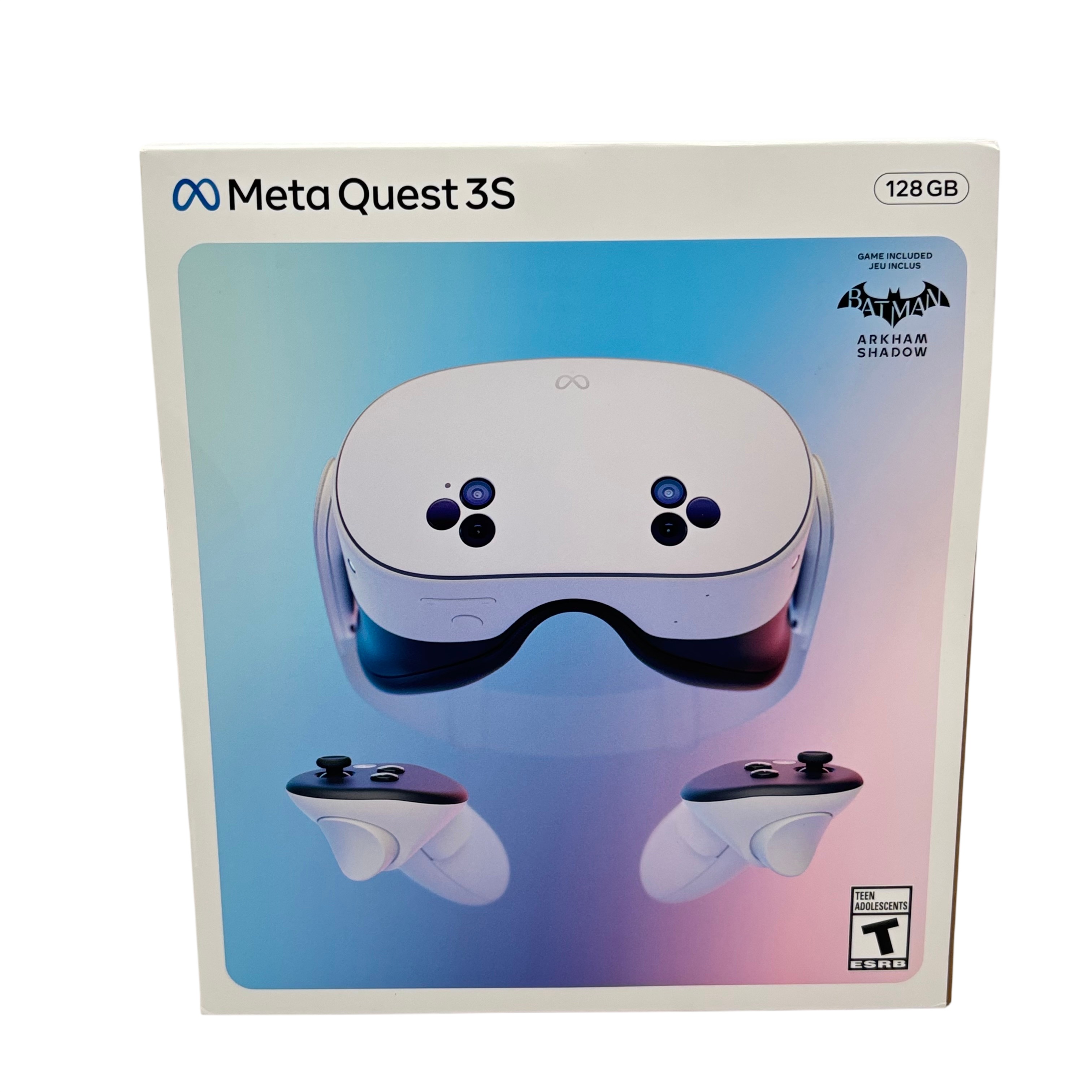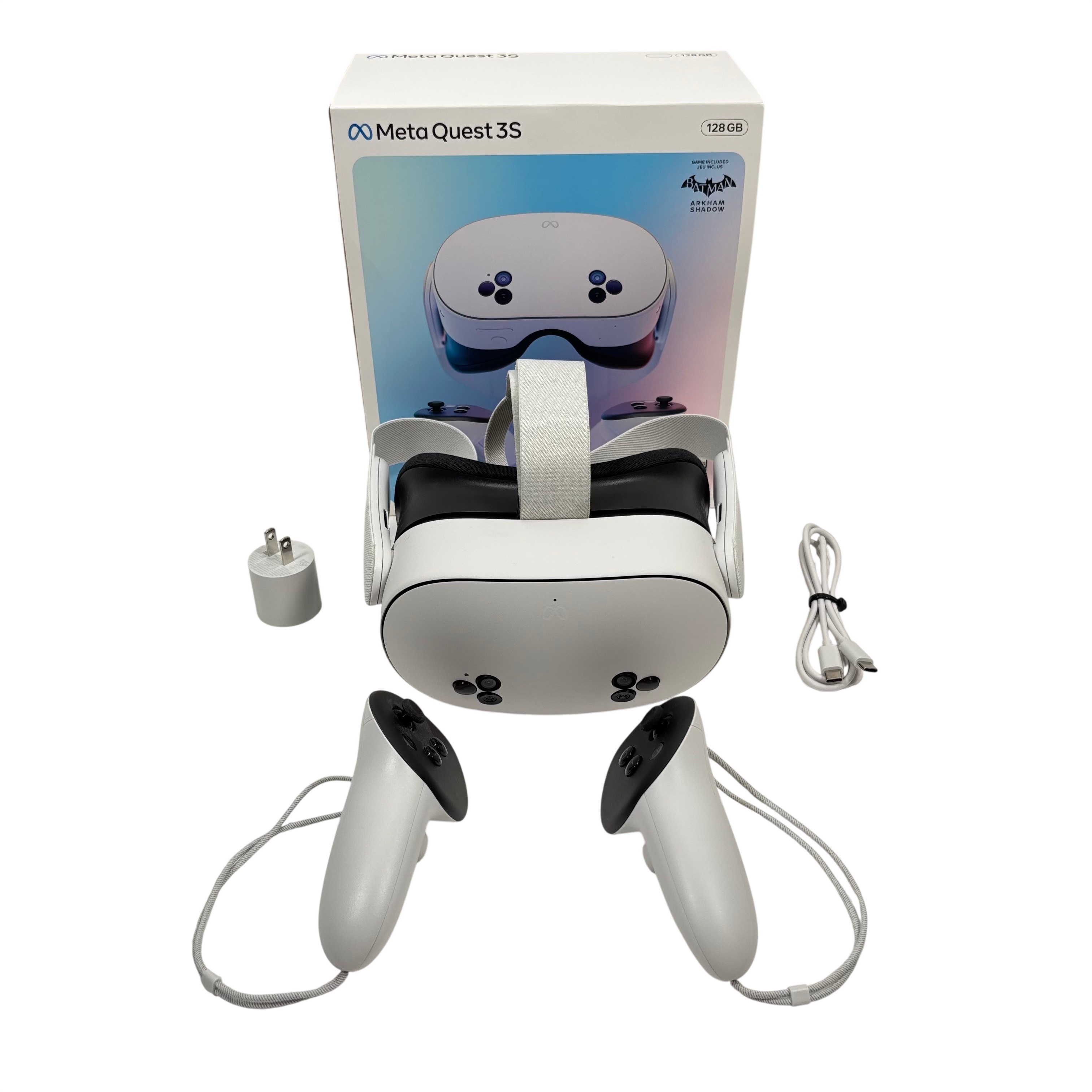 Meta Quest 3S 128GB Virtual Reality Headset offers an immersive VR experience powered by a Qualcomm Snapdragon processor and ample 128GB storage. This wireless headset features advanced hand and body tracking for a more realistic interaction in virtual environments. Included in the set are the VR headset, two controllers, charging cable, power adapter, and the Batman Arkham Shadow game, making it a complete package for VR enthusiasts. Its lightweight design and intuitive controls provide comfortable and engaging gameplay for users aged 13 and above.