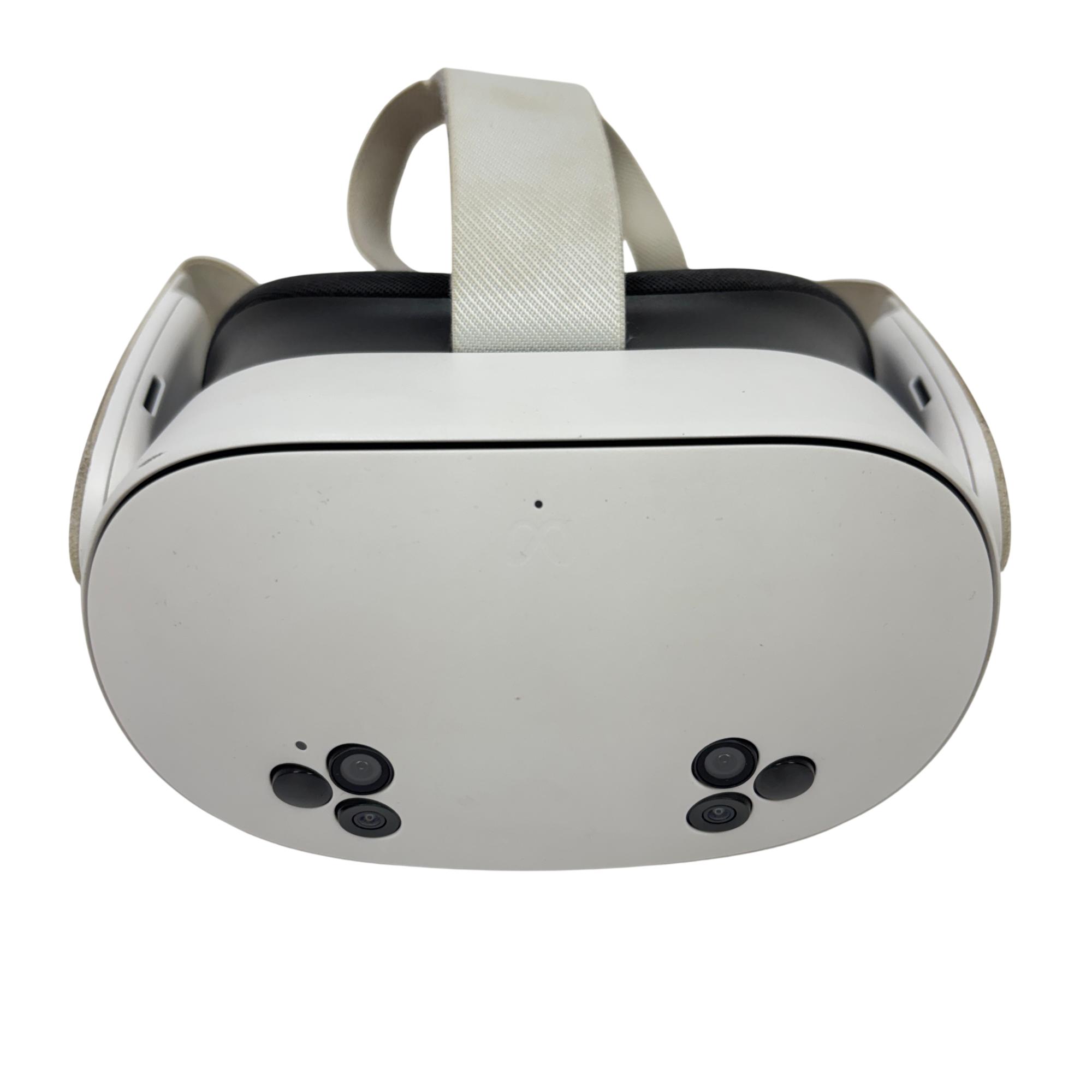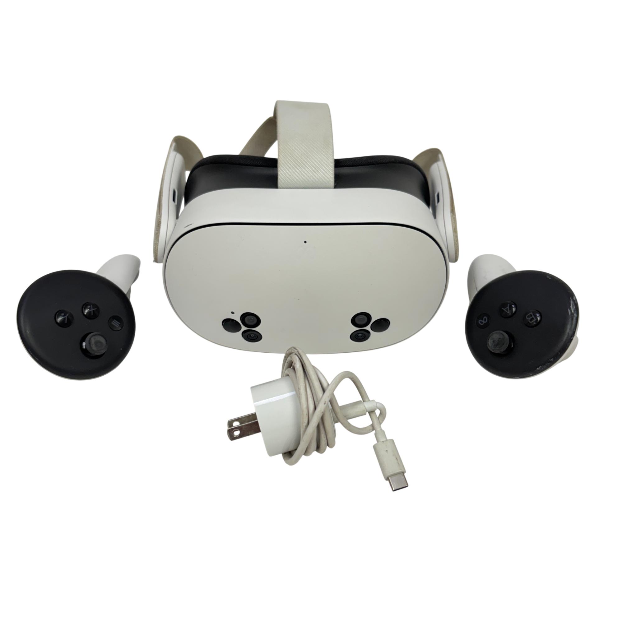 This Meta Quest 3S 256GB is an advanced all-in-one virtual reality headset featuring a sleek white design with intuitive black and white controllers. This VR system offers expansive storage capacity for immersive gaming and applications, delivering high-resolution visuals and precise tracking for a fully engaging experience.