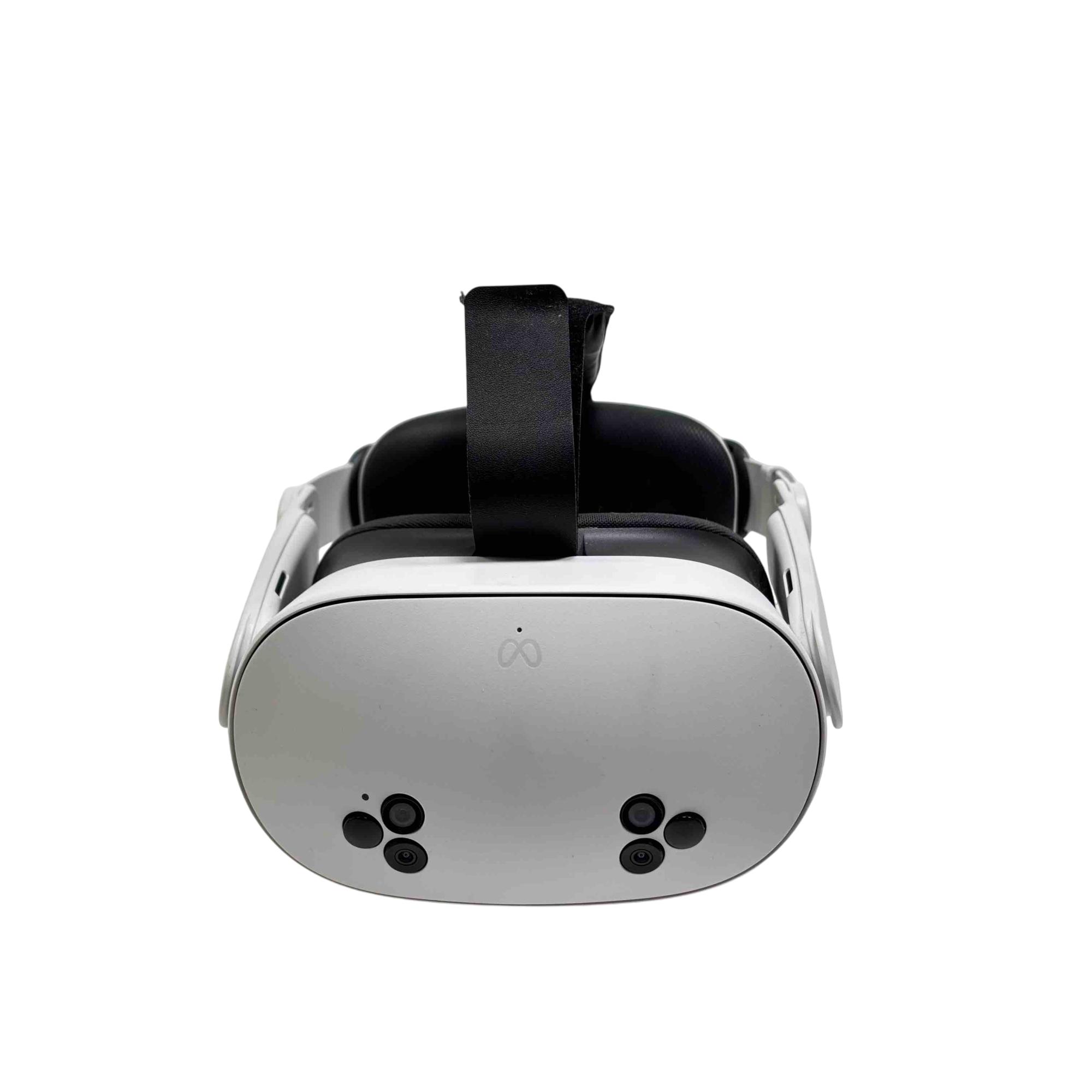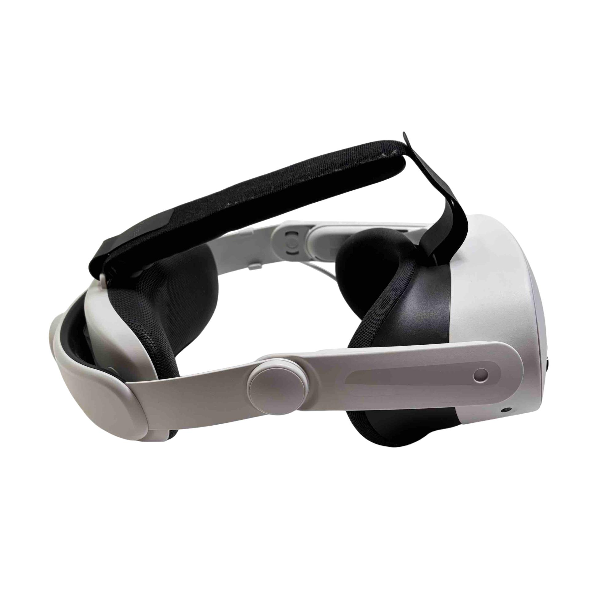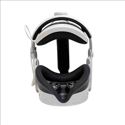 Meta Quest 3S 128GB Advanced All-in-One Virtual Reality Gaming Headset features a sleek white and black design with integrated lights for immersive gameplay. This cutting-edge VR headset offers 128GB storage and high-quality audio with comfortable, over-ear headphones, making it ideal for extended gaming sessions.