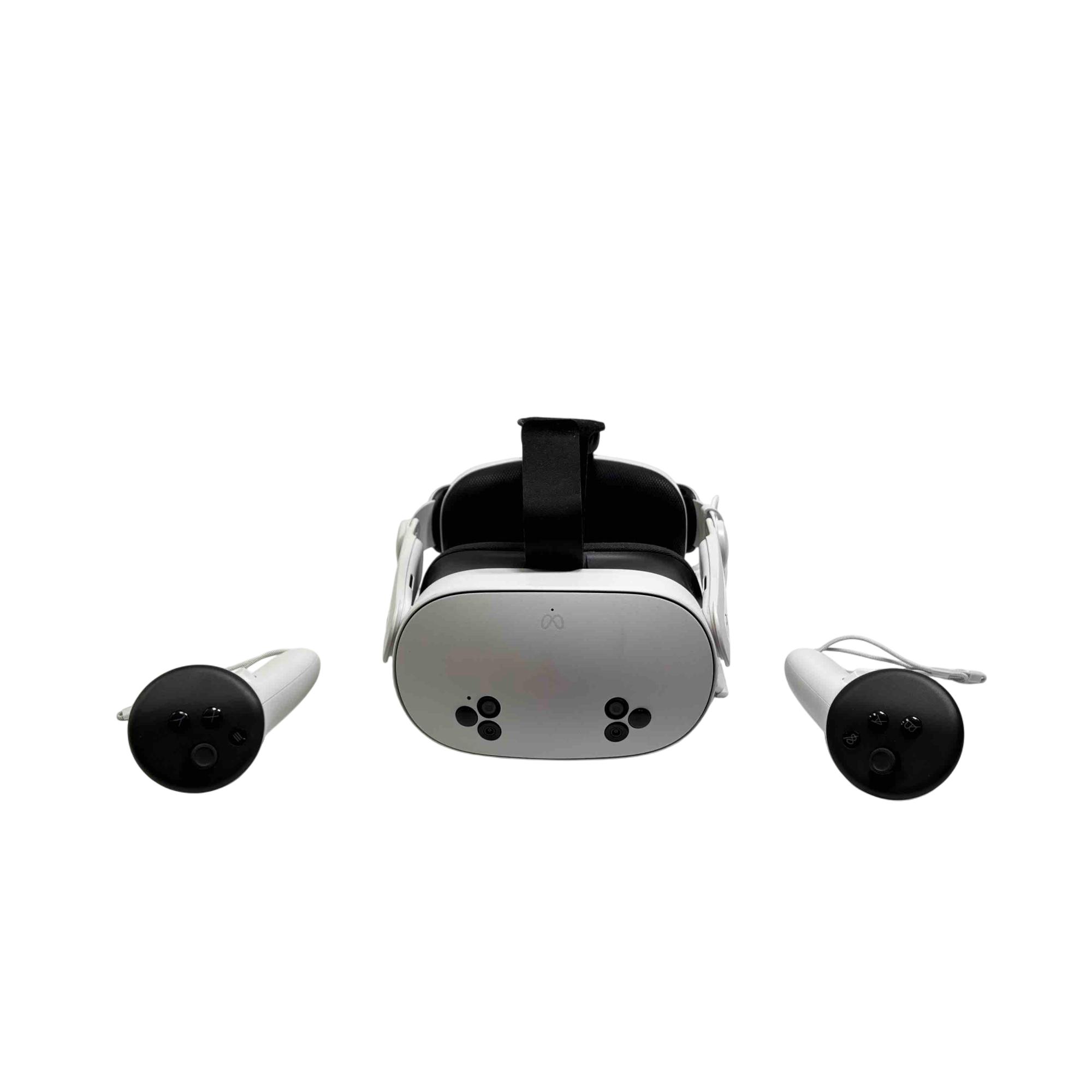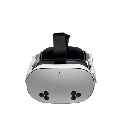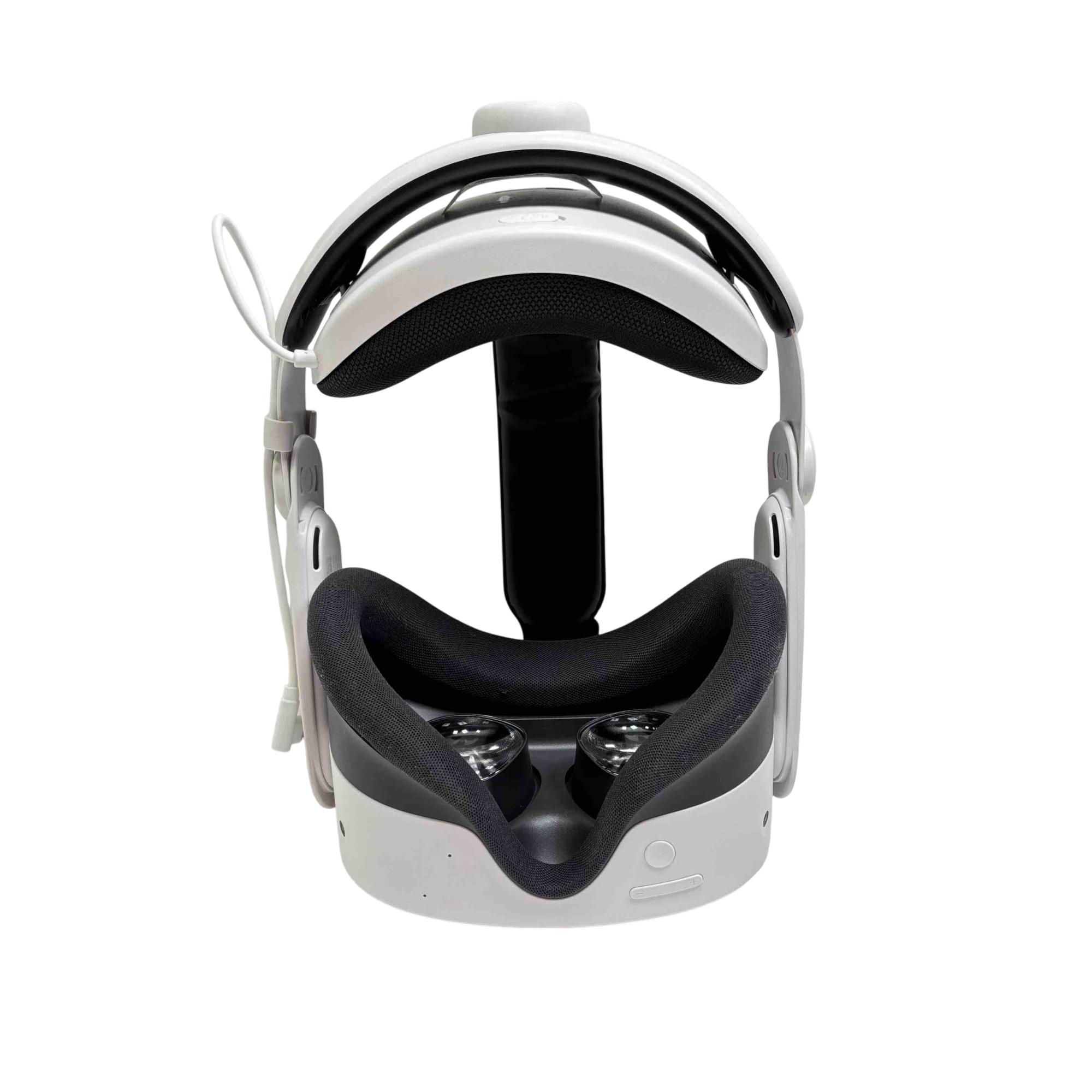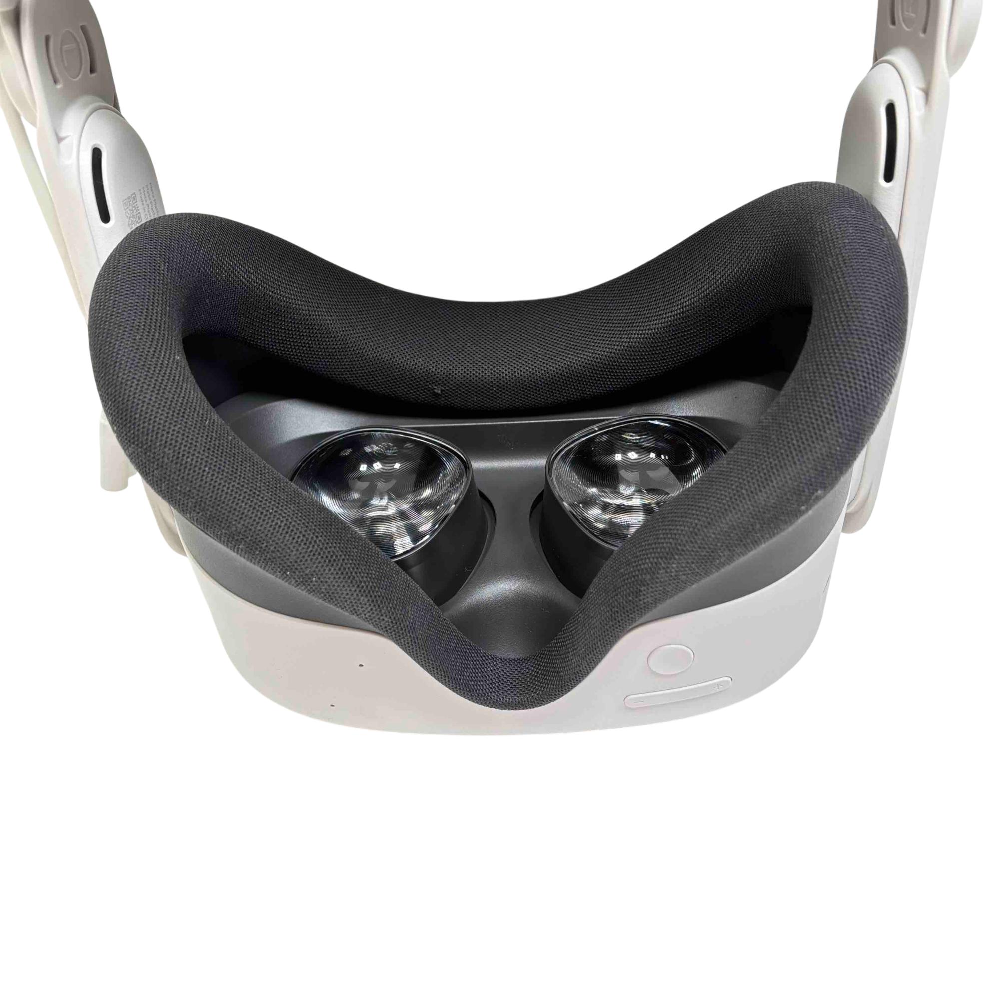 Meta Quest 3S 128GB Advanced All-in-One Virtual Reality Gaming Headset features a sleek white and black design with integrated lights for immersive gameplay. This cutting-edge VR headset offers 128GB storage and high-quality audio with comfortable, over-ear headphones, making it ideal for extended gaming sessions.