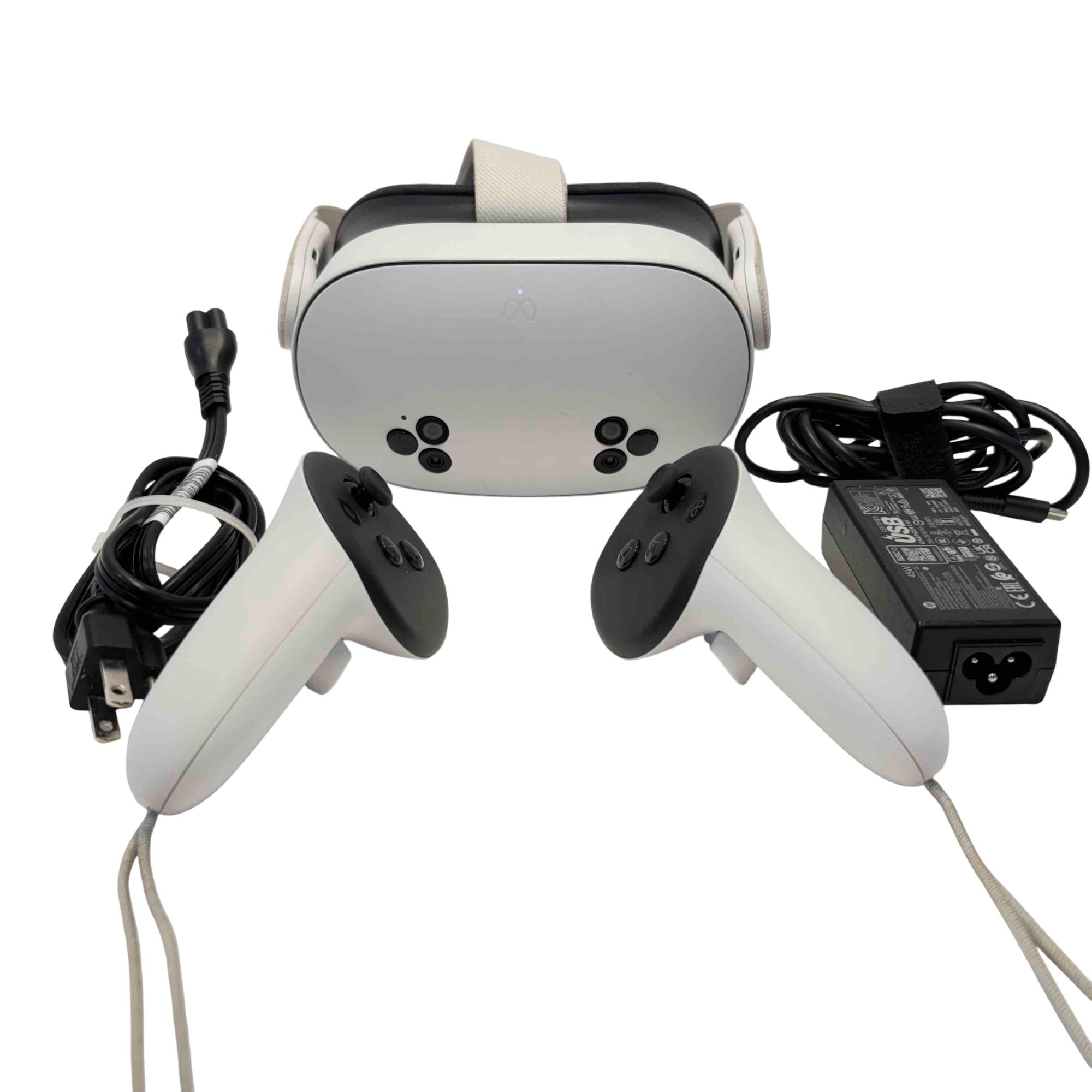 Meta Quest 3S (P97) 128GB All-in-One VR Headset with Controllers offers an immersive mixed reality experience with 128GB of storage to save your favorite games and apps. This standalone VR headset features sleek white and black design, ergonomic controllers, and advanced tracking for seamless gameplay and virtual interaction.