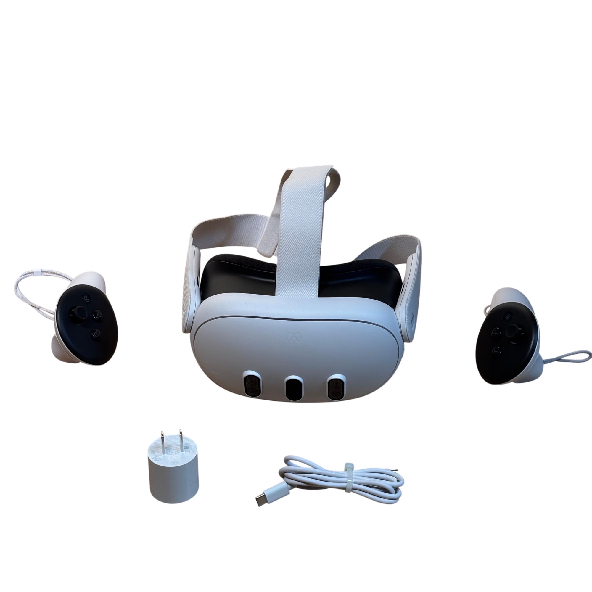 Meta Quest 3 S3A Virtual Reality Headset with Controllers and Charging Accessories offers an advanced mixed reality experience with high-resolution visuals and ergonomic design. This system includes responsive controllers and optimized charging components designed for seamless VR gameplay and extended sessions. Ideal for immersive gaming and interactive applications, it features precise tracking and a lightweight build for enhanced comfort.