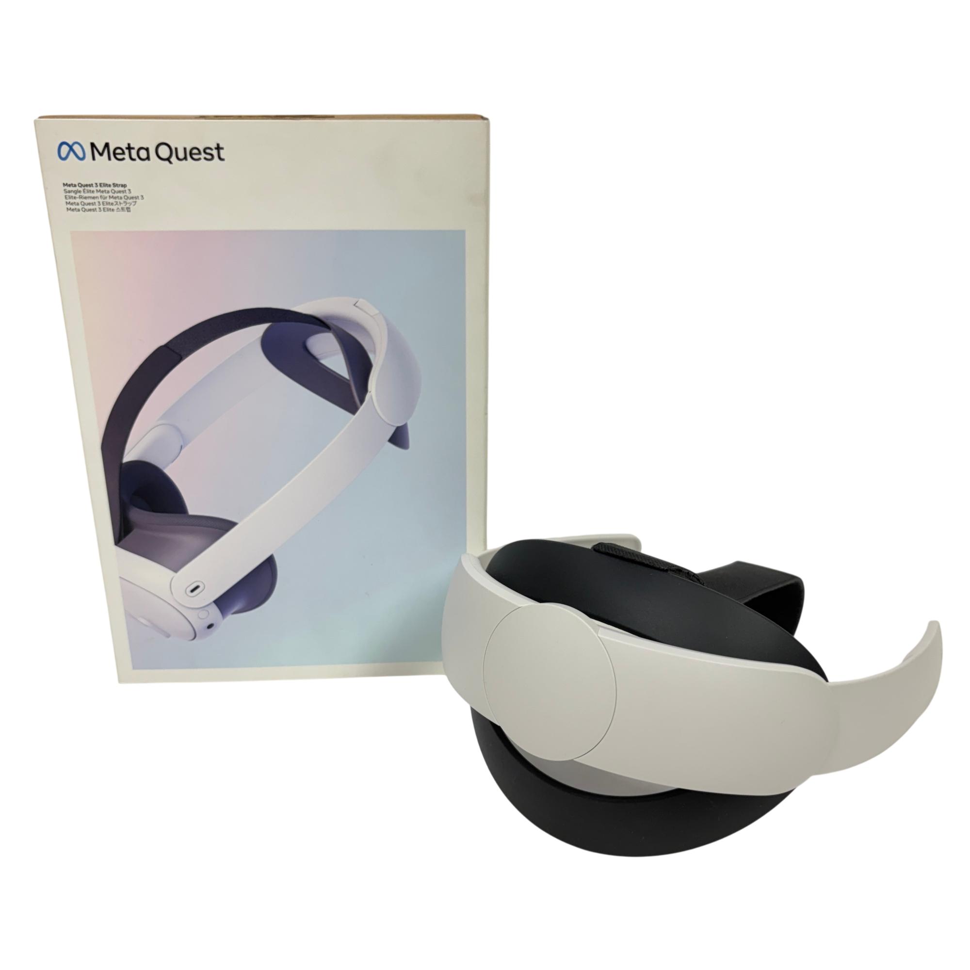This Meta Quest 3 Elite Strap enhances the comfort and fit of the Meta Quest 3 virtual reality headset. Featuring a sleek black and white design with a durable adjustable strap, it provides improved support for extended VR sessions. This accessory is designed to seamlessly integrate with the Meta Quest 3 headset, ensuring a secure and stable experience during immersive gameplay or mixed reality applications.