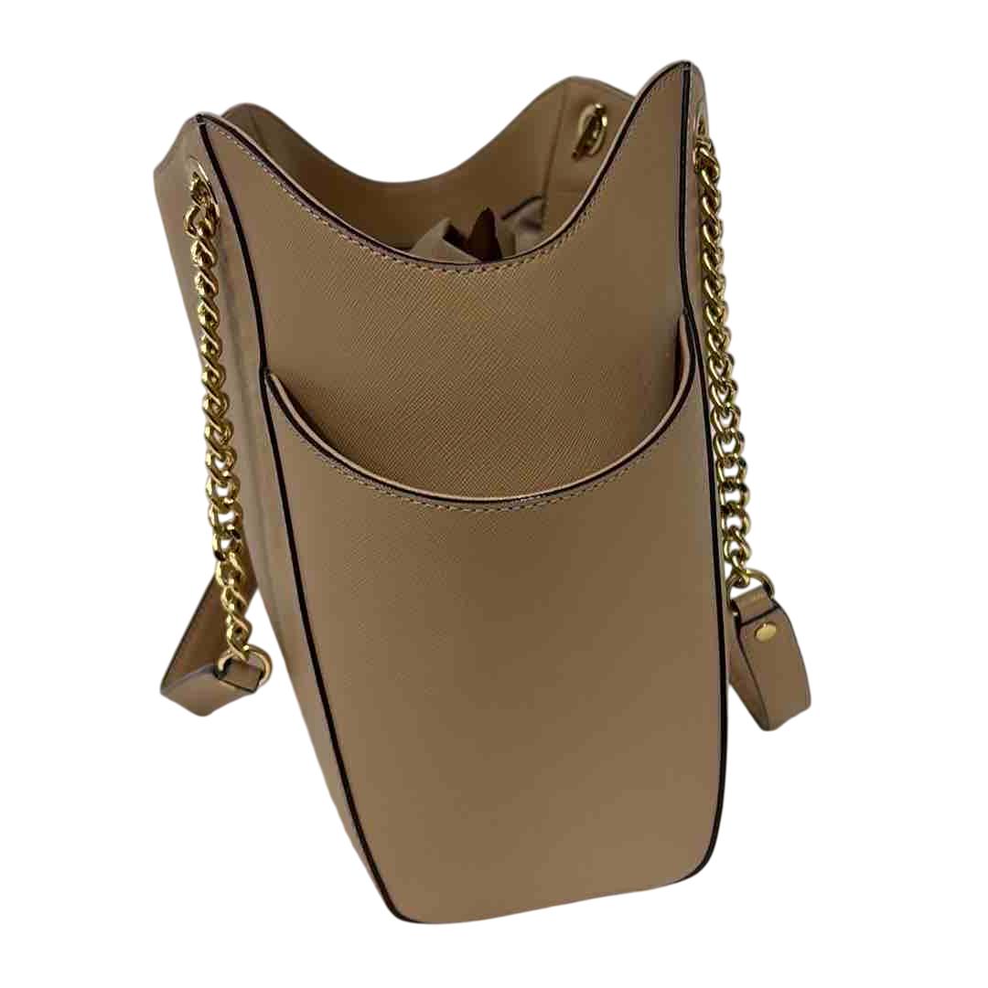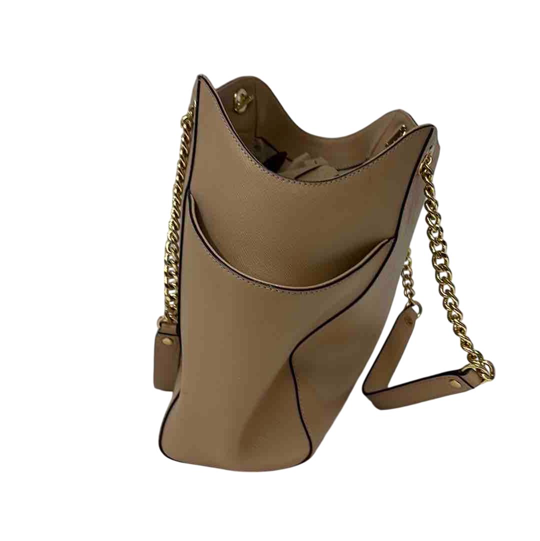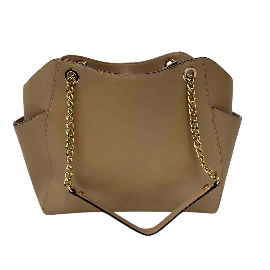 Enhance your style with the Michael Kors AC1706 Tan Leather Handbag. This exquisite handbag features a luxurious tan leather exterior complemented by opulent gold chain handles, making it a timeless accessory for any occasion. Perfectly blending sophistication and practicality, its designed to carry your essentials with effortless elegance.
