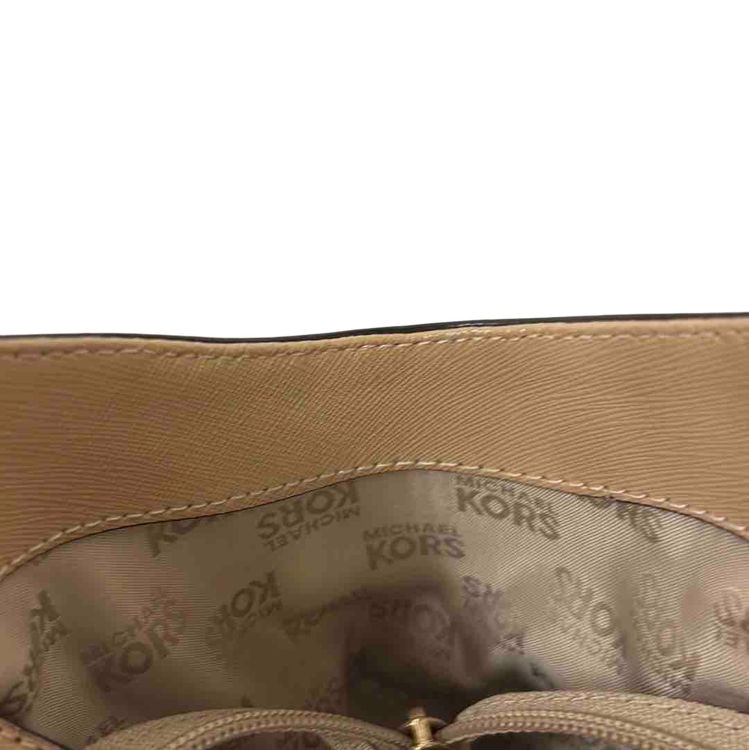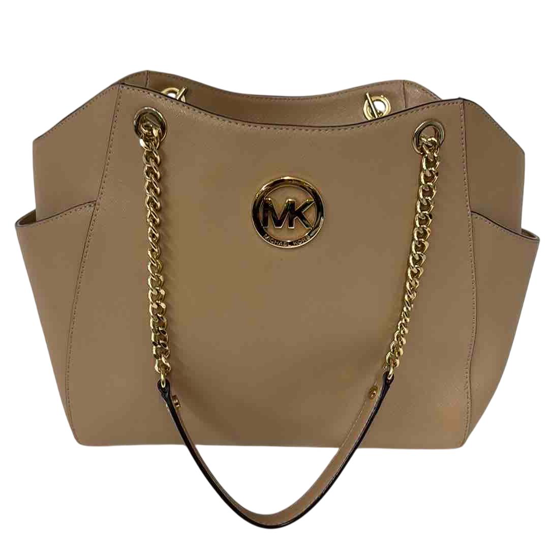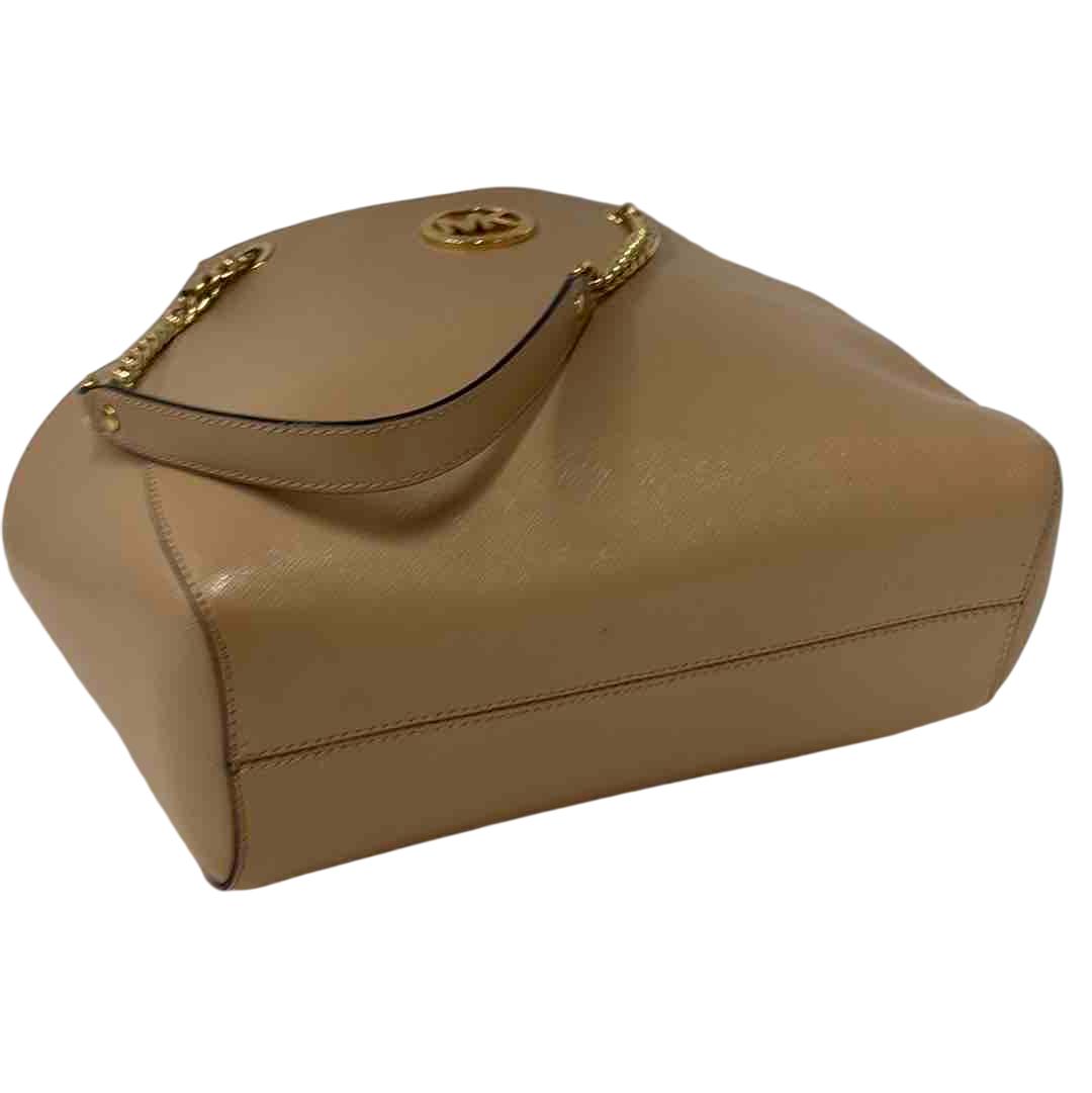 Enhance your style with the Michael Kors AC1706 Tan Leather Handbag. This exquisite handbag features a luxurious tan leather exterior complemented by opulent gold chain handles, making it a timeless accessory for any occasion. Perfectly blending sophistication and practicality, its designed to carry your essentials with effortless elegance.