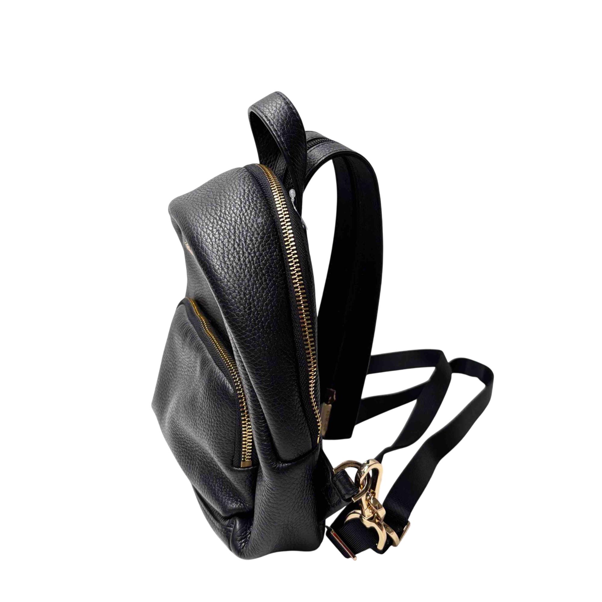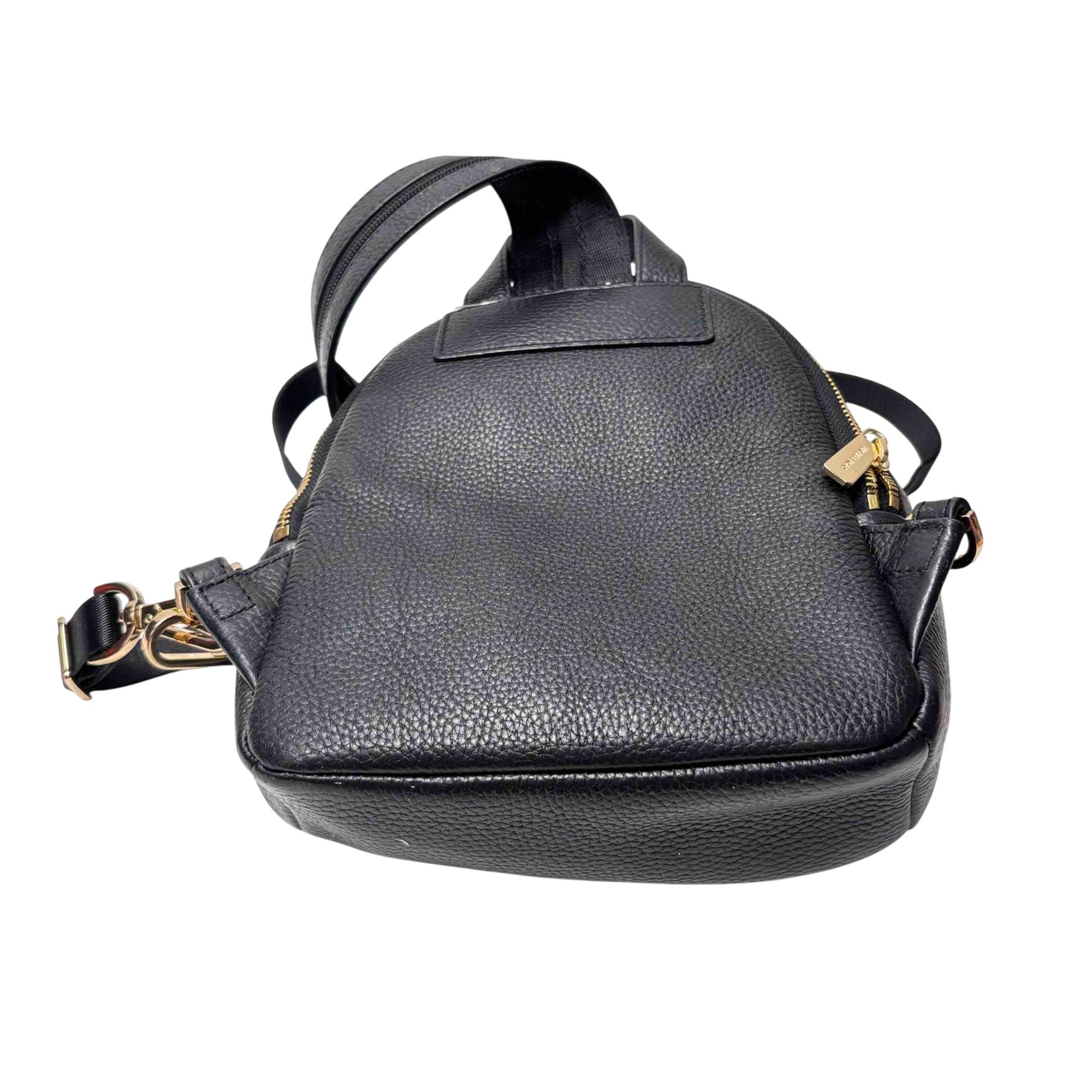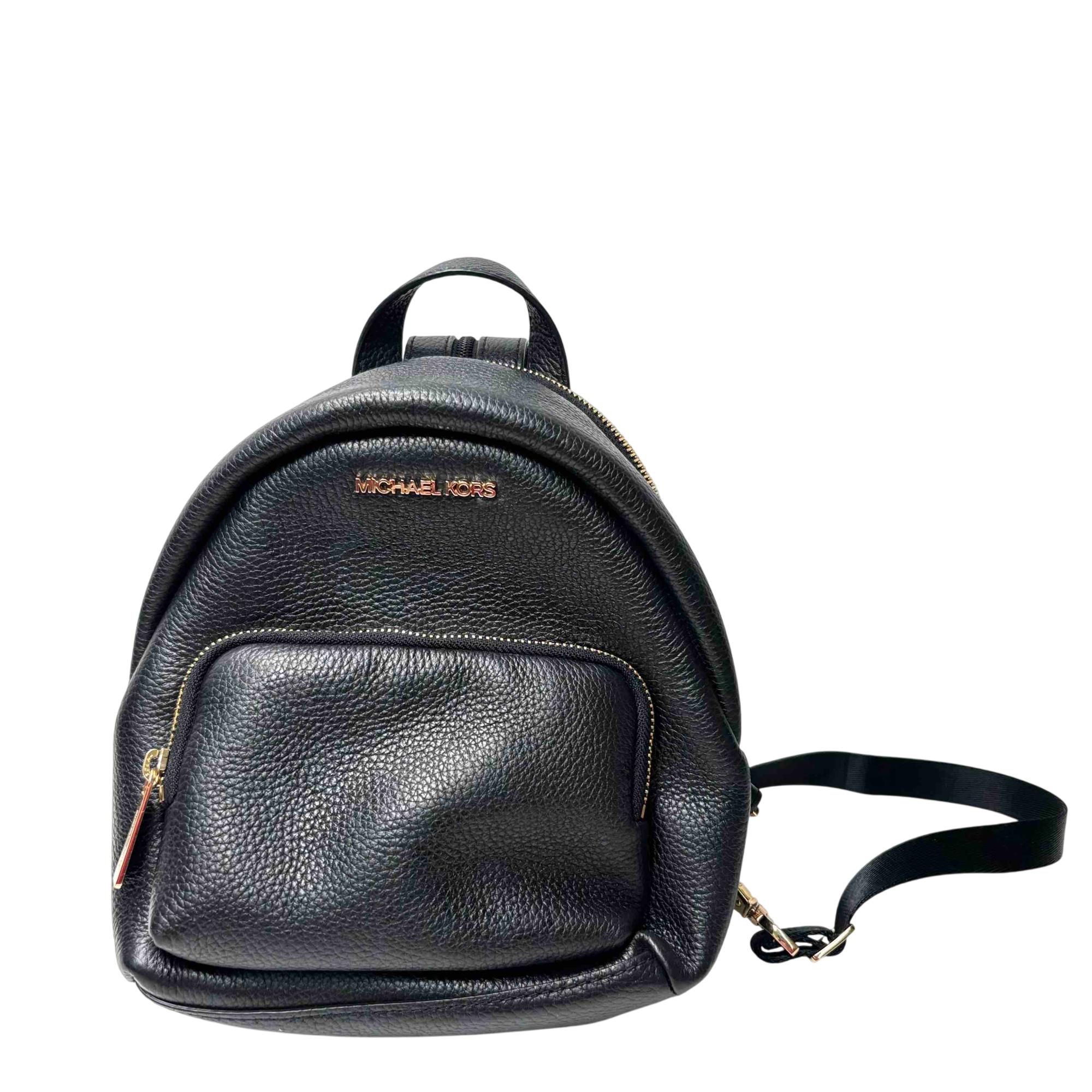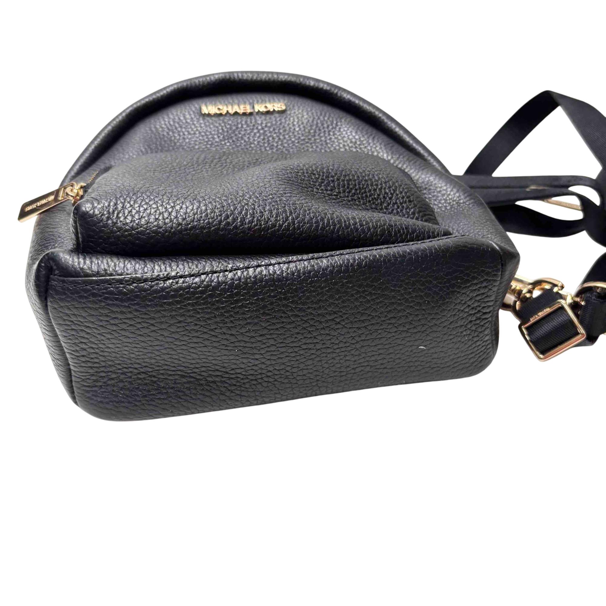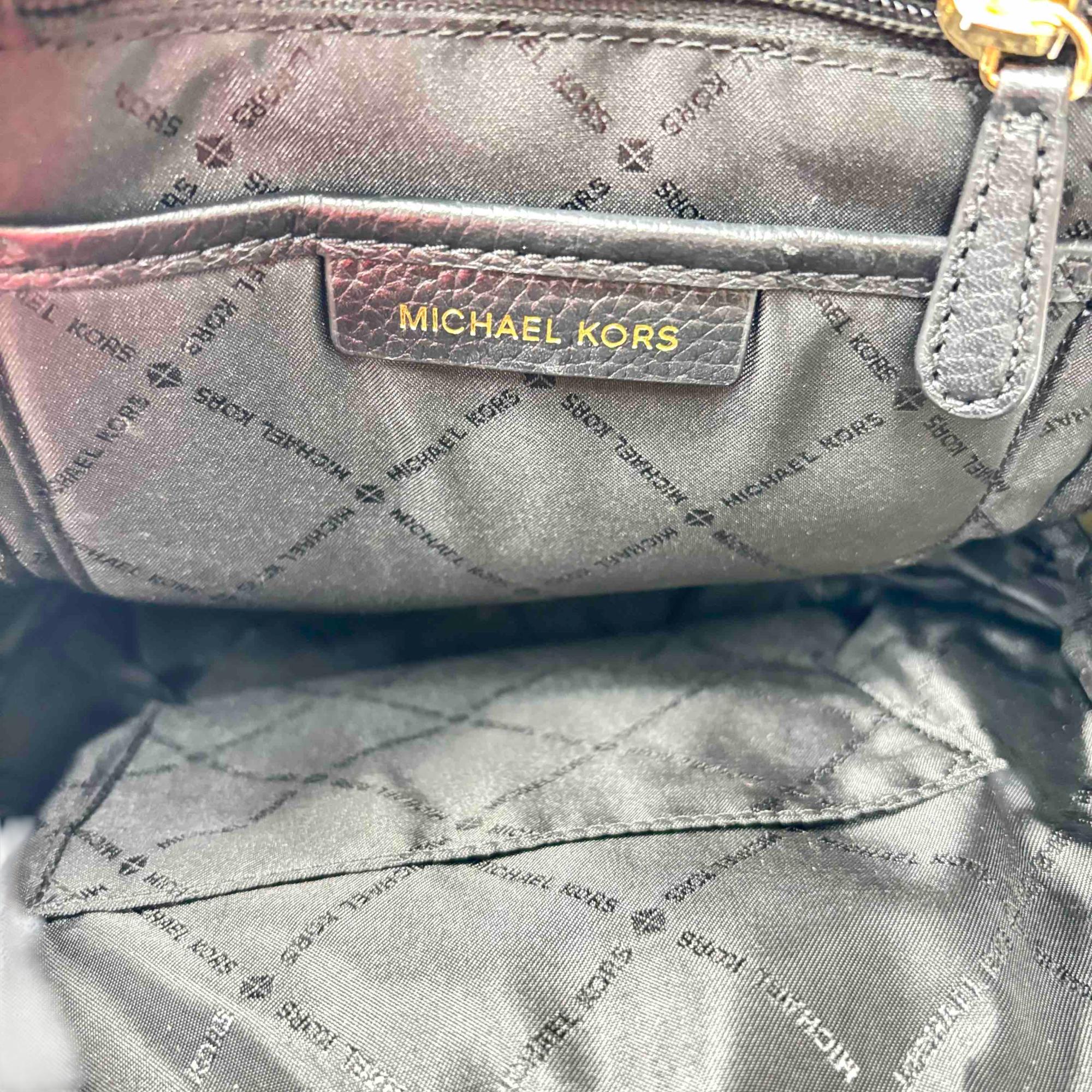 Elevate your style with this chic Michael Kors black pebbled leather backpack. Featuring luxurious gold hardware and an adjustable strap, this elegant accessory seamlessly blends fashion and function for the modern trendsetter.