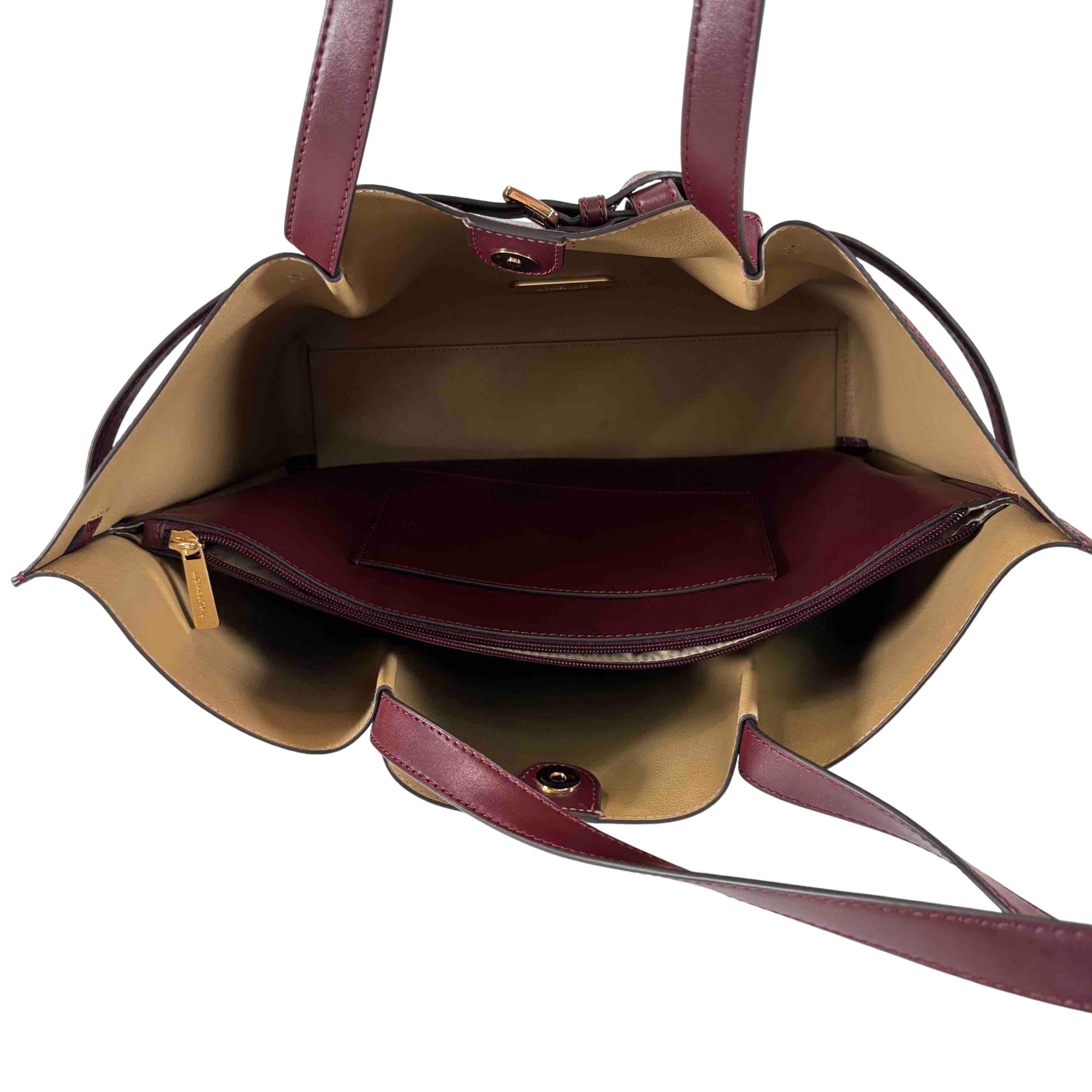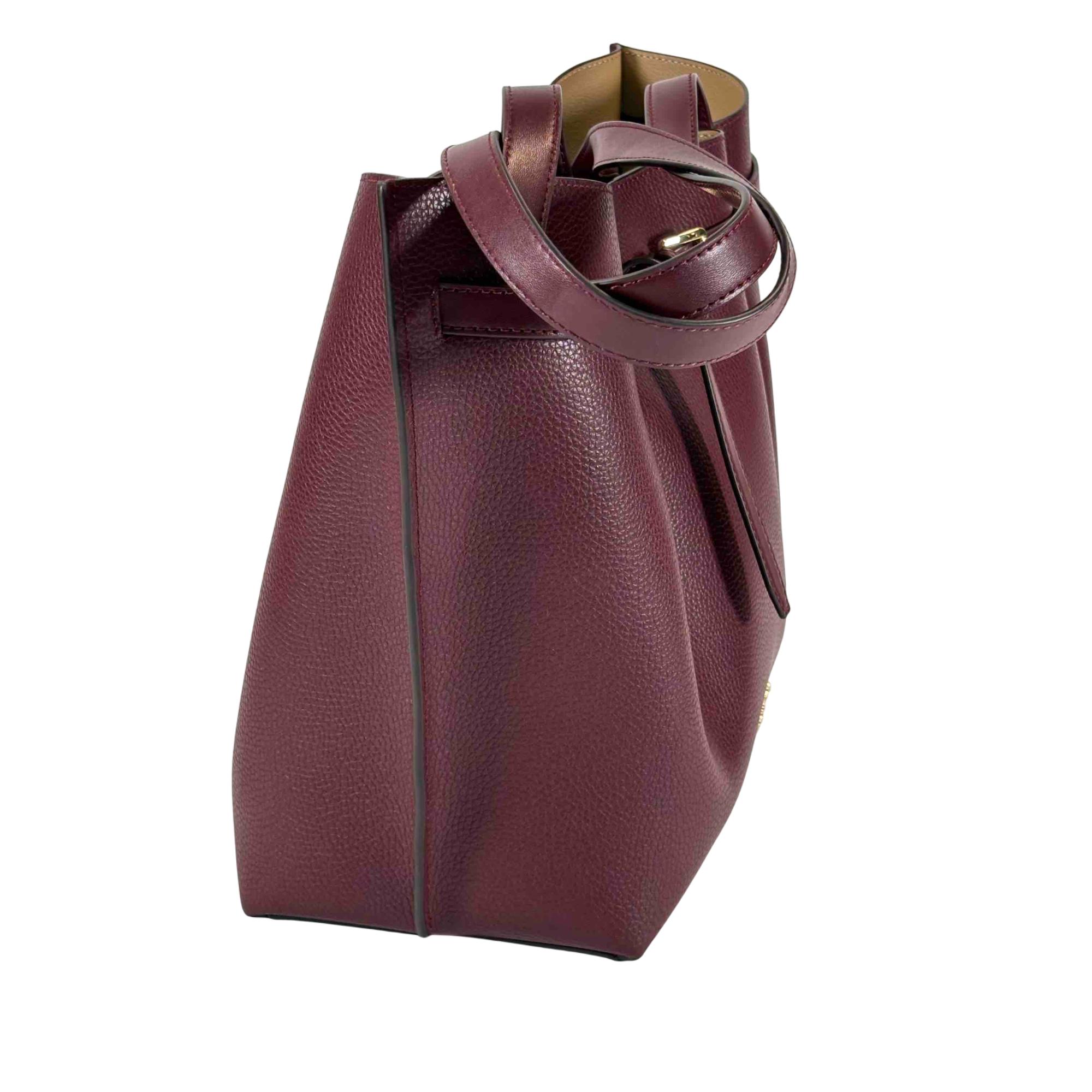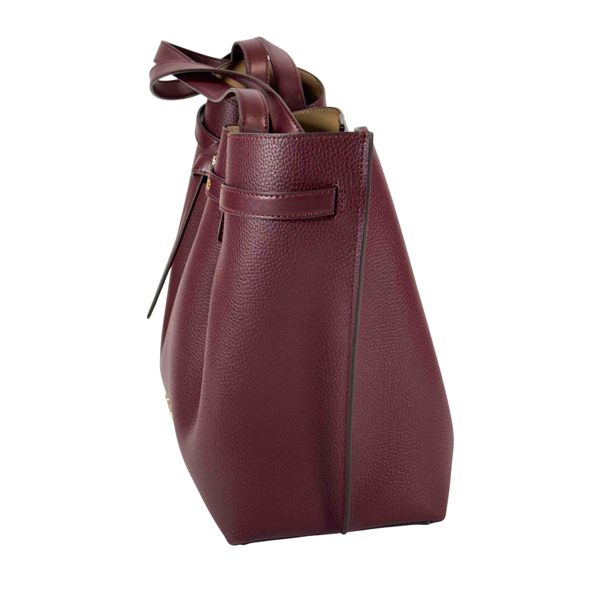 Elevate your style with the Michael Kors Emilia Large Pebble Leather Tote, crafted in luxurious maroon pebble leather. This sophisticated handbag features a structured bucket design, dual handles, gold hardware, and a chic belt detail, offering both timeless elegance and ample storage. Perfect for work or leisure, it’s your ideal accessory for an effortlessly polished look.