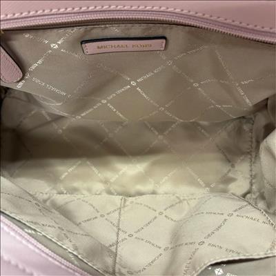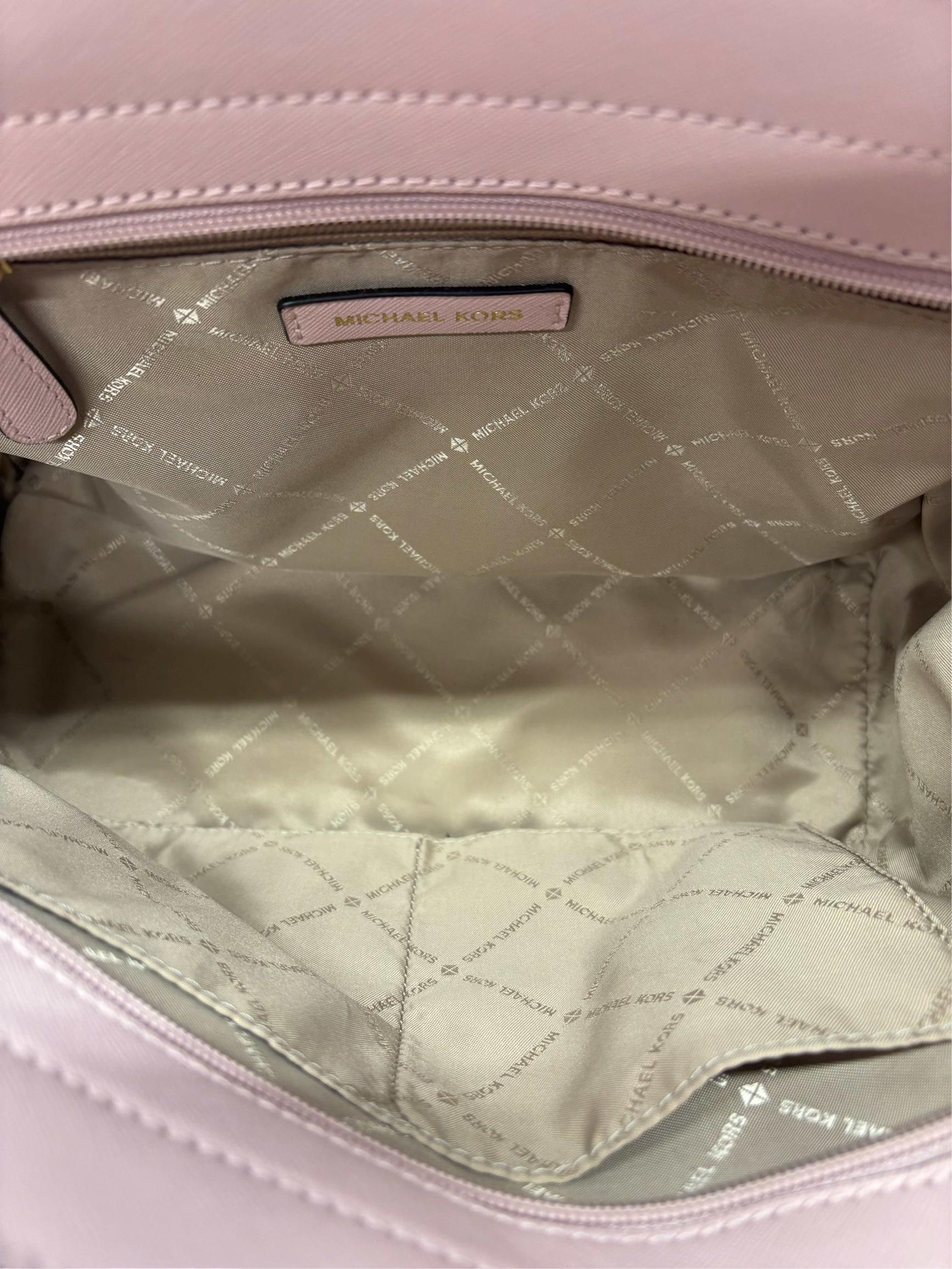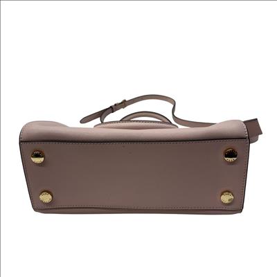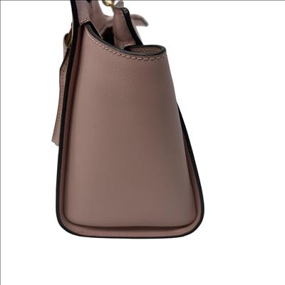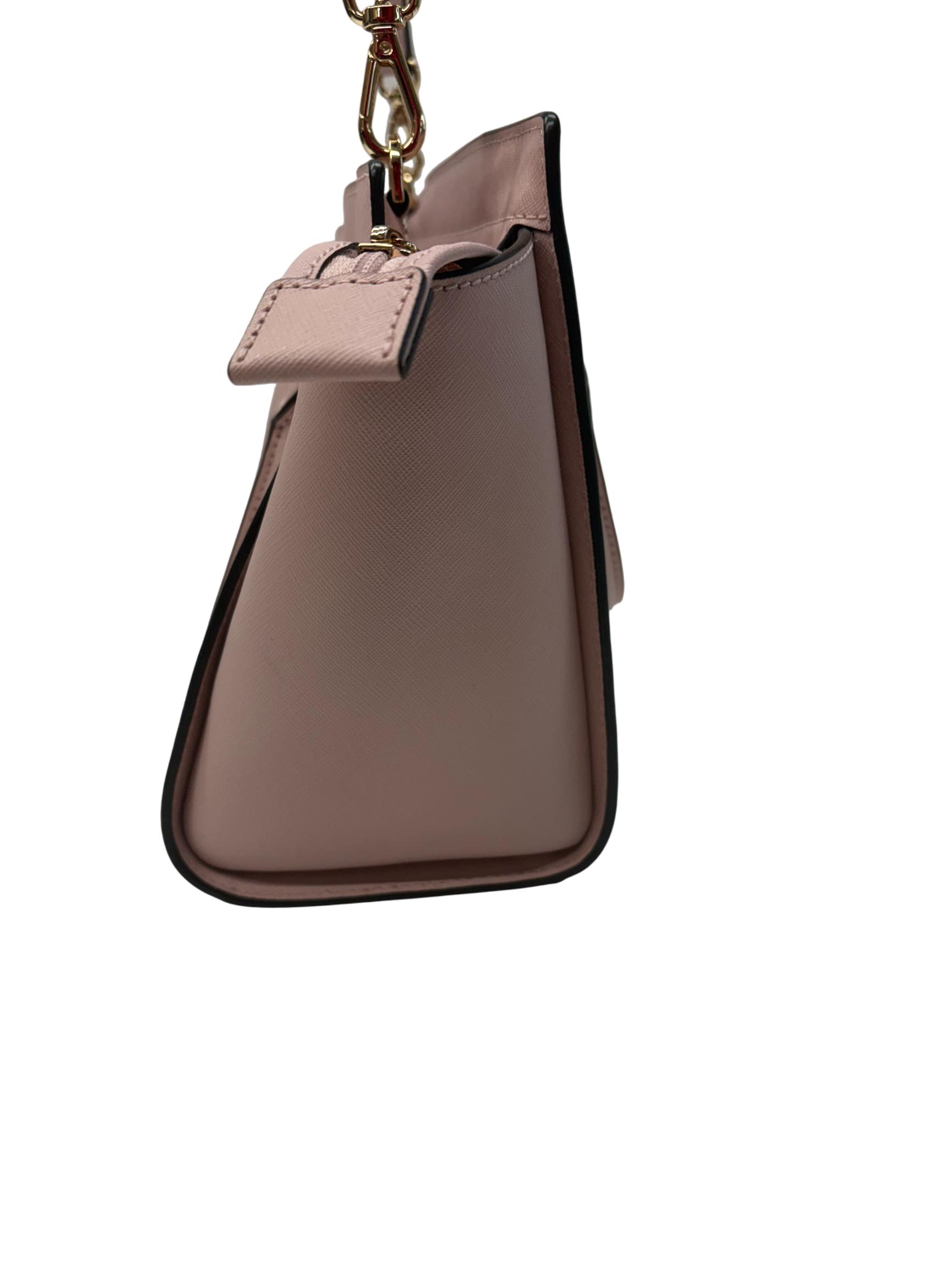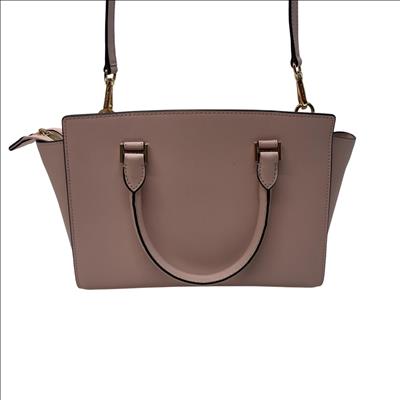Michael Kors Selma Medium Saffiano Leather Satchel in Blossom Pink features a structured silhouette crafted from durable saffiano leather. This stylish handbag is detailed with gold-tone hardware and a sleek black handle, making it a versatile accessory for everyday fashion. Its medium size offers ample space while maintaining a polished, elegant look perfect for various occasions.