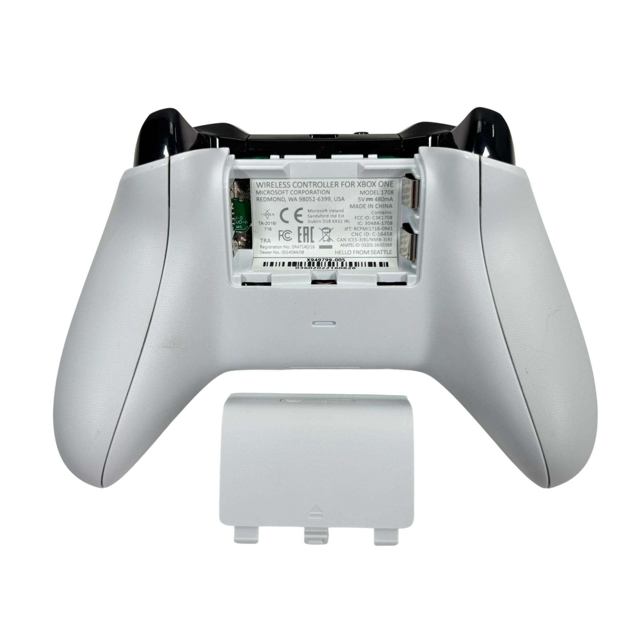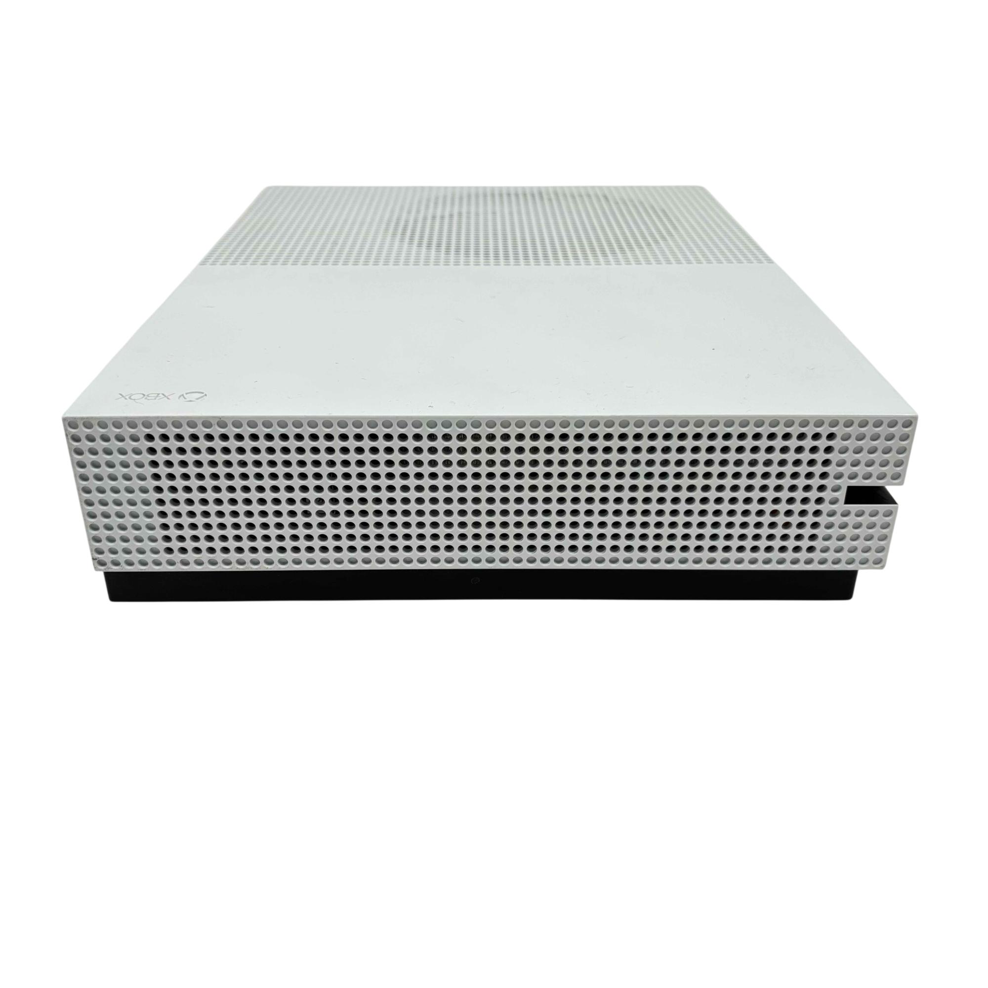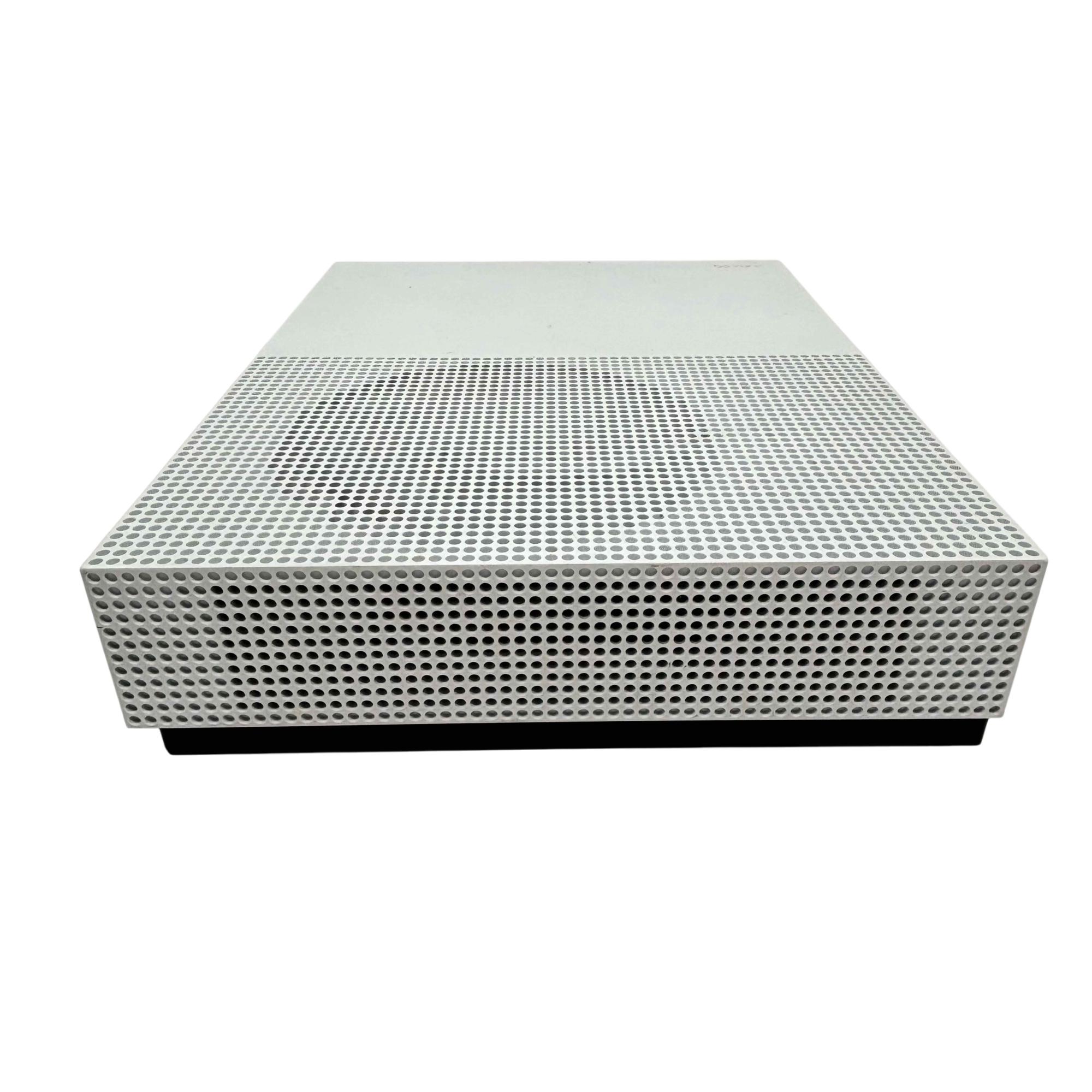 Microsoft Xbox One S 500GB Home Gaming Console (Model 1681) features a sleek white design with a compact, rectangular shape that fits seamlessly into any gaming setup. This console delivers high-definition gaming with smooth graphics and responsive controls, supported by its wireless white controller for enhanced gameplay experience.