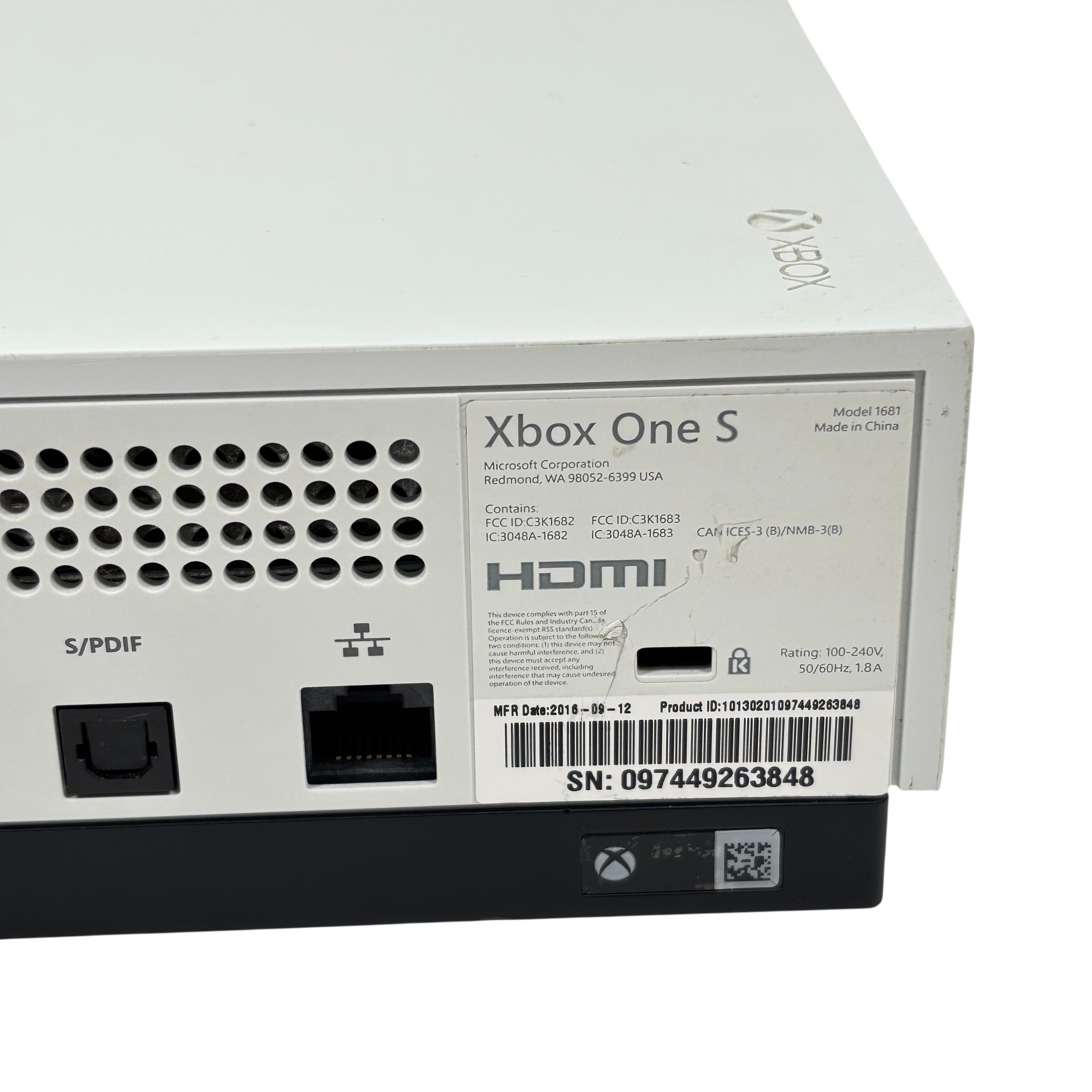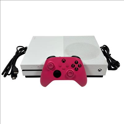 Microsoft Xbox One S Model 1681 is a sleek and compact video game console designed for immersive gaming and entertainment. Featuring 4K video playback support and multiple connectivity options including HDMI in/out and USB 3.0 ports, this console delivers versatile performance for your home setup. Included is a stylish pink and white Xbox Wireless Controller for comfortable gameplay. The package comes complete with the console, controller, power cable, and HDMI cable, making it ready to plug in and play.