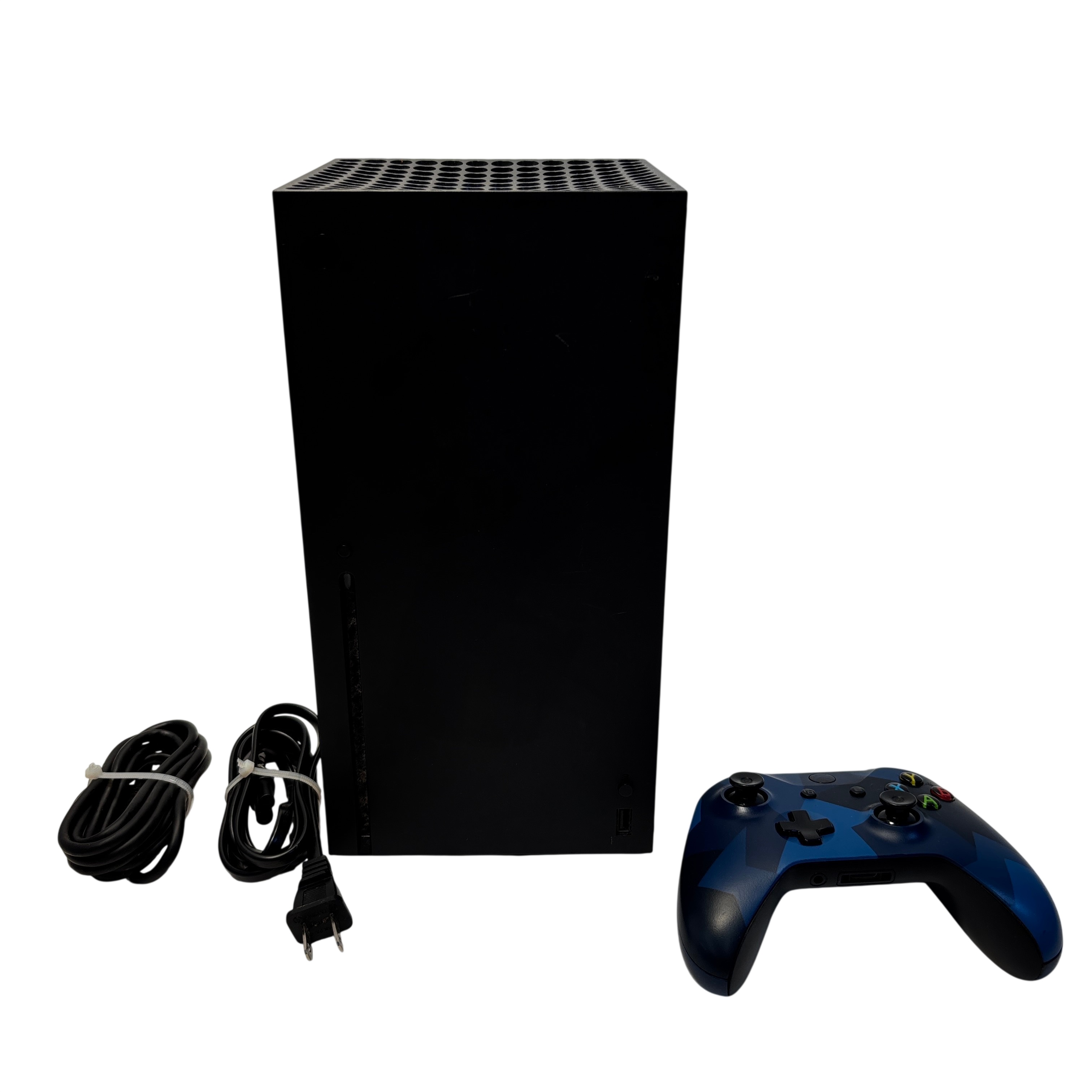 The Microsoft Xbox Series X Video Game Console delivers next-generation gaming performance with 4K resolution and fast load times. This set includes the sleek black console, power cable, HDMI cable, and a blue camouflage Xbox Wireless Controller. Designed for immersive gameplay, the Xbox Series X supports a vast library of games and offers enhanced graphics and speed for an exceptional gaming experience.