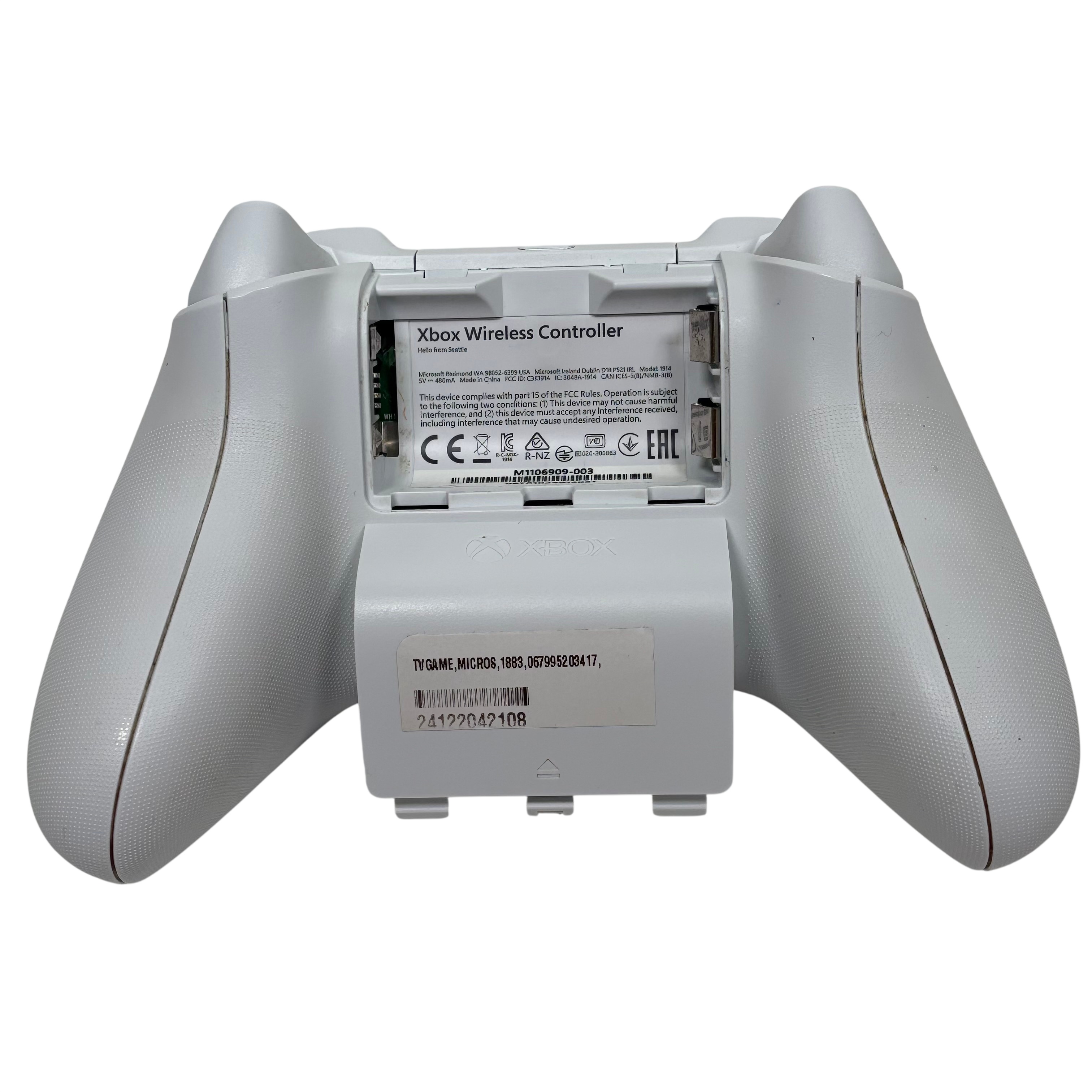 This Microsoft Xbox Wireless Controller Model 1914 offers a comfortable and responsive gaming experience with wireless connectivity via Xbox Wireless and Bluetooth. This white controller features textured grips for enhanced handling and a 3.5mm stereo headset jack for audio support. Compatible with Xbox Series X|S, Xbox One, and Windows 10/11 PCs, it is ideal for gamers seeking reliable and versatile control. The controller requires 2 AA batteries (not included) and is designed for extended gaming sessions with ergonomic comfort.