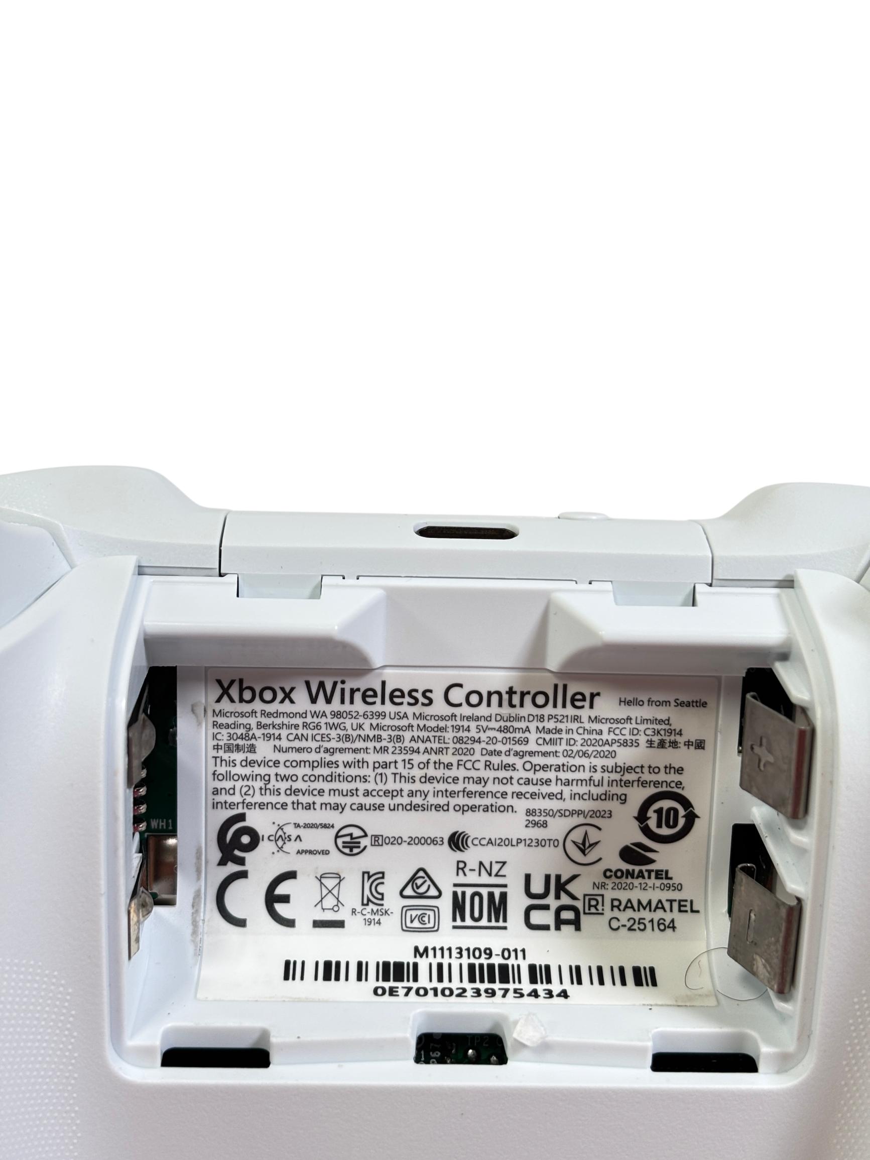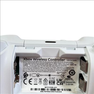 Microsoft Xbox Series X|S Wireless Controller in White offers a sleek design with enhanced precision and ergonomic comfort tailored for extended gaming sessions. This model 1914 controller features responsive buttons, including color-coded A, B, X, and Y inputs, and textured grips to improve handling during intense gameplay. Compatible with Xbox Series X, Series S, and Windows devices, it delivers reliable wireless connectivity and advanced input customization for an immersive gaming experience.