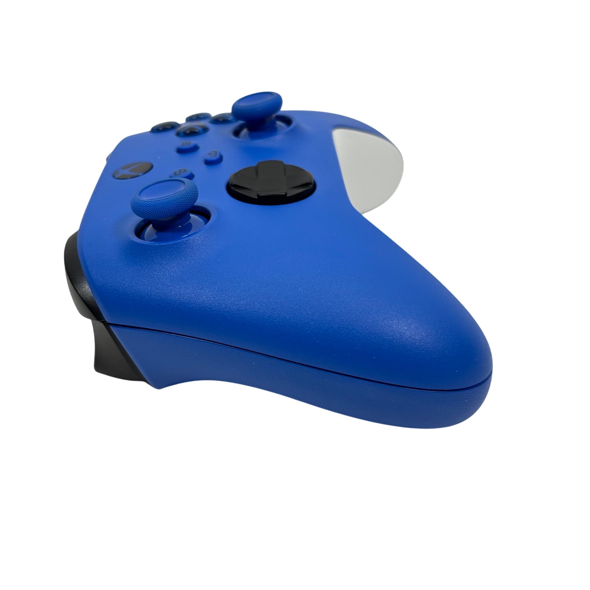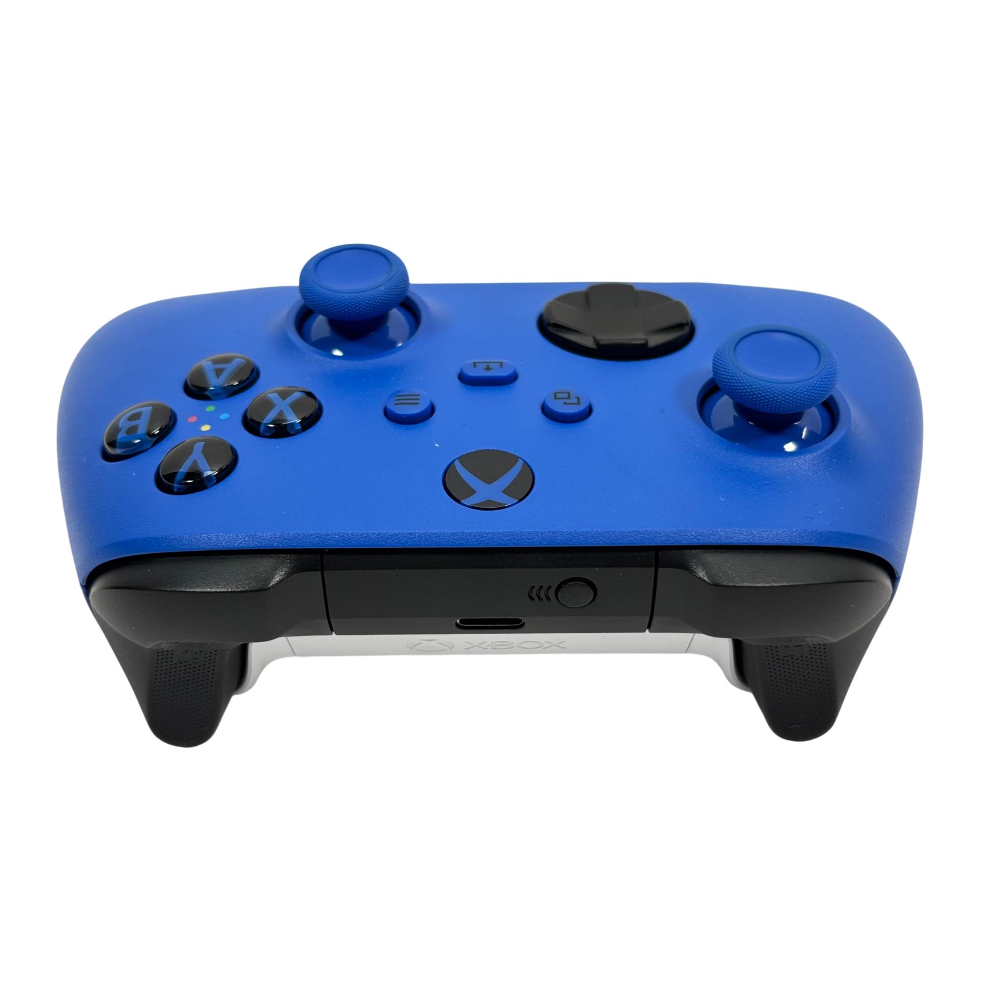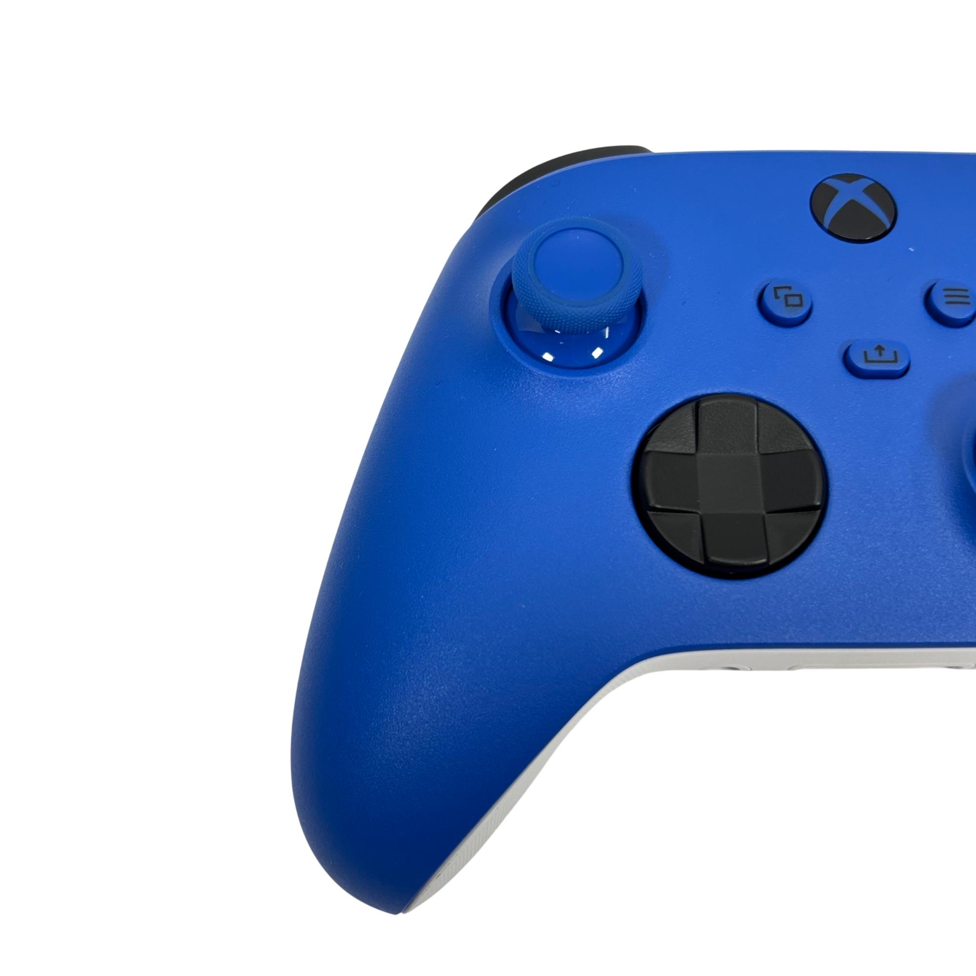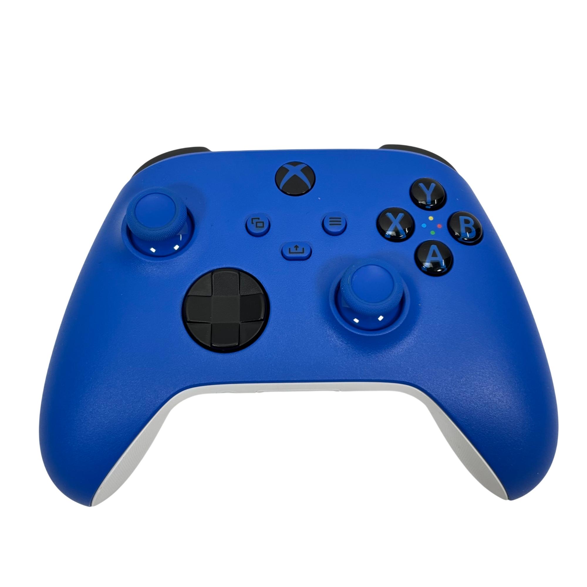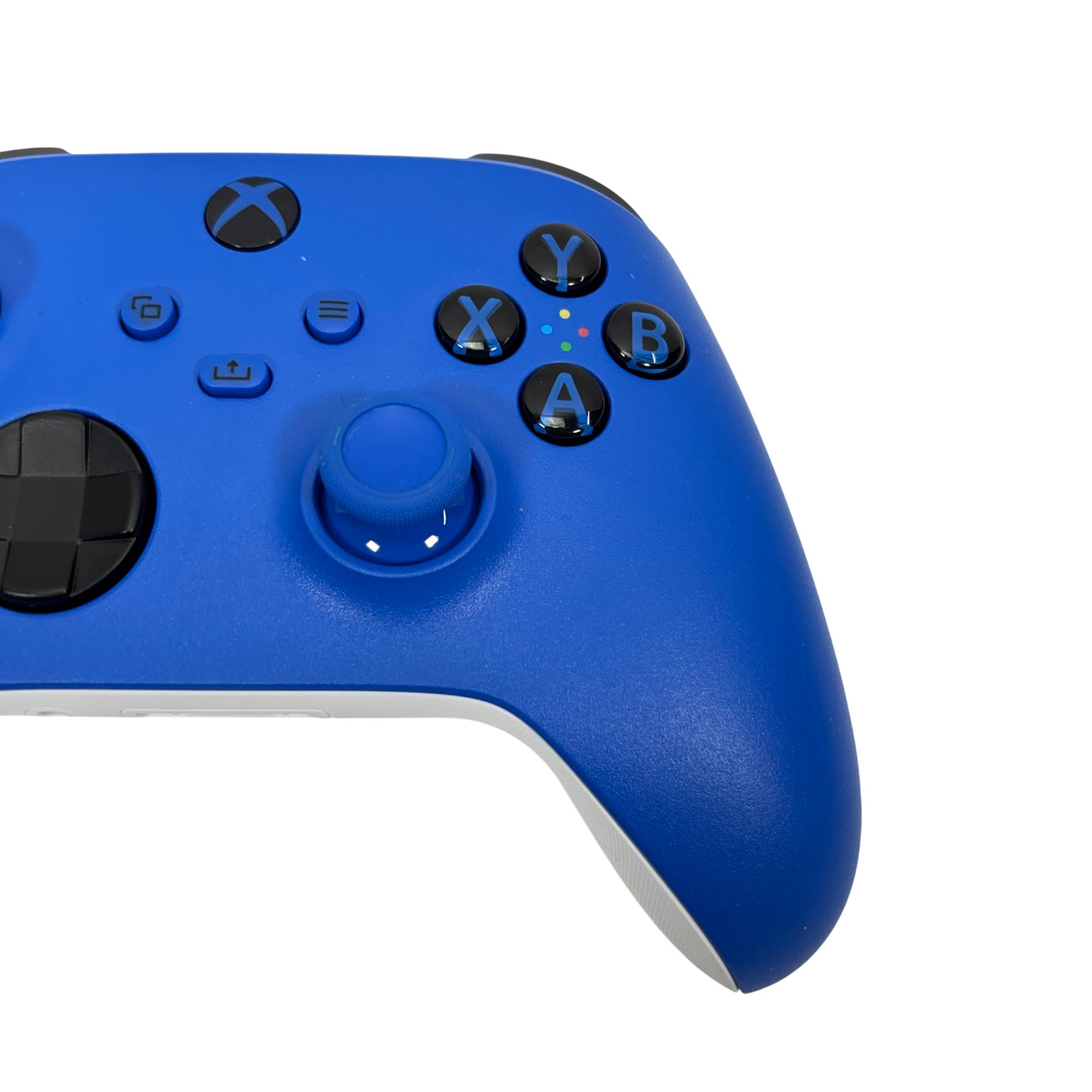Microsoft Xbox wireless controller features a vibrant blue design with ergonomic contours for comfortable extended gameplay. This wireless controller offers enhanced precision and customizable button mapping, compatible with Xbox Series X|S and Xbox One consoles, delivering seamless performance and reliable wireless connectivity.