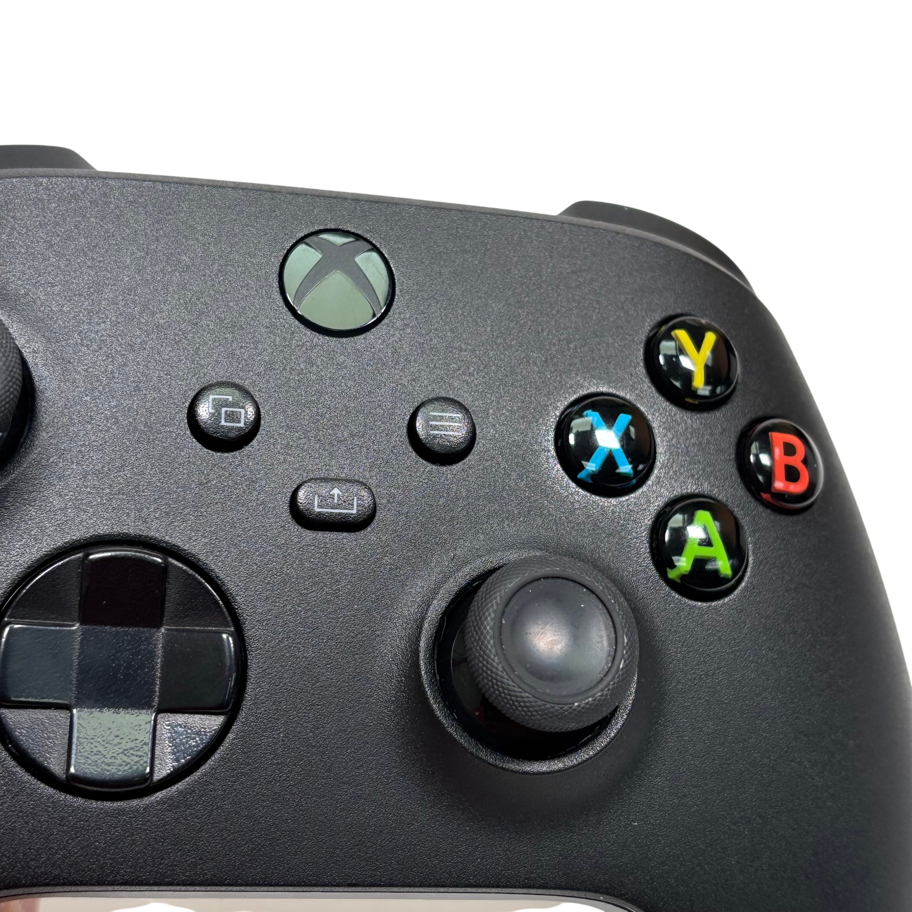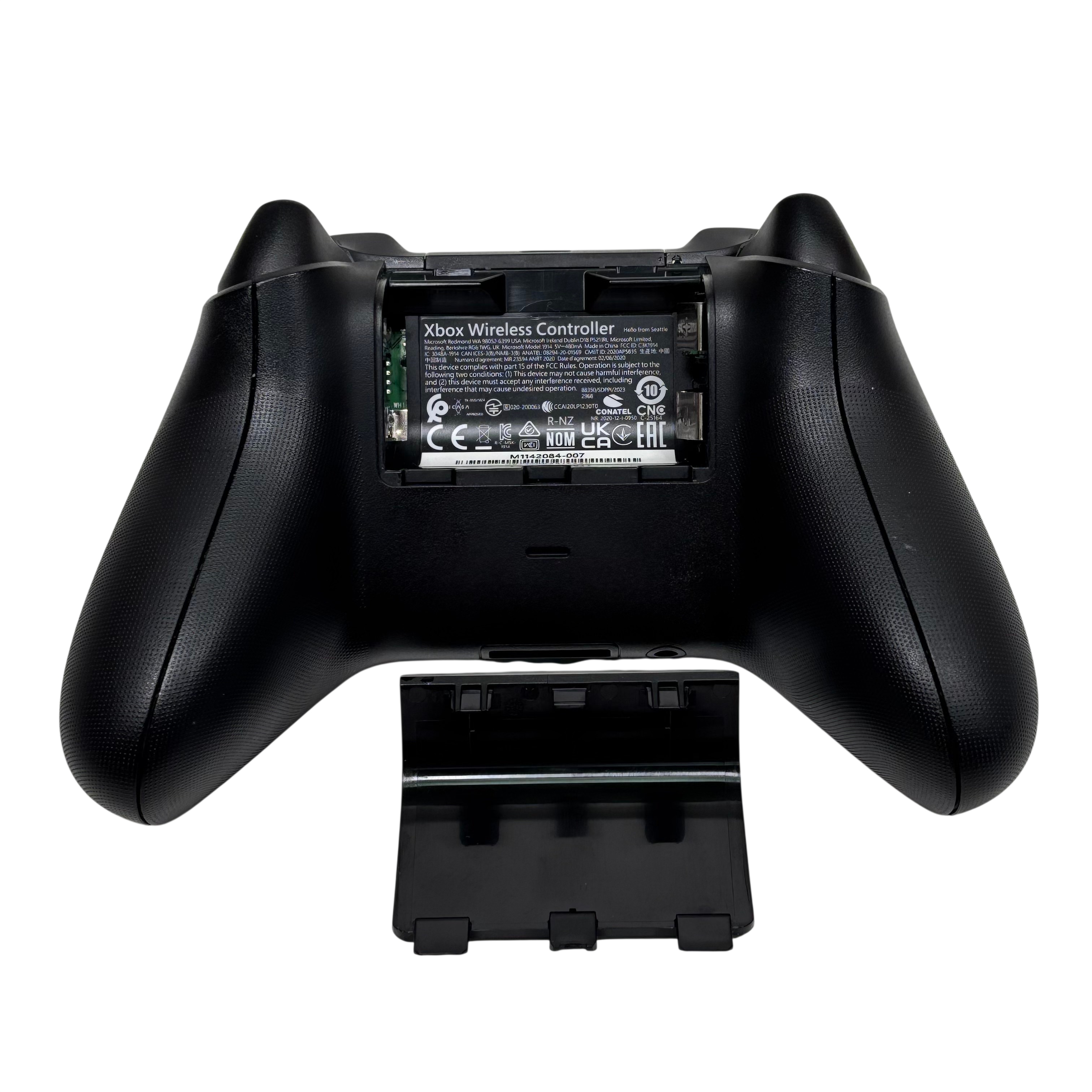 This Microsoft Xbox Wireless Controller Model 1914 (MPN M1142084-007) offers a comfortable and responsive gaming experience with wireless connectivity for Xbox Series X|S, Xbox One, and Windows 10/11 PCs. Featuring an ergonomic design with textured grips and responsive thumbsticks, this black controller supports Bluetooth and Xbox Wireless connections. The controller includes a battery compartment cover and requires 2 AA batteries (not included). Its compact dimensions and lightweight build make it ideal for extended gaming sessions.