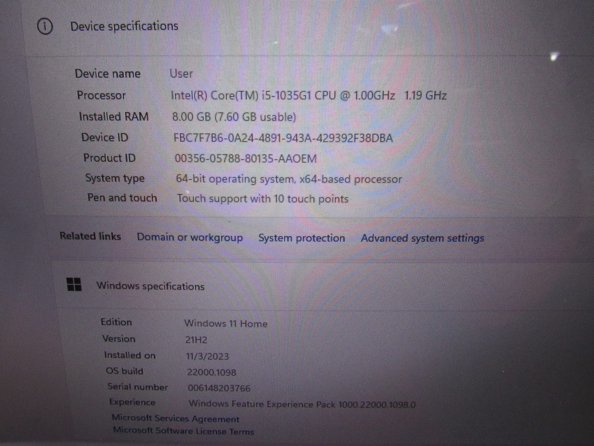 Model: Surface Laptop Go 1943